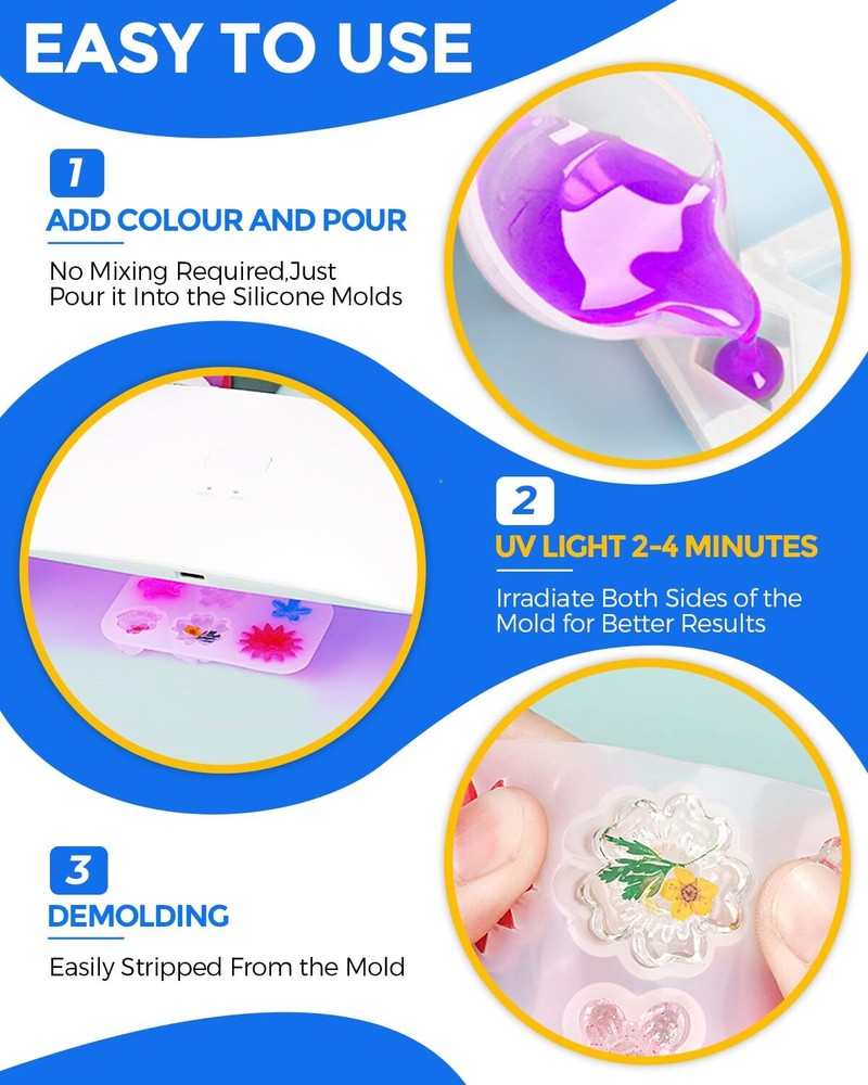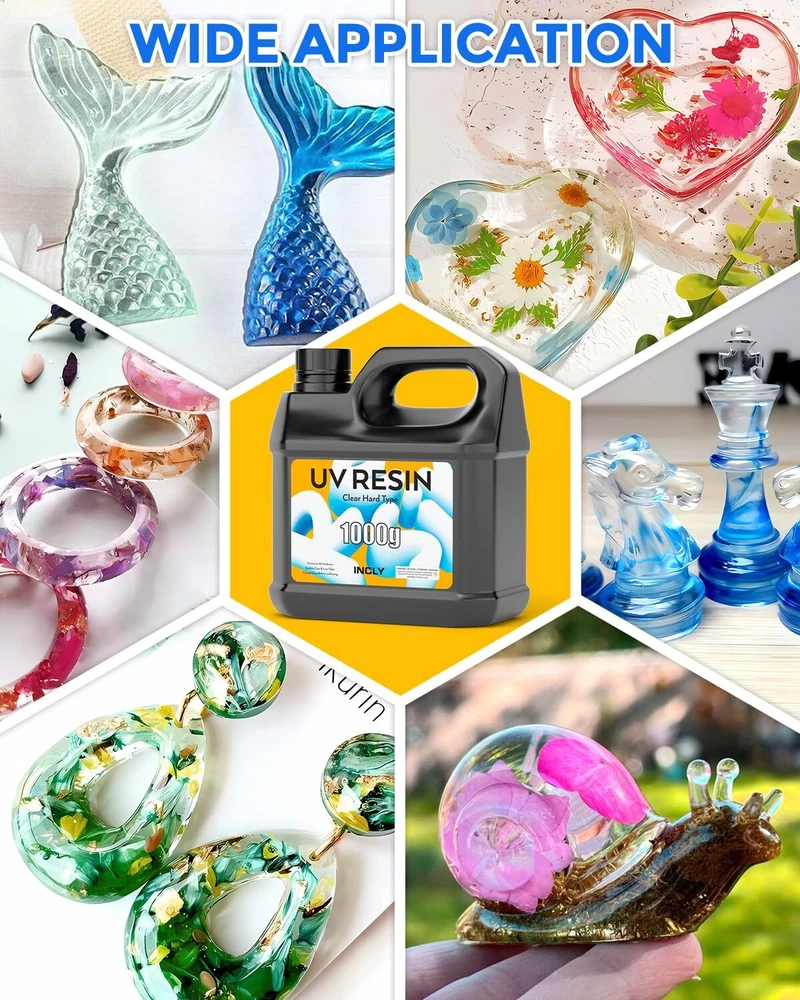 UV Resin 1000g, Crystal Clear UV Cure, Fast Curing & High Viscosity UV Epoxy Resin Hard Type, Premixed a UV Transparent Solar Activated Glue for Jewelry Making, Craft, Casting Superior Quality Clear UV Resin:UV resin is made of premium materials and developed and produced safely after long testing and improvement, has strong stain resistance and anti-yellowing, which is keep your DIY projects with a crystal clear surface, more long lasting. The cured resin uv is friendly for the resin mold Premixed For Efficient Use:Our uv resin epoxy is no measuring required, easy to use, just turn it on and use it. Short curing time, curing in 2-4 minutes under 36W UV light. It's simple to use even for beginners and professionals, and allows you to enjoy the finished work in the shortest time Safe and Low Odor: We are a professional uv resin manufacturer. Made of high quality material, the ingredient of our UV resin glue have been strictly checked, and has safety certification. It contains no harsh chemicals and completely odorless, non-toxic. harmless to you and the environment Bubbles Free & Self Leveling: You may encounter a few bubbles when you pour, but the bubbles will quickly rise and disappear. Additionally, its self-leveling properties ensure a smooth, even surface with minimal effort Wide Application: The Transparent resin UV work well with glitter, sequins, mica powders and pigments for a vivid, stunning result. Perfect for making jewelry, craft decorations, castings, coatings and more smaller projects Will You Get From UV Resin Kit ? 1 x 1000g uv resin clear 2 x gloves About UV light Curing time: Under the experiment, 2-4min under 36WUV light, and extend the time according to the actual thickness. (The best power of UV lamp is 36W) UV light: 6w above, the higher the wattage shorter the curing time. Why Choose Us: Non Toxic (has SGS safety certification) Yellow Resistant Self Leveling Self Defoaming Crystal Clear Hardness up to 90D Shrinkage Rate lower than 2% Quality Assurance Easy to Use 1: Pour the UV resin into the resin cup 2: Add your favorite resin pigment, mica powder or gold foil flakes, mix in tints gently 3: stir slowly and gently pour and wait 4: Under UV light for 2-4 minutes Operation Tips: 1. Please store the bottle of uv resin in a cool place. 2. Make sure the surface of the mould is clean and dry before pouring. 3. UV resin curing needs to be done under UV conditions. 4. Do not touch it with your hands immediately after UV irradiation. 5.Curing time is affected by factors such as UV resin thickness, UV intensity and colorant dosage. 6. Please feel free to contact us with any questions Shipping We offer FREE shipping on all orders! We ship within Three business days of payment, usually sooner. We use a selection of shipping services such as UPS, FedEx, USPS etc. We only ship to the lower 48 states, no APO/FPO addresses or PO Boxes allowed. Local pickups and combined shipping options are not provided at this time. Return You can return a product for up to 30 days from the date you purchased it. Any product you return must be in the same condition you received it and in the original packaging. Please keep the receipt. Payment We accept payment by any of the following methods: PayPal Please pay as soon as possible after winning an auction, as that will allow us to post your item to you sooner! Feedback Customer satisfaction is very important to us. If you have any problem with your order, please contact us and we will do our best to make you satisfied. Contact Us If you have any queries, please contact us via ebay. We usually respond within 24 hours on weekdays. Please visit our eBay store to check out other items for sale! Thank you for shopping at our store.