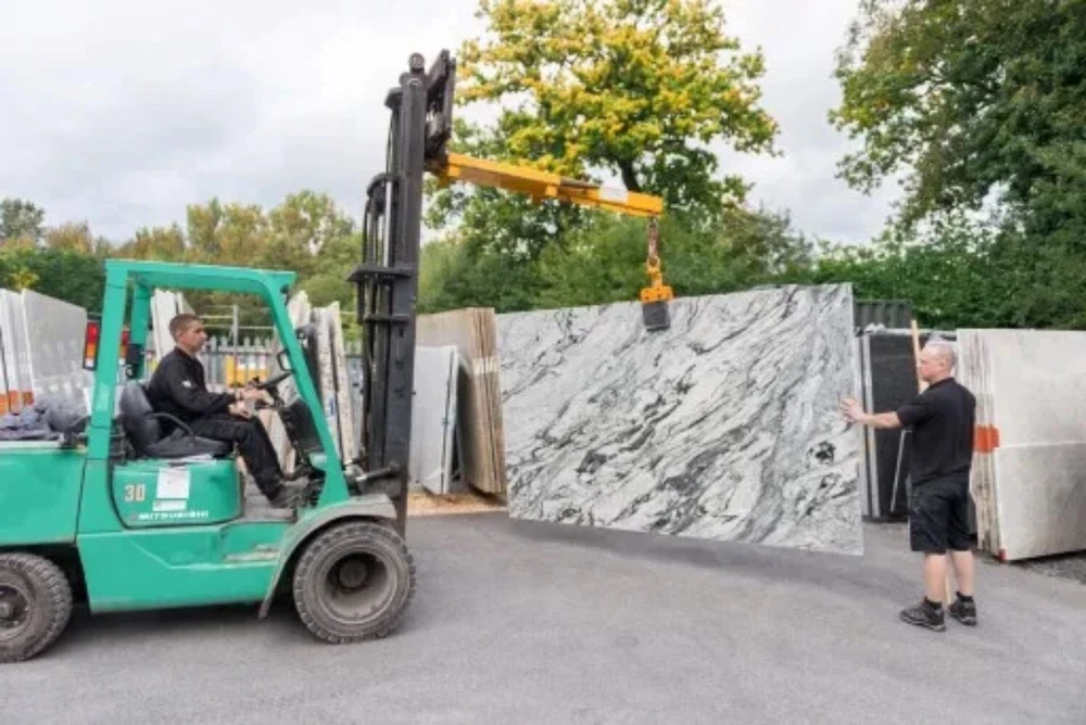 eBay Stone Slab Lifting Clamp Brand Unbranded Applicable Industries Building Material Shops,Manufacturing Plant,Construction works Material Metal + Rubber Type lifting gear Weight (KG) 28 Origin Mainland China Core Components Bearing Machinery Test Report Provided Application Stone slab lifting Video outgoing-inspection Provided Function Quick Holding Certification CE UPC Does not apply HSA-14 is application for material thicknesses of 15 to 60 mm, with the rubber linne jaws have been developed to handle material in slab or sheet form,stacked in racks, without damaging the material's surface. they have a number of advantages over common lifting devices. This stone slab lifter is designed to transport granite, marble, engineered stone slabs. These lifters have a compact design allowing them to operate in areas where little headroom or space between slabs is an issue. Technical Data Model Size (mm) Grip Range (mm) Weight Capacity (kg) Net Weight HSA-14 250x170x350 10-50 1000 28 Main Features * Compact structure allows for close packed stone slabs to be lifted out of racks and containers handily. * Size: possible to lift two slabs with different height concurrently * Versatile: the slabs can be placed closely to the walls * Safety: the operation is activated within simple actions to reduce the physical injuries for uses * Secure: It grips marble and granite slabs firmly.