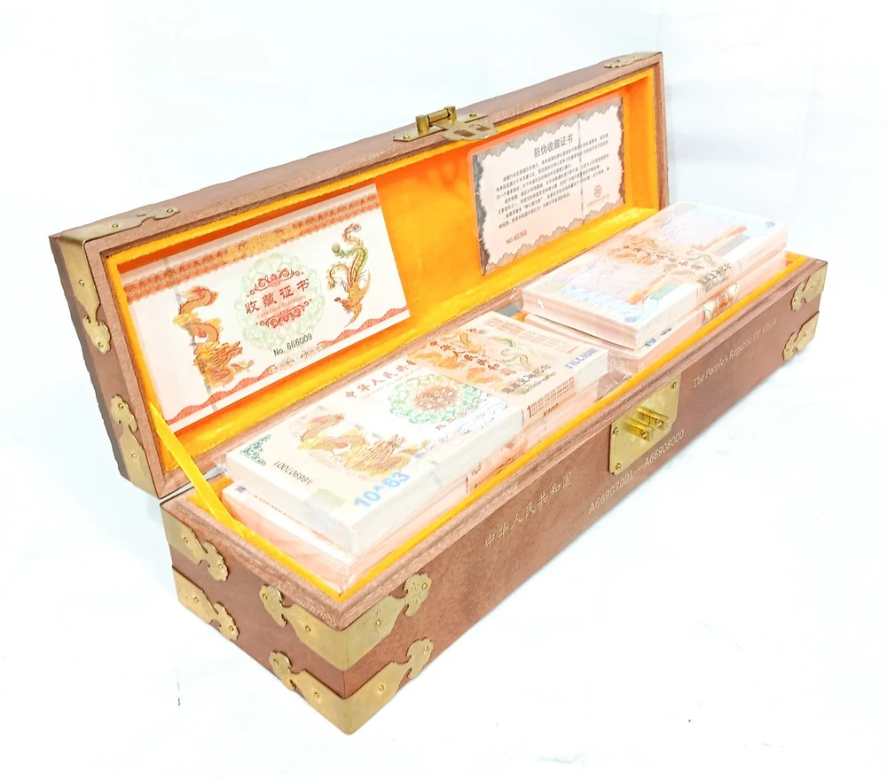 1000pcs 1 Vigintillion China Yellow Dragon Paper Note with Dragon Wood Box Collectible banknotes made by China Banknote and Minting Corp. In excellent, uncirculated condition. 10 bundles of 100 notes in Dragon Wood box. Denomination: 1 Vigintillion China Yellow Dragon Paper Note. Includes certificate of authenticity and bronze lock. Verified by a professional numismatist. Please ask any questions before purchasing. Buy with confidence! See our feedback. Stock info: I-15249anp08024 TERMS: THERE ARE NO TERMS! YOU ARE EITHER 100% HAPPY OR YOUR MONEY BACK! IF YOU HAVE ANY PROBLEMS OR CONCERNS WITH YOUR PURCHASE, PLEASE CONTACT US FIRST, BEFORE LEAVING FEEDBACK OR OPENING A CASE AGAINST US. OUR ONLY GOAL IS TO MAKE YOU HAPPY!!! WE WILL DO WHATEVER WE CAN DO TO ACCOMPLISH THAT GOAL! WE ACCEPT PAYPAL, VISA, MASTER CARD, AMERICAN EXPRESS AND DISCOVER. ABOUT US: Shores Wholesale is committed to customer service excellence, providing a variety of goods for purchase. Our operating hours are (EST): Mon - Fri: 9am to 5pm Sat: 9am to 3pm Closed Sunday If you contact us with a question after business hours, we will respond to your message at the start of the next business day.