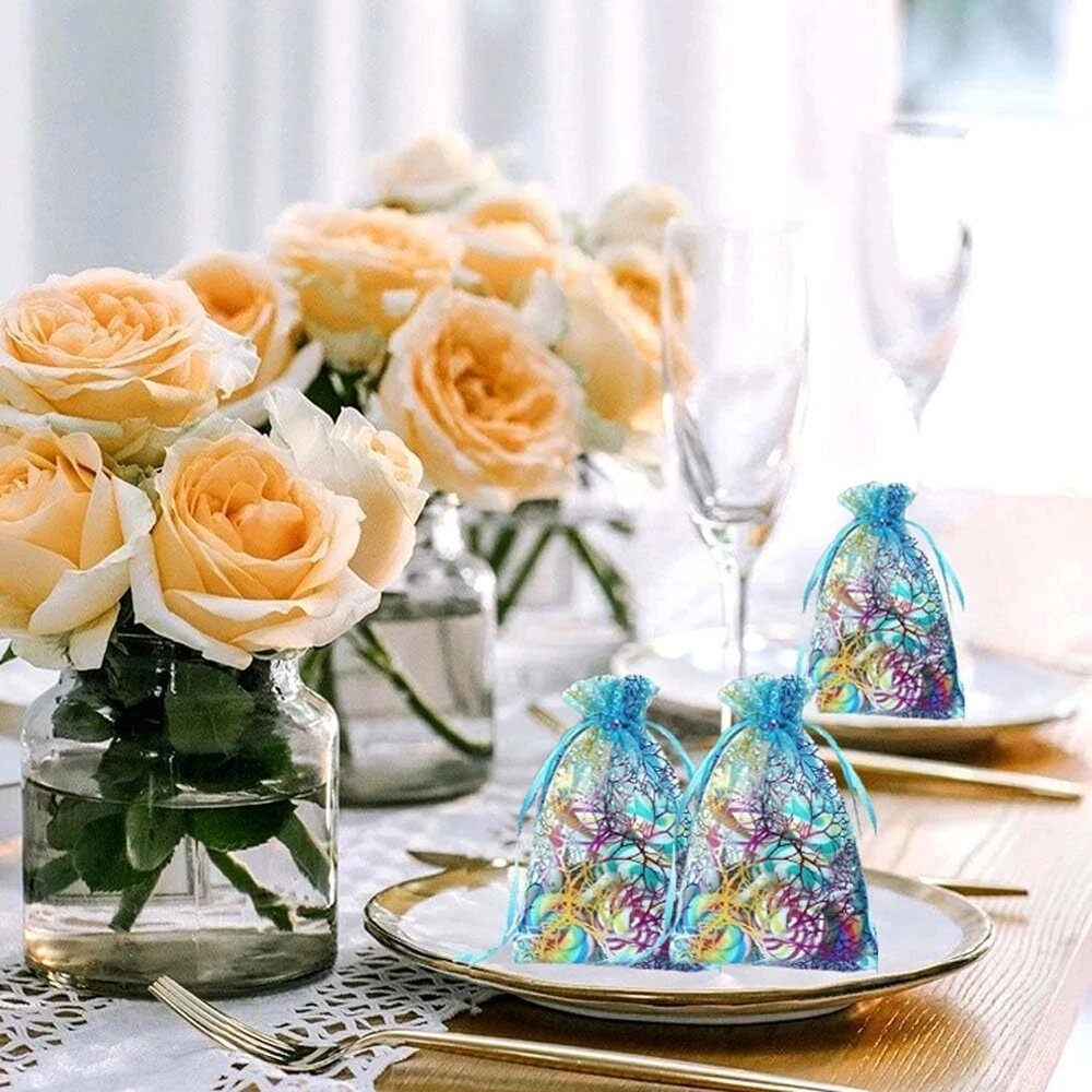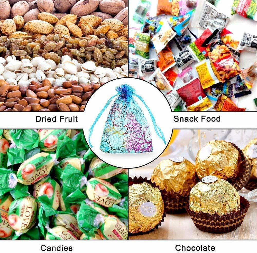 100pcs in 4 colors(25pcs for each color) 200pcs in 4 colors(50pcs for each color) 400pcs in 4 colors(100pcs for each color) High quality organza gift bags with ribbon drawstring,made of high quality sheer organza, with decorative silver or gold print. Recommended for jewelry, cosmetics, candles and gift items, Satin ribbon ties to close bag securely Ideal for use on your Christmas tree as decoration or to use as a gift pouch or wedding favor. Material:Organza Size: 2.75" x 3.5",4" x 6" ,5" x 7" Color:Blue,Pink,Purple,White Qty:100/200/400 Pcs
