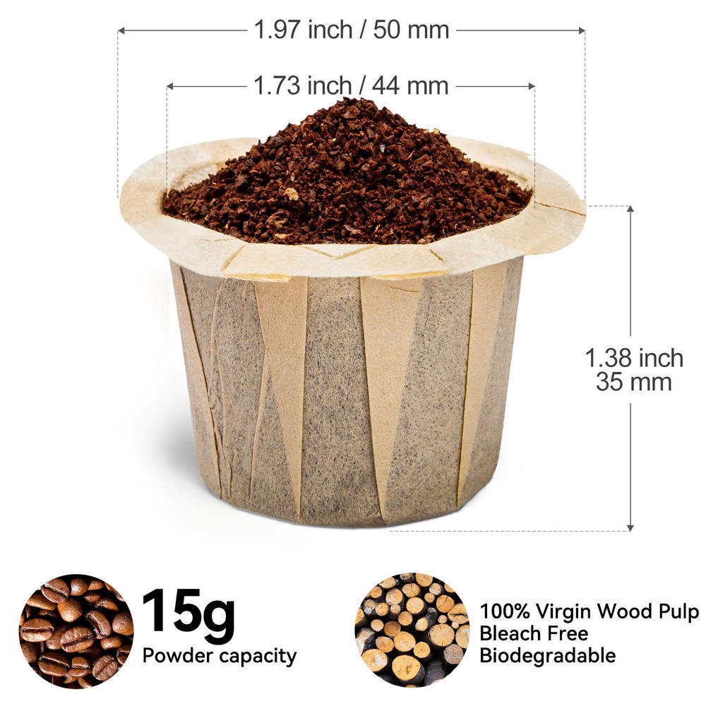 These K Cup coffee filters are a game-changer! They fit perfectly in reusable pods, eliminating sediment for a smoother, richer brew. The high-quality paper prevents bursting and ensures even extraction. Cleanup is effortless—just toss the used filter—and I love that they’re eco-friendly, bleach-free, and compostable. A must-have for Keurig owners who want barista-quality coffee at home without the mess!