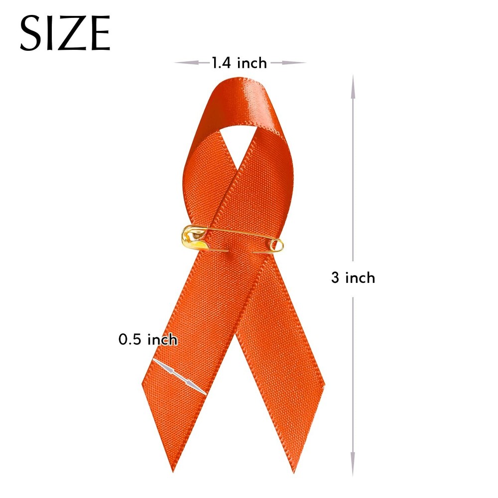 Curvier 100PCS Orange Satin Leukemia Awareness Ribbons with Safety Pins Product Details Color: Orange Size: 100PCS Brand: Curvierbuti EAN: 6162039598713 MPN: Does not apply UPC: Does not apply Product Dimensions: 4 x 3 x 1.5 inches Item Weight: 1.76 ounces Date First Available: October 26, 2024 Package Including: you will get 100 pieces of orange satin ribbons,providing a sufficient quantity to meet various event needs. Show Your Support: The orange awareness Ribbon Pin is perfect for awareness walks, fundraisers and events to spread awareness. You can pin the leukemia ribbon on your scarf, travel bag or guitar strap, in support of a group or someone special. Application: These leukemia ribbon pins are suitable to wear on charity events, leukemia cancer awareness activities, nonprofit fundraising events, party supplies volunteer activitie etc. Material: Leukemia ribbon bows with safety pins are made of satin and polyester,ensuring a smooth texture, vibrant color, durable and well made can be used for long time. Size: Actual size of orange ribbon is 1.4" wide and 3" high,which are lightweight to carry everywhere and convenient to use.