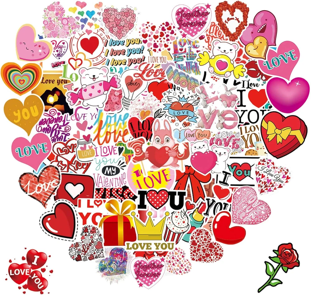 💌 【Quantity & Style】 100PCS I love you vinyl stickers with different styles and no duplicates, enough to decorate various items and add a strong atmosphere to your Valentine's Day. 💖 【Excellent Material】 Personalized graffiti stickers are made of high quality vinyl material, safe and non-toxic, strong adhesive, durable, wrinkle-resistant, waterproof, sun-proof, smooth surface and bright colors. 💟 【Easy to Use】 Valentine's Day decorative stickers are super cute decorations, easy to paste, just simply peel and stick, can be pasted multiple times and will not leave any residue when you take it off. 💕【Wide Application】Valentine's Day stickers can be attached to the surface of luggage, computers, skis, refrigerators, closets, walls, bicycles, notebooks, mirrors, and any other items you want to decorate. 🎁 【Romantic Gift】The perfect gift for weddings, anniversaries and Valentine's Day, a pack of love-themed stickers can bring holiday joy to you and your loved ones, how wonderful it is! Product Description 104PCS unique high definition printed Valentine's Day stickers Gifts Mugs Letter Laptop Notebook bag Product Information Item: Valentine Stickers Weight: 1.5oz Material: Vinyl Quantity:104PCS About Us In this fast-paced age of information technology. The air of paper-based art and culture has been replaced by electronic screens. Holiday wishes have also shifted from greeting cards and letters to electronic screens. We want to come up with products that store our feelings and memories. Use paper art to express the good times of our holidays and wishes for our loved ones. DERFILIN would like to be with you every day of your life!