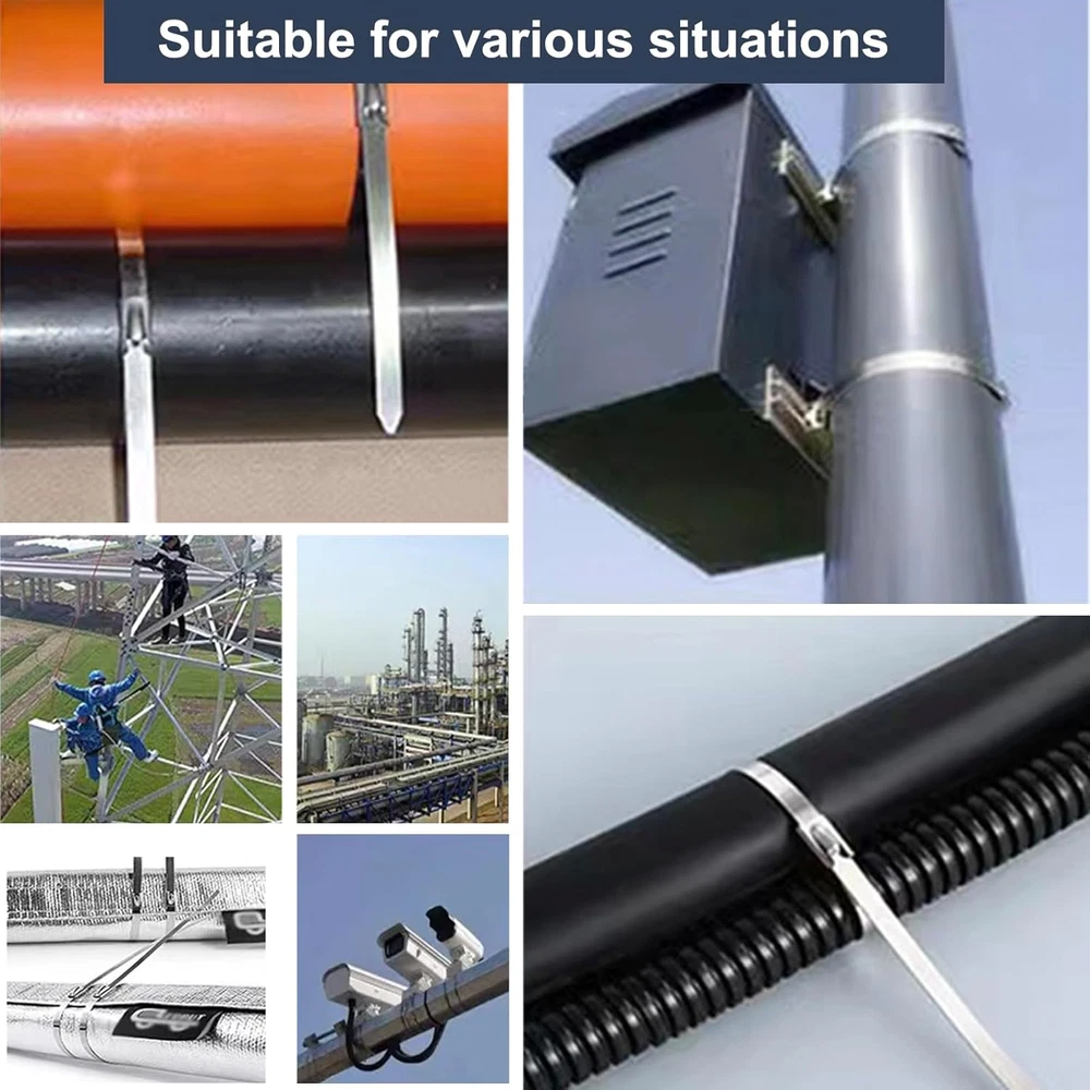 [Superior Durability and Strength] Crafted from top-grade 304 stainless steel, Duthcbw Metal Zip Ties are built to withstand tough outdoor conditions. These robust zip ties offer outstanding tensile strength, ensuring your items stay securely fastened no matter the environment. [Versatile Applications] Duthcbw Stainless Steel Zip Ties are highly versatile, making them perfect for a wide range of industrial tasks. Whether it's securing exhaust wraps or organizing chain link fence parts, these zip ties meet all your heavy-duty requirements. [Reliable Self-Locking Mechanism] Duthcbw Metal Zip Ties feature a dependable self-locking design that ensures a tight, secure fit every time. This user-friendly mechanism makes installation quick and hassle-free, saving you time on your projects. [Weather and Corrosion Resistant] These heavy-duty stainless steel cable ties are designed to resist weather and corrosion, maintaining their strength and reliability even in extreme temperatures. Perfect for outdoor and industrial applications, they stand up to the elements. [Easy to Install and Adjust] Thanks to their flexible yet strong construction, Duthcbw Metal Zip Ties are simple to install and adjust. Whether you're bundling cables or securing materials, these zip ties offer an efficient and reliable solution for all your industrial needs. I. Product Specifications Product Title: Duthcbw 100pcs 11.8in Metal Zip Ties Material: Premium 304 Stainless Steel Quantity: 100 pieces Size: 11.8 inches II. Product Highlights Duthcbw Metal Zip Ties are constructed from high-quality 304 stainless steel, providing exceptional strength and durability. Compared to traditional plastic zip ties, these heavy-duty metal ties are four times stronger, offering unparalleled reliability for a wide range of applications. Their stainless steel composition ensures resistance to high temperatures, cold conditions, rust, and corrosion, making them ideal for challenging environments. III. Practical Applications These versatile metal zip ties are designed to excel in various settings, including: Machinery: Secure and organize components in industrial machinery. Vehicles: Fasten and manage wiring and components in automotive applications. Exhaust Wrap: Withstand extreme temperatures in exhaust wrap installations. Farms: Provide durable solutions for agricultural equipment and structures. Pipes and Roofs: Securely bundle and fasten piping and roofing materials. Cables: Organize and manage cables in outdoor and industrial settings. Outdoor Fence: Create reliable and long-lasting fencing solutions for outdoor use. Duthcbw Metal Zip Ties are the ideal choice for anyone seeking robust, long-lasting fastening solutions across a diverse range of applications and environments.