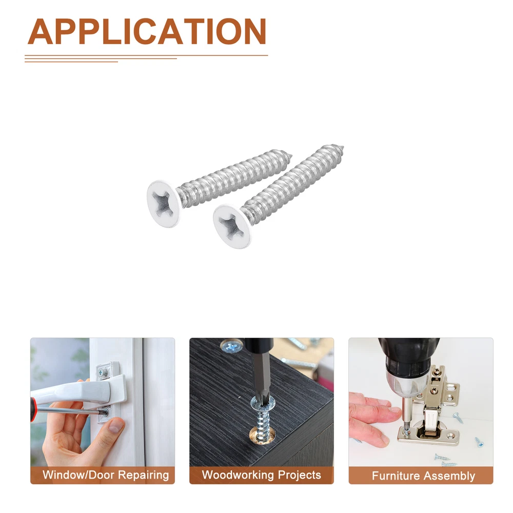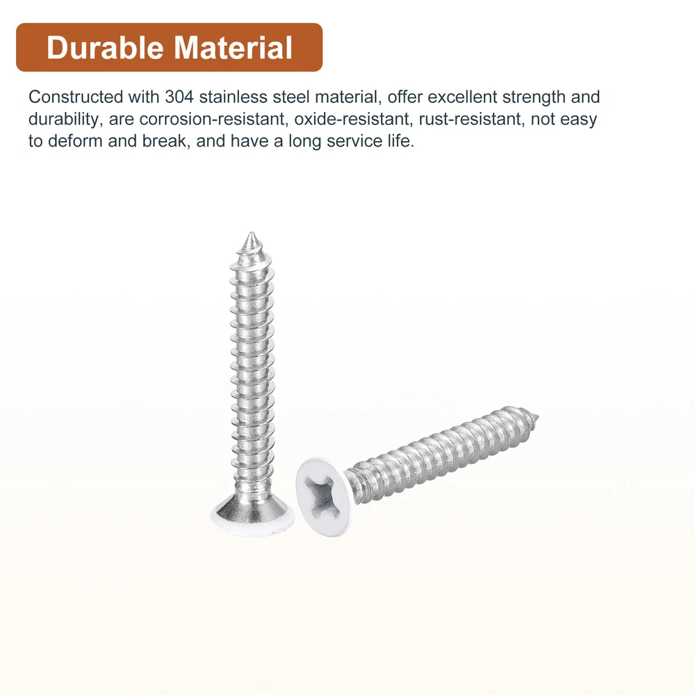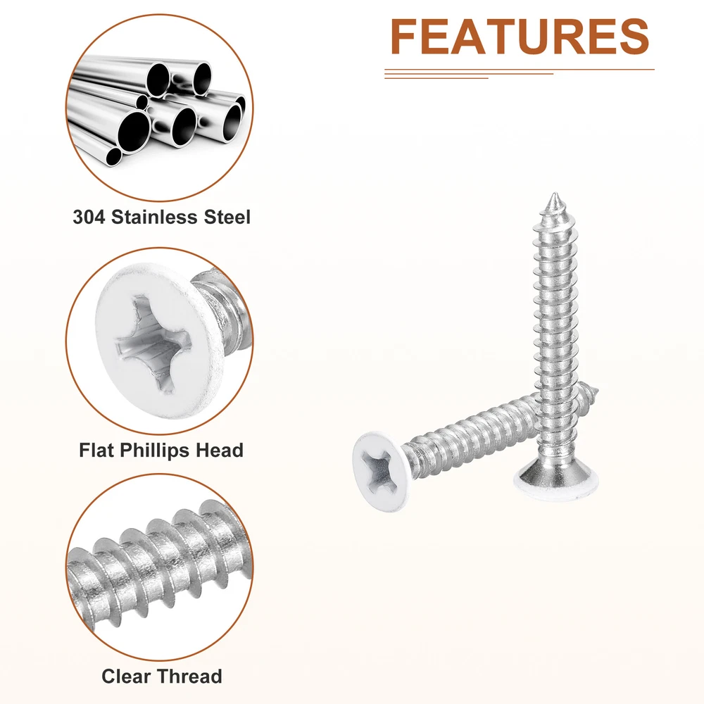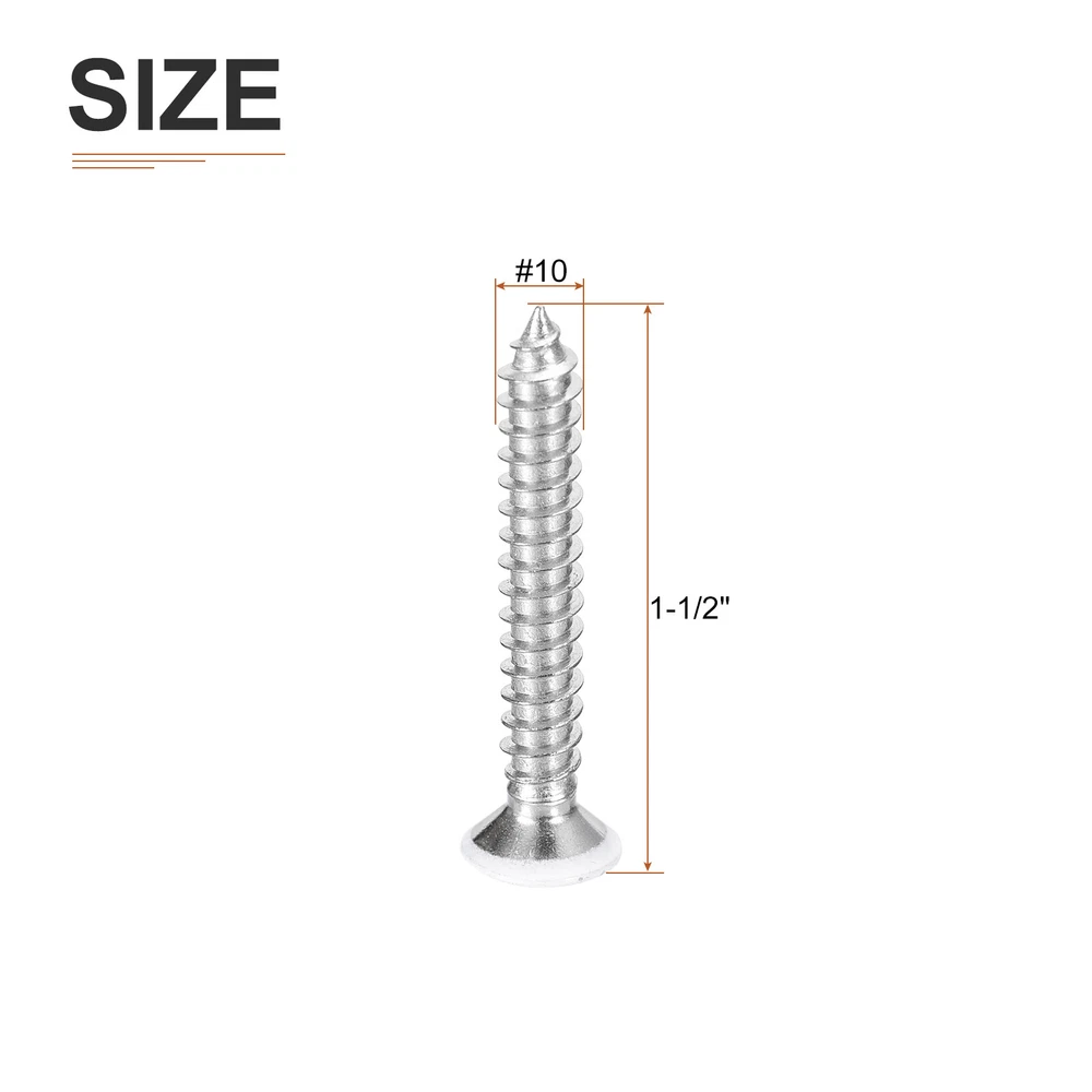 Document Product Details:Color: Silver(Body), White(Head)Material: 304 Stainless SteelThread Size: #10x1-1/2"(Thread Dia*Total Length)Package Content: 100pcs x Self Tapping ScrewsMaterial - These screws are constructed with 304 stainless steel material, offer excellent strength and durability, are corrosion-resistant, oxide-resistant, rust-resistant, not easy to deform and break, and have a long service life.Feature - Self-tapping screws offer convenience and efficiency, with a sharp, pointed tip allowing for quick and reliable fastening without the need for pre-drilling or additional hardware. What's more, the cross-drive screws feature a countersunk head design to sit flush with the surface they are being driven into.Application - Flat head screws are great replacement parts and construction fasteners for machinery, industry, manufacturing applications, household appliances, furniture, woodworking, DIY projects, etc. Suitable for use in a variety of materials, such as plastics, wood, metal, etc.Notice - The screws are packed in a durable box, to avoid making a mess, the box is clearly labeled so that you can quickly identify the size you need by the label. 100Pcs #10x1-1/2" Flat Head Wood Screws Steel White Phillips Self Tapping Black Product Details: Color: Silver(Body), White(Head) Material: 304 Stainless Steel Thread Size: #10x1-1/2"(Thread Dia*Total Length) Package Content: 100pcs x Self Tapping Screws Material - These screws are constructed with 304 stainless steel material, offer excellent strength and durability, are corrosion-resistant, oxide-resistant, rust-resistant, not easy to deform and break, and have a long service life. Feature - Self-tapping screws offer convenience and efficiency, with a sharp, pointed tip allowing for quick and reliable fastening without the need for pre-drilling or additional hardware. What's more, the cross-drive screws feature a countersunk head design to sit flush with the surface they are being driven into. Application - Flat head screws are great replacement parts and construction fasteners for machinery, industry, manufacturing applications, household appliances, furniture, woodworking, DIY projects, etc. Suitable for use in a variety of materials, such as plastics, wood, metal, etc. Notice - The screws are packed in a durable box, to avoid making a mess, the box is clearly labeled so that you can quickly identify the size you need by the label. Hot Item Payment 1.We accept eBay payment . 2.Payment must be received within 7 business days of auction closing. Shipping 1.We ship to your eBay or Paypal address. Please make sure your eBay and Paypal address is correct before you pay. 2.Items will be shipped within 1-3 business day when we received payment. 3.Delivery time depends on destination and other factors. Description Policy 100Pcs #10x1-1/2" Flat Head Wood Screws Steel White Phillips Self Tapping Black Product Details: Color: Silver(Body), White(Head) Material: 304 Stainless Steel Thread Size: #10x1-1/2"(Thread Dia*Total Length) Package Content: 100pcs x Self Tapping Screws Material - These screws are constructed with 304 stainless steel material, offer excellent strength and durability, are corrosion-resistant, oxide-resistant, rust-resistant, not easy to deform and break, and have a long service life. Feature - Self-tapping screws offer convenience and efficiency, with a sharp, pointed tip allowing for quick and reliable fastening without the need for pre-drilling or additional hardware. What's more, the cross-drive screws feature a countersunk head design to sit flush with the surface they are being driven into. Application - Flat head screws are great replacement parts and construction fasteners for machinery, industry, manufacturing applications, household appliances, furniture, woodworking, DIY projects, etc. Suitable for use in a variety of materials, such as plastics, wood, metal, etc. Notice - The screws are packed in a durable box, to avoid making a mess, the box is clearly labeled so that you can quickly identify the size you need by the label. Hot Item Payment 1.We accept eBay payment . 2.Payment must be received within 7 business days of auction closing. Shipping 1.We ship to your eBay or Paypal address. Please make sure your eBay and Paypal address is correct before you pay. 2.Items will be shipped within 1-3 business day when we received payment. 3.Delivery time depends on destination and other factors.