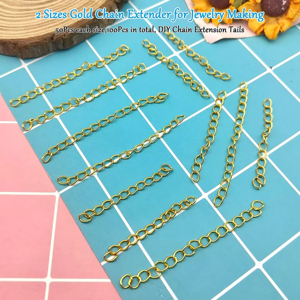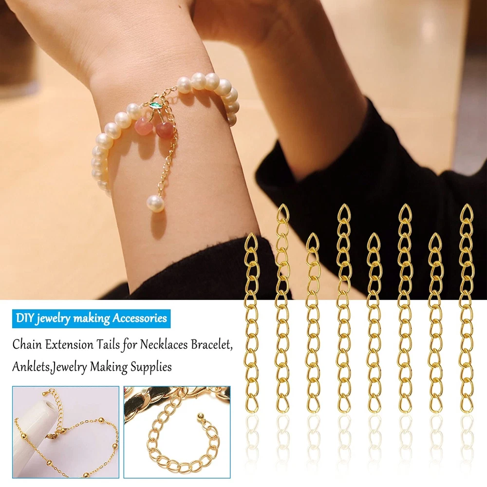 Wide Application: This chain extender set is a must have for every jewelry cabinet,perfect for DIY jewelry making,necklaces or bracelets, fit for expanding the length of necklaces, bracelets or anklets,you can choose the appropriate length according to your neck, wrist, ankle. Note: Do not wear the jewelry extender when exercising, bathing, swimming or doing heavy work, so as not to hit or tear. Specifications: Quantity: 100Pcs Material: stainless steel Size: 5cm*4mm,7cm*4mm Color: gold Package included: 100xChain Extender Package Includes:comes with 100Pcs chain extension tails in two sizes,they are 5cmx4mm,7cmx4mm,50Pcs in each size,different lengths meet different needs,great for your DIY jewelry making necklaces Bracelet,Anklets,key chain,etc. Wide application: These extension chain are fit for expanding the length of necklaces,bracelets key chain or anklets,etc,good for hanging charms, stones,even can make dangle earrings,you can choose the different size to meet your jewelry need. Durable Material:Stainless steel extenders chain are solid and durable.made of zinc alloy which is lead and nickel free,different size meet your different needs for your craft projects. Note:Chain Extender come in two size,Warm notice: do not wear the jewelry extender when exercising, bathing, swimming or doing heavy work, so as not to hit or tear. We Promise:Everything we do is to get the satisfaction of our customers,We know it's hard,but we'll keep trying to do it.if you have any questions about Bracelet Necklace Chain Extender,please feel free to contact us,you would get a satisfactory service.