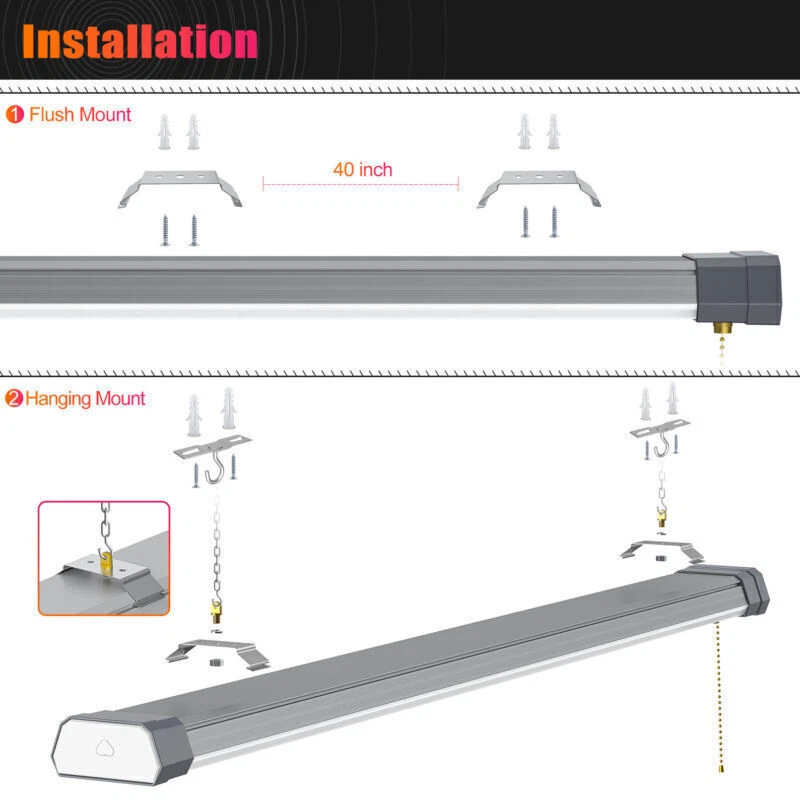 Product Description 100W 120W LED Shop Light Fixture For Garage Workshop Office Warehouse 1-2-4 Pack PACKAGE INCLUDE: Quantity and Wattage as your choice 【Proper lighting for store】 Provides 12,000 Lumens and consumes only 100-Watt of power (120Lm/w), our led shop lights at 5,000K features 120°beam angle,covers more space with CRI>80, non flicker. Making your shop more bright to showcase the products and attract more customers. 【Cut Down Your Electric Bills Up to 80%】Our led garage light is the ideal replacement for up to 5-lamp 32W Fluorescent light, provides you up to 50,000 hours(20 Years or More) service time and less maintenance. 【Ceiling & Chain Mount, Adjustable Pull Chain Switch】With the hassle-free installation, you can opt to surface mount or hang these industrial garage lights. Adjustable pull chain switch provides an instant on, with most convenient. These shop lights are easy to install as either hardwired fixtures or with a power cord. Come with a hardware package. 【Link up to 5 LED Shop Lights】 You can link up to 5 units garage lights together to simplifying your installation. Two connection ways, choose the small connector if you chain mount these led lights, choose 60cm connection wire if you opt to surface mount these commercial lights. Small connectors and 60cm connection wire are provided. 【Excellent Heat Dissipation】Aluminum material provides excellent heat dissipation, this led light offers even lighting with no hot or cold spots. The shatterproof bulbs remain cool when lit. Provides you good experience while working on your garage or workbench 【Free Customer Service & 5 Years Warranty】An extended warranty period of 5 years provides extra peace of mind that these industrial garage lights will hold up over time. The 50,000-hour lifespan means that you won’t need to replace them often. What’s more, any questions, please be free to let us know. We can provide you best support! Specifications Power: 100W Voltage: AC 120V Lumens: 12000lm Power factor:>0.9 Beam Angle: 120° CRI: >80 CCT: 5000K Daylight Lifespan: 50,000 hours Advantage 100W Super Bright Linkable Up to 5 Lights Easy to Install Great Heat Dissipation Low Maintenance Support Hanging Mount or Surface Mount Wide Application The led shop lights is suitable for office,auto shops,workshops,garages, basements, entertainment rooms, storage rooms, warehouses, equipment rooms, industrial workstations, workplaces, showrooms and any other industrial or commercial area. About Us Payment Shipping Returns Contact Us SHENZHEN NUOGUAN TECHNOLOGY CO. LTD founded in 2010. We are high-technology comany specialized in manufacture Commercial and industrial LED light. Advanced production equipment and excellend R&D ability help us to combining service ,production sell together provide top-level products to our customers. 1. Payment is expected within 7 days of auction close. Or Unpaid Items will be forfeited per eBay . 2. Taxes may be applicable at checkout as states adopt new laws and regulations regarding sales tax collection. 1. We ONLY ship to USA . 2. Orders processed within 1-2 business day of payment verification. There’s no Delivery service or courier service on Saturdays, Sundays or Public Holidays. 3. We have 3 different warehouse in US,so due to stock status and time differences, we will choose to ship your item from our first available warehouse for fast delivery. 4. We offer Free Shipping within the Lower 48 states! All packages are sent via UPS or USPS.The delivery time for UPS Ground is typically 2-5 business days. We strive to ensure 100% satisfaction for each and every one of our customers. we offer a 30-day 100% money-back guarantee on all eBay orders. If your item isn't just as you wished, simply send it back to us and we'll refund or replace your item. Please note that all returns must be authorized by our Customer Service department. please contact us though message first if you have any problem. USA Warehouse. Fast shipping! We are appreciated your purchasing form our eBay store. Office Time: 9:30 - 18:30, Monday - Saturday (UTC+8) Please contact us with eBay Message. We will respond you within 24 hours on business day. About Us SHENZHEN NUOGUAN TECHNOLOGY CO. LTD founded in 2010. We are high-technology comany specialized in manufacture Commercial and industrial LED light. Advanced production equipment and excellend R&D ability help us to combining service ,production sell together provide top-level products to our customers. Payment 1. Payment is expected within 7 days of auction close. Or Unpaid Items will be forfeited per eBay . 2. Taxes may be applicable at checkout as states adopt new laws and regulations regarding sales tax collection. Shipping 1. We ONLY ship to USA . 2. Orders processed within 1-2 business day of payment verification. There’s no Delivery service or courier service on Saturdays, Sundays or Public Holidays. 3. We have 3 different warehouse in US,so due to stock status and time differences, we will choose to ship your item from our first available warehouse for fast delivery. 4. We offer Free Shipping within the Lower 48 states! All packages are sent via UPS or USPS.The delivery time for UPS Ground is typically 2-5 business days. Returns We strive to ensure 100% satisfaction for each and every one of our customers. we offer a 30-day 100% money-back guarantee on all eBay orders. If your item isn't just as you wished, simply send it back to us and we'll refund or replace your item. Please note that all returns must be authorized by our Customer Service department. please contact us though message first if you have any problem. Contact Us USA Warehouse. Fast shipping! We are appreciated your purchasing form our eBay store. Office Time: 9:30 - 18:30, Monday - Saturday (UTC+8) Please contact us with eBay Message. We will respond you within 24 hours on business day. You may also like 100W LED Barn Light with Dusk To Dawn Photocell Outdoor Garden Yard Night Ligh