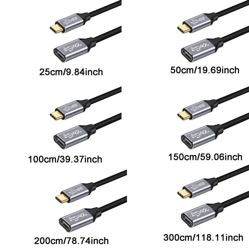 Features: brand new and high quality Contact us if you have questions,we will try to serve for until you are satisfied New Extension Cable: it is much more convenient. Protects the plug and prolongs the life of the cord by reducing the stresses of daily use. Sleek aluminum housing and premium nylon braided cable add for extra durability and Double sided, easy to use. This USB C male to female extender supports power delivery of up to 100W, providing the fastest possible charge for your devices. Data transfer speeds of up to 10Gbps, allowing you to transfer large files like high defination video in seconds. extensions extend the reach of your existing USB C cables, making it simple to connect devices for added convenience; supports uploading and data transmission for or video (4K). Specifications: Material:Aluminum and Nylon Product Power: 100W Product Current: 5A20V Function: Charging + Transmission Length: 25cm/50cm/100cm/150cm/200cm/300cm/9.84/19.69/39.37/78.74/118.11in Net Weight:16-115g Package Includes: 1x USB C Extension Cable note: Please allow 0-1cm error due to manual measurement. Make sure you do not mind before you bid. Due to the difference between different monitors, the picture may not reflect the actual color of the item. Thank you!