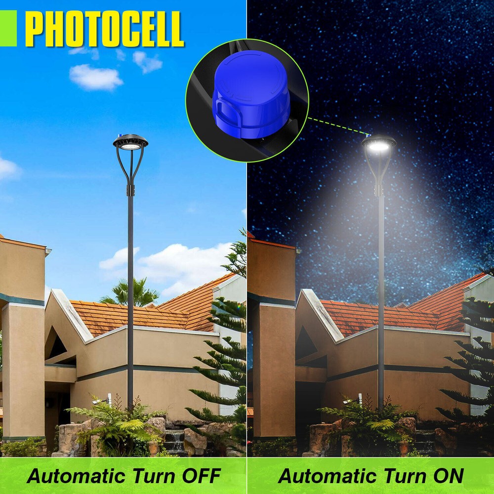 Product Description 100W Outdoor Street Garden Pathway Yard Parking Lot LED Pole Light Dusk to Dawn Light Up Larger Area - The 100w light post bring 14000Lm with SMD3030 chips, up to 140lm/watt, AC 100-277V universal voltage and 120°beam angle. 5000K color temperature of lighting is a nice choice for street light illumination. Anti-shock, anti-moisture, no glare, no strobe light, no ghosting, protecting your eyes. Dust to Dawn Photocell - The Led circular post top pole light comes with photocell sensor outside automatically turns ON at sundown/night and light post at sunrise/daytime with dusk to dawn, high power factor >0.9, more than 50000hours lifespan, reduce your electricity consumption, save your electronic bill. Provides a continuous, efficient outdoor lighting environment. Commercial Grade Material - The DLC/ETL Listed post pole light fixture made of die-casting aluminum body + protective glass cover. The scientific design helps the exterior light post top to dissipate better, achieve the best use of the led lighting post. IP65 waterproof for drying, wet environment, sandstorms, snowstorms, and harsh weather conditions. Wide Application - The circular post top design give the lamp a uniform brightness and can be applied to a variety of outdoor scences, such as pathway, street, front yard, city expressway, trunk/rustic road, factories, playground, school, garden, courtyard, parking lot, public park, walkway, exterior, driveway, store, farmyard or any other commercial and industrial area. Installation and Warranty - The pole mount of our post area light fits for a 2 3/8-inch OD tenon & less than or equal to 3 inch standard pole, very easy to install and transfor(Please see the video on the product page for more installation info). KUKUPPO offer you lasting safety and reliability backed by a 5-year warranty. For a bulk order, email us in advance to get a different offer. Specifications: Rated Wattage: 100W Luminous Flux: 14000Lm Color Temperature: 5000K Protection Grade: IP65 Material : Aluminum Body+Glass Cover Input Voltage : AC100-277V 50/60Hz Dimension: Dia 400x650 mm Base: 2 Pins Wire Power Factor: >90% Beam Angle : 120 degrees Average Lifetime : More than 50000 hours Flexible Installation The pole mount of our post area light fits for a 2 3/8-inch OD tenon & less than or equal to 3 inch standard pole, very easy to install and transfor Commercial Grade Material DLC/ETL Listed quality. Scientific design helps the exterior light post top to dissipate better, achieve the best use of the led lighting post. Durable Support Rod Made of thick aluminum, stable and strong, waterproof and rustproof. High performance quality provides with lasting safety and reliability. Ultra Bright LED Chips With SMD3030 chips, up to 140lm/watt. Anti-shock, anti-moisture, no glare, no strobe light, no ghosting, protecting your eyes. Kindly Note Please note that the light can not be used IN the water. Please confirm the wire connection is right while installing. About Us Payment Shipping Returns Contact Us SHENZHEN NUOGUAN TECHNOLOGY CO. LTD founded in 2010. We are high-technology comany specialized in manufacture Commercial and industrial LED light. Advanced production equipment and excellend R&D ability help us to combining service ,production sell together provide top-level products to our customers. 1. Payment is expected within 7 days of auction close. Or Unpaid Items will be forfeited per eBay . 2. Taxes may be applicable at checkout as states adopt new laws and regulations regarding sales tax collection. 1. We ONLY ship to USA . 2. Orders processed within 1-2 business day of payment verification. There’s no Delivery service or courier service on Saturdays, Sundays or Public Holidays. 3. We have 3 different warehouse in US,so due to stock status and time differences, we will choose to ship your item from our first available warehouse for fast delivery. 4. We offer Free Shipping within the Lower 48 states! All packages are sent via UPS or USPS.The delivery time for UPS Ground is typically 2-5 business days. We strive to ensure 100% satisfaction for each and every one of our customers. we offer a 30-day 100% money-back guarantee on all eBay orders. If your item isn't just as you wished, simply send it back to us and we'll refund or replace your item. Please note that all returns must be authorized by our Customer Service department. please contact us though message first if you have any problem. USA Warehouse. Fast shipping! We are appreciated your purchasing form our eBay store. Office Time: 9:30 - 18:30, Monday - Saturday (UTC+8) Please contact us with eBay Message. We will respond you within 24 hours on business day. About Us SHENZHEN NUOGUAN TECHNOLOGY CO. LTD founded in 2010. We are high-technology comany specialized in manufacture Commercial and industrial LED light. Advanced production equipment and excellend R&D ability help us to combining service ,production sell together provide top-level products to our customers. Payment 1. Payment is expected within 7 days of auction close. Or Unpaid Items will be forfeited per eBay . 2. Taxes may be applicable at checkout as states adopt new laws and regulations regarding sales tax collection. Shipping 1. We ONLY ship to USA . 2. Orders processed within 1-2 business day of payment verification. There’s no Delivery service or courier service on Saturdays, Sundays or Public Holidays. 3. We have 3 different warehouse in US,so due to stock status and time differences, we will choose to ship your item from our first available warehouse for fast delivery. 4. We offer Free Shipping within the Lower 48 states! All packages are sent via UPS or USPS.The delivery time for UPS Ground is typically 2-5 business days. Returns We strive to ensure 100% satisfaction for each and every one of our customers. we offer a 30-day 100% money-back guarantee on all eBay orders. If your item isn't just as you wished, simply send it back to us and we'll refund or replace your i