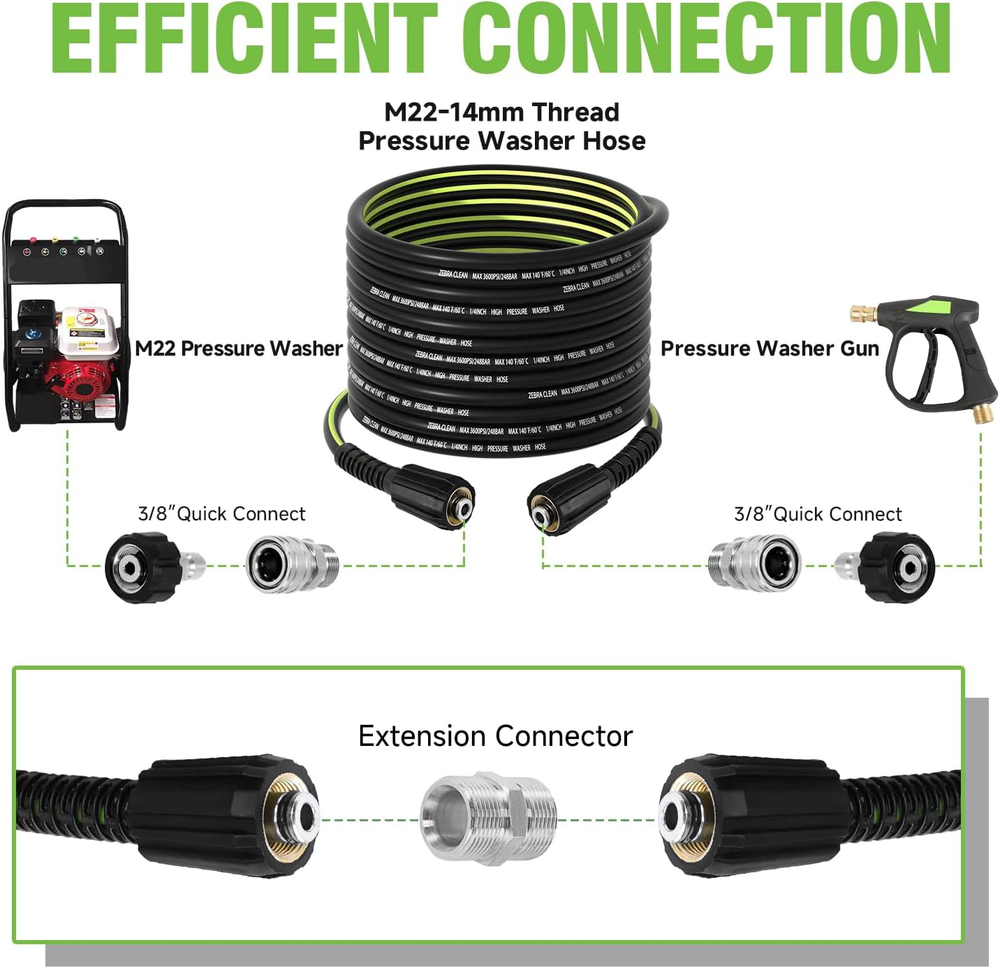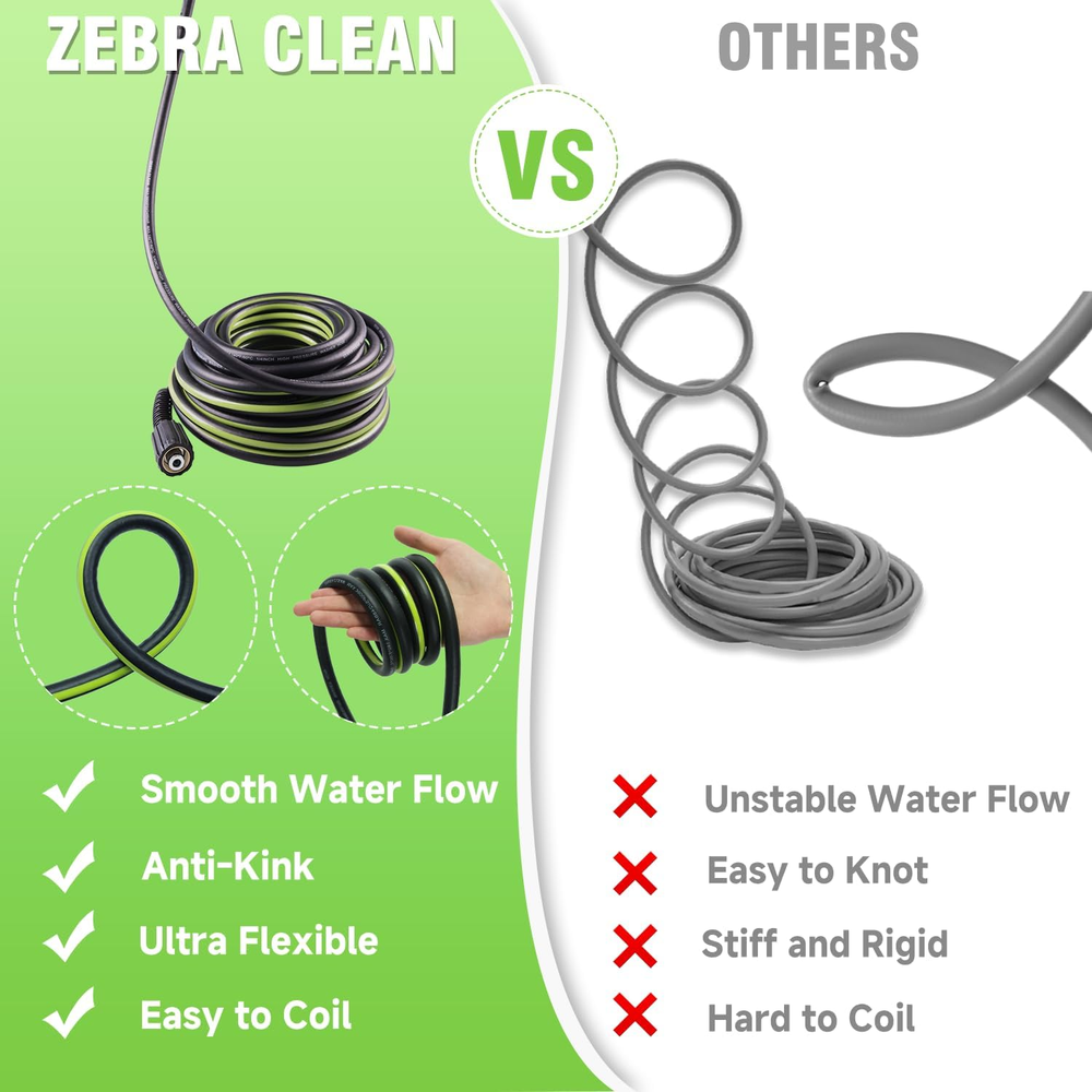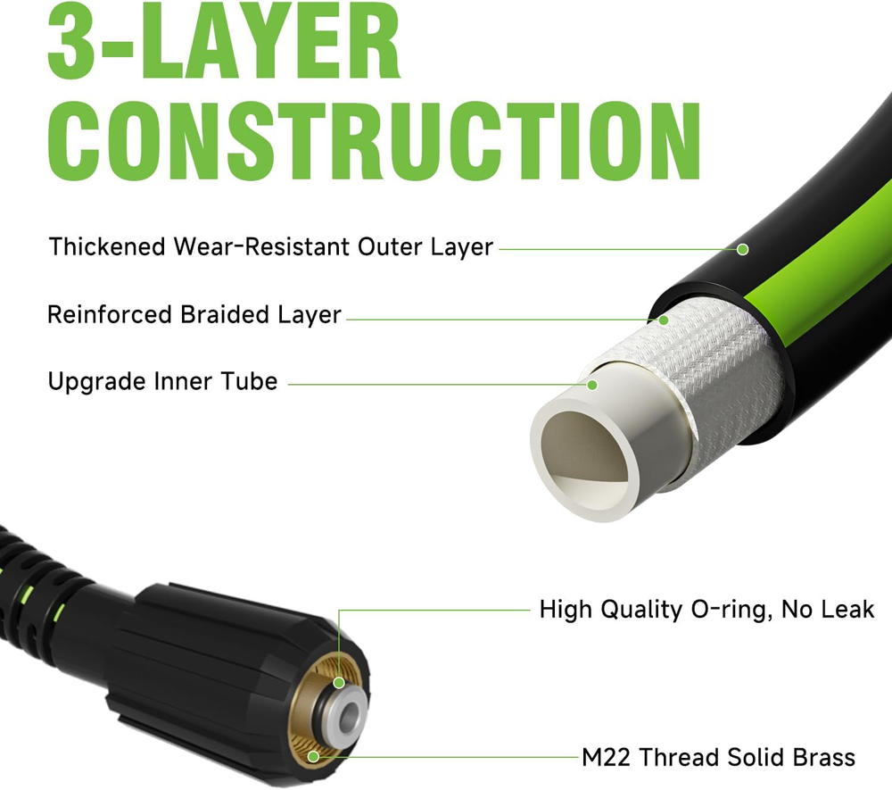 This hose is a total game-changer! The extra length gives me so much freedom to move around without constantly dragging the machine. It's incredibly durable and hasn't kinked once, even when I've wrapped it around obstacles. The quick-connect fittings are super convenient and have stayed completely leak-free. A fantastic upgrade that makes washing the car or deck so much easier.