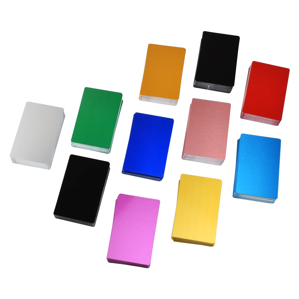Features: 1. High quality aluminum Blank business cards, blank/round corner/edge not rough, specifically designed for engraving. 2. Standard business card size 86mm x 54mm. 3. Great for high-end business cards, reward cards, membership cards, simply to engrave on. Specifications: Material: Aluminium Alloy Color: Bright Black Size: 86mm x 54mm Thickness: 0.21mm Quantity: 100 Pcs ± 5 !!!!PLEASE READ!!!! 1. 100PCS single color per pack. 2. No mixed color option. 3. The metal business card is made of aluminum, so please be sure that your machine can engrave the material before placing the order. 4. Please be noted that the picture may not reflect the actual color of the item since the difference among the monitors. Thank you! - If you have any questions, please send us a message and we will be happy to get back to you.