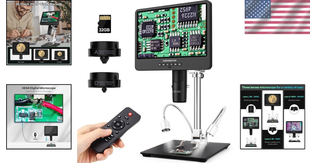 High-Resolution 10.1 Inch Microscope: 2000x Magnification for Kids and Adults ‹ › ‹ › ‹ › ‹ › ‹ › ‹ › ‹ › ‹ › ‹ › ‹ › High-Resolution 10.1 Inch Microscope 2000x Magnification for Kids and Adults Introducing the Ultimate Microscope Experience Unlock the mysteries of the microscopic world with this state-of-the-art High-Resolution 10.1 Inch Microscope, designed for curious minds of all ages. The ultra-high-definition 2160P HDMI output provides astonishing clarity, allowing users to explore the tiniest details with exquisite precision. Exceptional Features: Versatile Lens Options: Three specialized lenses (Lens L for soldering, Lens A for coins and plants, Lens D for biological slides) cater to diverse observational needs. Unmatched Clarity: Experience the microscopic world like never before, with magnification ranging from 15x to an incredible 2000x. Robust and Adjustable Bracket: Features a professional boom arm stand, adjustable in all directions, ideal for intricate soldering tasks and larger workspaces. All-Inclusive Microscope Kit: Comes complete with essential accessories, including prepared slides and a Micro SD card for capturing stunning images. User-Friendly Design: Effortlessly swap lenses and adjust settings with intuitive focus and bracket control. Professional Measurement Software: Connect seamlessly to your Windows PC to measure, photograph, and document results for scientific use. Convenient Wireless Remote: Operate from a distance with adjustable LED lights and functions tailored for educational demonstrations. Capture Your Discoveries: Not just a microscope – a gateway to the micro-world. With the included Micro SD card, take photos and videos of your findings. Immerse yourself in a rich visual experience, whether it's for academic purposes, hobbies, or simply exploring nature. What’s Included: 1x Microscope host 1x Lens A 1x Lens D 1x Lens L 1x Slide holder 1x 32GB Micro SD card 1x USB cable 1x Switch cable 1x HDMI cable 1x Remote control 5x Prepared Slides 1x Observation box 1x Tweezers 1x Instruction manual Why Choose Our High-Resolution Microscope? Elevate your exploration with a microscope that promises not just magnification, but a comprehensive, interactive learning experience. Perfect for both kids and adults, this multifunctional microscope is the ideal tool for education, hobbies, and professional use. Dive into the enchanting details of our world and start your journey today! Shipping Free & Fast Shipping - We offer free shipping to most of the USA with a normal delivery time of 3-10 businessdays. However, due to various situations, additional delivery time (up to 3 weeks) may be required for some items. Alternative Carriers - We may use alternative carriers (e.g. USPS, FedEx, UPS, etc.) to ensure your package arrives safely and on time. Due to the use of multiple carriers, we are unable to provide a tracking number automatically. Handling Time - Orders are processed and shipped within 1-5 business days of receiving cleared payment. Shipping Restrictions - Shipping to Alaska, Hawaii, Puerto Rico, Guam, and other US territories may incur shipping charges or delivery restrictions. Please contact us before ordering, or your order can be refunded/cancelled. State Restrictions - There may be restrictions based on your state of purchase. For example, certain items may not be shipped to California due to state regulations. Contact for Tracking Updates - If you require tracking updates or have any concerns about the delivery of your order, please feel free to contact us, and we will be happy to assist you. Return Please see our ebay return policy. We do not accept return on most products. This is to avoid customers mis-using ebay returns. All sales are final. Please be sure to check the return policy listed at the top of the listing. In rare cases, we may accept returns, if the buyer pays both ways shipping and 20% restocking fee. If you are un-sure of return policy of a particular item, please ask before buying. Payment We accept all major credit cards, PayPal, and Apple Pay for your convenience. Your payment information is secure and encrypted to ensure a safe and seamless transaction. Please complete your payment within 3 days of purchase to avoid any delays in shipping. Feedback Your feedback is extremely important to us. We strive to provide the best products and customer service possible. If you are satisfied with your purchase, please take a moment to leave us a positive review. If you have any concerns or issues with your order, please contact us before leaving negative feedback. We are committed to resolving any problems and ensuring your satisfaction. Contact Us If you have any questions or concerns, please feel free to reach out to our customer support team. You can contact us through the eBay messaging system. We are available Monday to Friday, 9:00 am to 5:00 pm EST, and we will do our best to respond to your inquiry within 24 hours. Buy it now and enjoy a pleasant shopping experience! UPC: Not Set Model: Not Set MPN: Not Set Magnification Range: 15-2040x Unit Quantity: 1 Viewer: Monocular,Binocular,Trinocular,Monitor/Display,USB/Camera Output Intended Use/Discipline: Biological Laboratory,Soldering,Biology,Coins,Repairing,Educational Brand: Unbranded Microscope Type: Digital Microscope Microscope Structure: Upright Country/Region of Manufacture: Not Set Unit Type: Unit