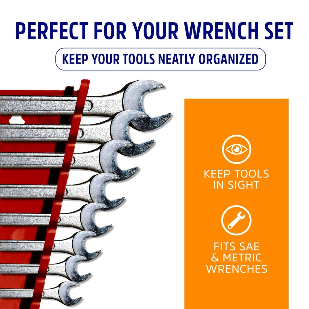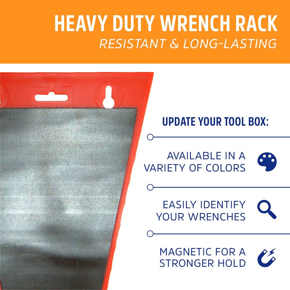 Update your tool box or tool cart and keep your tools organized with 's Wrench Rack (The Original!), avaialable in 12 or 15 piece, standard or reverse. Wall set-up is also an option to keep your wrenches neatly organized. Long gone are the days of looking for a specific-sized wrench at the bottom of your tool box, or going through drawer after drawer of piled up debris. With the Wrench Rack, your tools are within your line of sight, always, making it easy to find the right wrench for the job, no matter what the job might be. Available in a variety of colors, our wrench rack easily adapts to the atmosphere set up in your workplace, seamlessly becoming a part of it. Superior Organization: Keep your tool box organized and stop wasting time searching for the wrench you need; Our 12 or 15 piece wrench holder keeps them all organized and clearly in sight instead of floating around in a drawer, ready to be used when you need them Easily Mounted: This Wrench Rack can also be installed easily, and hanging your tools on the wall keeps them within your line of sight, allowing you to identify the correct wrench for the job at a glance; Save the time that would be wasted hunting for the right tool, and get your projects done faster! Highly Durable: Made from high density plastic material, which provides durability, impact resistance, and longevity; A tool organizer that will be a part of your setup for years to come, backed by quality and Made in the USA! Versatile: Fits both SAE & metric wrenches, and holds wrenches from 1/4" to 1" and 6 mm to 24 mm; Perfect for your current wrench set and for setting up a new as well! It is also designed to fit all of your wrenches in a 1” height drawer in your tool box or cart About : manufactures protective covers, plastic injection molded products, fluidized coated products, coatings, products, and custom packaging, all proudly Made in the USA since 1977