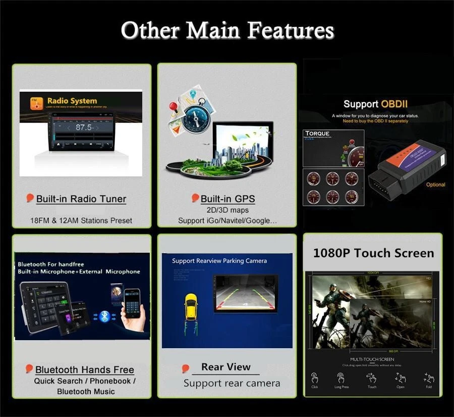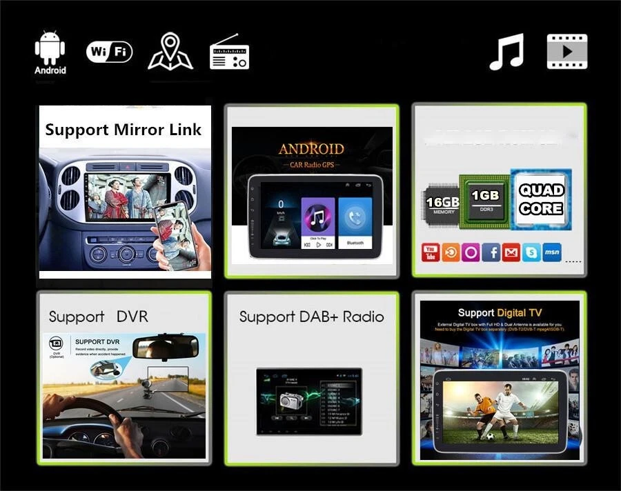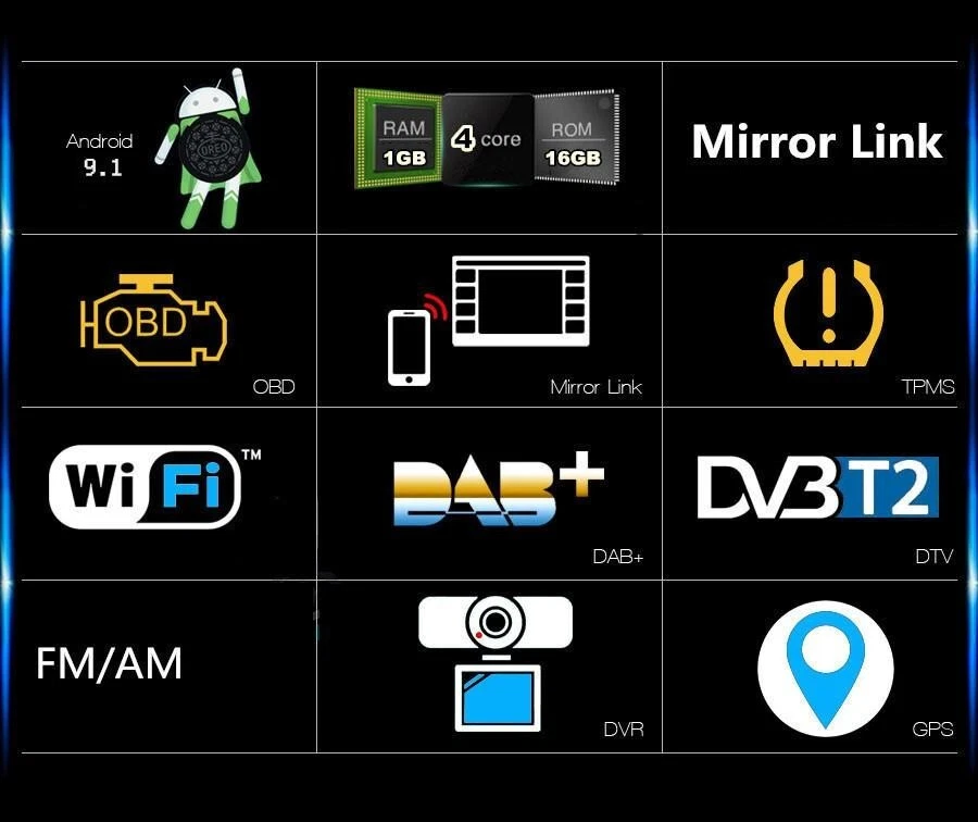 Home Payment Shipping About us Contact us Store Categories Store Categories Other Details 2.5D Touch Screen 10.1in Double 2Din Car Multimedia Player Android 9.1 Auto Radio Stereo Video GPS WiFi MP5 Player 1+16G Specifications Rotatable Double 2Din 10.1" Car Multimedia Player Stereo Android 9.1 with Up Down Left Right Adjustable Screen Wifi bluetooth GPS Nav Radio Player General - Power Supply: DC 12V (allowance range: 9.6V~13.8V) - Max. Current: 10A - Screen Size: 10 inch - Front panel Size: As picture show System - Operation System: Android 9.1 - CPU: Quad Core AC8227L A7 - ROM: 16GB - RAM: 1GB - Extended USB: Support USB Disk up to 32GB Display - Touch Screen: Yes - Resolution: 1024*600 - Capacitive or Resistance Screen: Capacitive - Built-in Clock and Calendar: Yes, show real time and can use network-provided time - Main Menu Status Bar display: Can be changed to Music/Radio/BT-Stereo Player and Clock/Date/Week WiFi/3G/4G - Connector: On the Back - WiFi: Built-in WiFi Modem, support 802.11b/g/n - Supports 4G & 3G Internet Hotspot (4G Dongle and 3G Dongle are not included) Internet - Explorer: Opera, UCWeb, SkyFile, Dolphin and more explorer for your selection - Online Entertainment: Online Video, TV, Movie, Music, Radio, Video Chat - Online Navigation: Online Google Maps Navigating - Online Games: Yes, online play or you can download it from google play store - Online Communication: WeChat, Twitter, Facebook, Skype, Gmail, Whatsapp etc. - Read and edit Office Software: Yes, support Word, Excel, Powerpoint, PDF, TXT Audio - Format: MP3/WMA/MP2/OGG/AAC/MA4/FLAC/APE/WAV etc. Could play via song list - Record: MP3, WMA - Other: LRC synchronized display; ID3 search; Search by files; Album Picture; User-defined audio effect - Audio IC: Top Global Cirrus IC, independent audio decoding - SNR: Noise rations:=90dB Video - Format: Support AVI (H.264, DIVX, XVID), RM, RMVB, MKV (H.264, DIVX, XVID). WMA, MOV, MP4 (H.264, MPEG, DIVX, XVID). DAT (VCD format). VOB (DVD format). PMP, MPEG, MPG. FLV (H.263, H.264). ASF, TS, TP, 3GP, MPG etc. =30 formats, Playing internet video directly (while downloading) - Play: Up to 1920*1080 Pixels, 30Mb. Fluent play without light spot GPS - Support Maps: IGO, Sygic, Google Map etc. - Voice Guidance: Yes - Support 2D/3D Map Views: Yes - Dual Zone: Yes, navigating while music playing - Online Navi: Yes, support google maps online navigating Bluetooth - Hands Free: Yes - A2DP (Bluetooth Stereo Music): Yes, can play stereo music through Bluetooth - Bluetooth Music Control: Yes, play/pause/previous/next - PB-Download: Yes, can download phonebook from mobile to this unit - PB-Search: Yes, can use the first letter to search contact member in PB-Listings - Calling Records: Yes, Dialed Call, Received Call, Missed Call - Setup: Auto Answer, Auto connect, Device name - Built-in Microphone: Yes, on the front panel Radio - FM Tuning Range: 87.5-108MHz - FM Increment: 0.05MHz(EU)/0.1MHz(US) - FM Area: Europe/USA1/USA2/Japan/Russia USB - Position: 2 USB Port, can be connected with Media/Camera/DAB+ Box/Smartphone - Play MP5 Videos: Yes, can play RMVB Videos up to 1080P - Touch Music Title to play directly: Yes DVR - Built-in Car Recorder App: Yes, just connect a USB Camera to use this function - Support HD CCD Camera: Yes - Play recorded Video directly: Yes - Storing Position: Nand Flash/GPS Card/SD Card/USB Storage can be changed DAB(+)-IN - Support(DAB+ BOX NEED TO BUY SEPARATELY) DTV-IN - Built-in Digital TV Tuner: No - External Port for TV Box: Yes, Support DVB-T/DVB-T2/ATSC/ISDB Box - Power Supply to TV Box directly: Yes, you can connect our TV Box to achieve this function - Touch Control the TV Box on unit: Yes, you can connect our TV Box to achieve this function Additional - Textbook: Could change font, font color, background color, bookmark, reading E-book while listening music - Photo Viewer: Support JPS, BMP, PNG, GIF etc. format. play by revolve, Powerpoint Support 4096*4096 Pixels - Wallpapers: live wallpapers, standard wallpapers, support DIY wallpaper from Gallery - APK Installer: Support Android Package installer - Support Torque Pro(OBD2 &Car): Yes, you can connect a Bluetooth OBD2 Scanner Tool to use this function - Support Mirror Link function: Yes, support screen mirroring from iPhone and android smartphone - Support TPMS: YES (Not Included) Setup - WiFi/Hotspot/Bluetooth: Yes - Brightness level adjustable: Yes - Wallpaper: Wallpapers/Live Wallpapers/Gallery - Sound: Key Tone & Volume - Storage: Display Internal Storage/Nand Flash/Connected Device Storage - Apps: Running Apps display/force stop/uninstall - Security: Yes - Accounts: Yes - Languages and Input: more than 70 Languages and choose input method - Backup and Reset: Yes - Date and Time: Setting Date&Time by yourself or choose GPS/network-provided time - Accessibility: Yes - GPS: Yes, GPS application options/monitoring/sound mode/mixing ratio - Driving safety: Watching Video, Reversing X-mirror/Volume, Reversing Trajectory/radar Display, Rear view ruler - Amplifier: Rock/Pop/Jazz/Classic/Flat/Voice/Custom - Steering Wheel Control: Yes - About Device: Display Parameter Info. Input - AUX Video In - Rear-View Camera Video In - AUX Audio In: R/L - DTV Box In - DAB+ Box In - Car DVR In - GPS Antenna In Output - Video Out - Audio Out: LF, LR, RR, RF - Surround Stereo Out: 4*45W Accessories -1 x Car Radio Stereo -1 x GPS Cable -2 x USB Cable -1 x Universal Power Cable -1 x RCA Cable -1 x Camera Input Cable Shipping Policy Payment Method Returns Policy Shipping Policy Payment Method Returns Policy Home Payment Shipping About us Contact us Home Payment Shipping About us Contact us Store Categories Store Categories Other Details 2.5D Touch Screen 10.1in Double 2Din Car Multimedia Player Android 9.1 Auto Radio Stereo Video GPS WiFi MP5 Player 1+16G Specifications Rotatable Double 2Din 10.1" Car Multimedia Player Stereo Android 9.1 with Up Down Left Right Adjustable Screen Wifi bluetooth GPS Nav Radio Player Genera