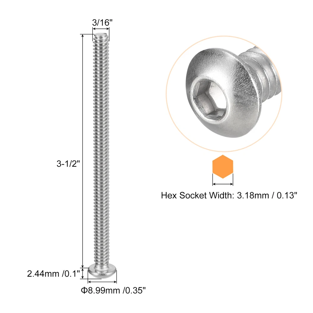 Document Description:1. Material: The button head socket cap screws are made of 304 stainless steel, which provides good corrosion resistance, durability, and long-lasting performance.2. Design: This socket head cap screw features a design with a hexagonal drive hole and a button head that provides better torque transmission and more stable performance.3. Usage Method: To use the hexagon socket head screw, insert the screw into a pre-drilled hole and turn it clockwise using a wrench. The hexagonal drive hole ensures that the drive tool will not slip or strip, providing a reliable and secure connection.4. Application: These hex socket head cap screws are suitable for various applications such as machinery, electronics, construction, and furniture assembly. Its strength, durability, and resistance to corrosion and rust make it good for indoor and outdoor use in harsh environments.Specification:Product Name: Machine Screws BoltsMaterial: 304 Stainless SteelModel:#10-24x3-1/2"Screw Rod Length: 3-1/2"Thread Diameter: 3/16"Hex Socket Width: 3.18mm / 0.13"Screw Head Size: 8.99mm x 2.44mm / 0.35" x 0.1"(Dia. x H)Applicable Wrench: 1/8"Screw Groove Type: Hex SocketPackage Content:20pcsx Button Head Socket Cap Screws #10-24x3-1/2" Button Head Socket Cap Screws, 20pcs 304 Stainless Steel Screws Description: 1. Material: The button head socket cap screws are made of 304 stainless steel, which provides good corrosion resistance, durability, and long-lasting performance. 2. Design: This socket head cap screw features a design with a hexagonal drive hole and a button head that provides better torque transmission and more stable performance. 3. Usage Method: To use the hexagon socket head screw, insert the screw into a pre-drilled hole and turn it clockwise using a wrench. The hexagonal drive hole ensures that the drive tool will not slip or strip, providing a reliable and secure connection. 4. Application: These hex socket head cap screws are suitable for various applications such as machinery, electronics, construction, and furniture assembly. Its strength, durability, and resistance to corrosion and rust make it good for indoor and outdoor use in harsh environments. Specification : Product Name: Machine Screws Bolts Material: 304 Stainless Steel Model:#10-24x3-1/2" Screw Rod Length: 3-1/2" Thread Diameter: 3/16" Hex Socket Width: 3.18mm / 0.13" Screw Head Size: 8.99mm x 2.44mm / 0.35" x 0.1"(Dia. x H) Applicable Wrench: 1/8" Screw Groove Type: Hex Socket Package Content: 20pcsx Button Head Socket Cap Screws Hot Item Payment 1.We accept eBay payment . 2.Payment must be received within 7 business days of auction closing. Shipping 1.We ship to your eBay or Paypal address. Please make sure your eBay and Paypal address is correct before you pay. 2.Items will be shipped within 1-3 business day when we received payment. 3.Delivery time depends on destination and other factors. Description Policy #10-24x3-1/2" Button Head Socket Cap Screws, 20pcs 304 Stainless Steel Screws Description: 1. Material: The button head socket cap screws are made of 304 stainless steel, which provides good corrosion resistance, durability, and long-lasting performance. 2. Design: This socket head cap screw features a design with a hexagonal drive hole and a button head that provides better torque transmission and more stable performance. 3. Usage Method: To use the hexagon socket head screw, insert the screw into a pre-drilled hole and turn it clockwise using a wrench. The hexagonal drive hole ensures that the drive tool will not slip or strip, providing a reliable and secure connection. 4. Application: These hex socket head cap screws are suitable for various applications such as machinery, electronics, construction, and furniture assembly. Its strength, durability, and resistance to corrosion and rust make it good for indoor and outdoor use in harsh environments. Specification : Product Name: Machine Screws Bolts Material: 304 Stainless Steel Model:#10-24x3-1/2" Screw Rod Length: 3-1/2" Thread Diameter: 3/16" Hex Socket Width: 3.18mm / 0.13" Screw Head Size: 8.99mm x 2.44mm / 0.35" x 0.1"(Dia. x H) Applicable Wrench: 1/8" Screw Groove Type: Hex Socket Package Content: 20pcsx Button Head Socket Cap Screws Hot Item Payment 1.We accept eBay payment . 2.Payment must be received within 7 business days of auction closing. Shipping 1.We ship to your eBay or Paypal address. Please make sure your eBay and Paypal address is correct before you pay. 2.Items will be shipped within 1-3 business day when we received payment. 3.Delivery time depends on destination and other factors.