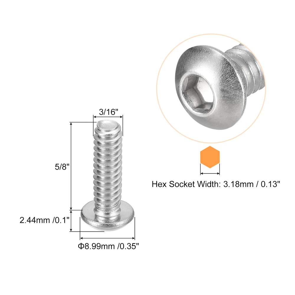 Document Description:1. Material: The button head socket cap screws are made of 304 stainless steel, which provides good corrosion resistance, durability, and long-lasting performance.2. Design: This socket head cap screw features a design with a hexagonal drive hole and a button head that provides better torque transmission and more stable performance.3. Usage Method: To use the hexagon socket head screw, insert the screw into a pre-drilled hole and turn it clockwise using a wrench. The hexagonal drive hole ensures that the drive tool will not slip or strip, providing a reliable and secure connection.4. Application: These hex socket head cap screws are suitable for various applications such as machinery, electronics, construction, and furniture assembly. Its strength, durability, and resistance to corrosion and rust make it good for indoor and outdoor use in harsh environments.Specification:Product Name: Machine Screws BoltsMaterial: 304 Stainless SteelModel:#10-24x5/8"Screw Rod Length: 5/8"Thread Diameter: 3/16"Hex Socket Width: 3.18mm / 0.13"Screw Head Size: 8.99mm x 2.44mm / 0.35" x 0.1"(Dia. x H)Applicable Wrench: 1/8"Screw Groove Type: Hex SocketPackage Content:50pcsx Button Head Socket Cap Screws #10-24x5/8" Button Head Socket Cap Screws, 50pcs 304 Stainless Steel Screws Description: 1. Material: The button head socket cap screws are made of 304 stainless steel, which provides good corrosion resistance, durability, and long-lasting performance. 2. Design: This socket head cap screw features a design with a hexagonal drive hole and a button head that provides better torque transmission and more stable performance. 3. Usage Method: To use the hexagon socket head screw, insert the screw into a pre-drilled hole and turn it clockwise using a wrench. The hexagonal drive hole ensures that the drive tool will not slip or strip, providing a reliable and secure connection. 4. Application: These hex socket head cap screws are suitable for various applications such as machinery, electronics, construction, and furniture assembly. Its strength, durability, and resistance to corrosion and rust make it good for indoor and outdoor use in harsh environments. Specification : Product Name: Machine Screws Bolts Material: 304 Stainless Steel Model:#10-24x5/8" Screw Rod Length: 5/8" Thread Diameter: 3/16" Hex Socket Width: 3.18mm / 0.13" Screw Head Size: 8.99mm x 2.44mm / 0.35" x 0.1"(Dia. x H) Applicable Wrench: 1/8" Screw Groove Type: Hex Socket Package Content: 50pcsx Button Head Socket Cap Screws Hot Item Payment 1.We accept eBay payment . 2.Payment must be received within 7 business days of auction closing. Shipping 1.We ship to your eBay or Paypal address. Please make sure your eBay and Paypal address is correct before you pay. 2.Items will be shipped within 1-3 business day when we received payment. 3.Delivery time depends on destination and other factors. Description Policy #10-24x5/8" Button Head Socket Cap Screws, 50pcs 304 Stainless Steel Screws Description: 1. Material: The button head socket cap screws are made of 304 stainless steel, which provides good corrosion resistance, durability, and long-lasting performance. 2. Design: This socket head cap screw features a design with a hexagonal drive hole and a button head that provides better torque transmission and more stable performance. 3. Usage Method: To use the hexagon socket head screw, insert the screw into a pre-drilled hole and turn it clockwise using a wrench. The hexagonal drive hole ensures that the drive tool will not slip or strip, providing a reliable and secure connection. 4. Application: These hex socket head cap screws are suitable for various applications such as machinery, electronics, construction, and furniture assembly. Its strength, durability, and resistance to corrosion and rust make it good for indoor and outdoor use in harsh environments. Specification : Product Name: Machine Screws Bolts Material: 304 Stainless Steel Model:#10-24x5/8" Screw Rod Length: 5/8" Thread Diameter: 3/16" Hex Socket Width: 3.18mm / 0.13" Screw Head Size: 8.99mm x 2.44mm / 0.35" x 0.1"(Dia. x H) Applicable Wrench: 1/8" Screw Groove Type: Hex Socket Package Content: 50pcsx Button Head Socket Cap Screws Hot Item Payment 1.We accept eBay payment . 2.Payment must be received within 7 business days of auction closing. Shipping 1.We ship to your eBay or Paypal address. Please make sure your eBay and Paypal address is correct before you pay. 2.Items will be shipped within 1-3 business day when we received payment. 3.Delivery time depends on destination and other factors.