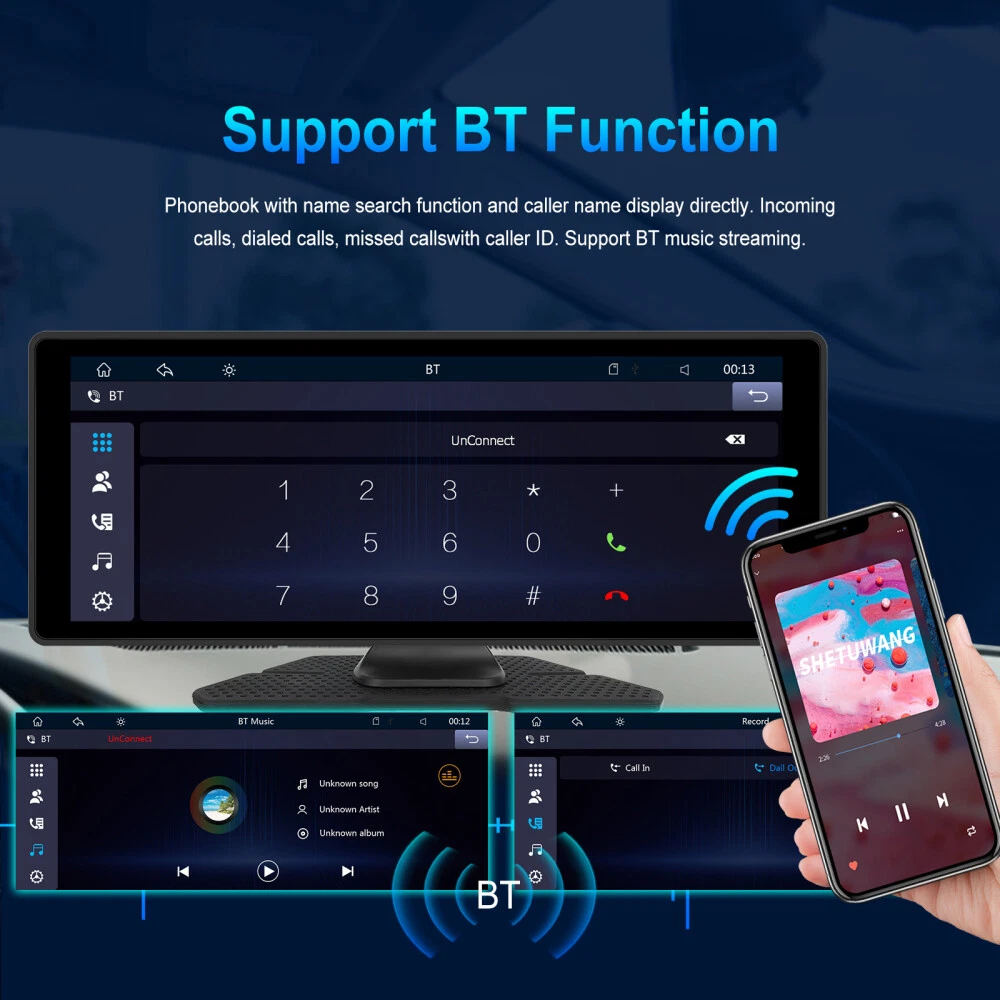 10.26" Touch Screen Wireless Apple Carplay Portable Car Stereo Android Auto Description Description: The 10.26-inch high-resolution screen has good display effect, bright colors and delicate picture texture. Support wired/wireless Apple CarPlay function, can connect to the host through mobile phone Bluetooth and WiFi and use iPhone CarPlay function. You can view navigation, listen to songs, etc. through CarPlay Support the wired/wireless Android AUTO function, you can connect to the host through the Bluetooth and WiFi of the mobile phone and use the AUTO function of the Android mobile phone. FM transmitter function, through this function, you can transmit the music or other sound of the host to the original car audio system. AUX cable connection is also supported With card reading function, insert the memory card into the host to watch the videos stored in the card. With Airplay, Phonelink and other screen projection software, support for iPhone and Android phone screen projection. A camera can be inserted as a back-up or blind zone camera to increase driving safety. connect mobile phone Bluetooth can use Bluetooth music and Bluetooth phone 10.26 Inches Smart Player Screen : HD 1600*600 Language:Chinese/English/French/German/Italian/Japanese/Portuguese/Russian/Spanish/Polish/Turkish/Korean, etc Voltage: 7-32V Camera System: P AL /NTSC Camera: CVBS Installation method: Vertical stand/Sucker support Operating temperature: :-4~149 ℉ Intelligent interconnection: support IOS CarPlay/Android Auto/Bluetooth music/FM transmission/Airplay/Phonelink/FM transmitter Cooling method: Passive cooling Reset: Support Firmware version: Support CarPlay:wired/wireless Android Auto:wired/wireless iPhone/Android phone cast:support wired connection SD card: Supports local audio playback USB port: Supports local audio playback Wallpaper Replacement: Supported FM emission: Support (FM 87.5-108) Bluetooth: Support Bluetooth music, Bluetooth call, address book EQ: Support Reversing sound mute: Switch Mirror: Flip left and right, flip up and down Driving video: Switch Touch calibration: Support Display Settings: Supported Time setting: Supported BT for CarPlay:Supported Screen save: off/10s/30s/1 min/5 min/10 min/30 min Package included : 10.26 Inches Smart Screen Player Universal Mount*2 User Manual Cigarette lighter (1M) AUX cable Camera adapter Accessories Payment Shipping Returns Contact Us 1. Only accept Paypal 2. All major credit cards are accepted through our secure payment processor PayPal. 3. We ship to your Paypal address. Please make sure your Paypal address is correct before you pay. Please make sure your eBay shipping address is correct for your receiving. We will try our best to solve any dispute and try our best to satisfy you. If you are not satisfied with our product, please contact first . Please contact us in time if any enquriy under any circumstances. We greatly appreciate your positive feedback and we'll do the same to you.