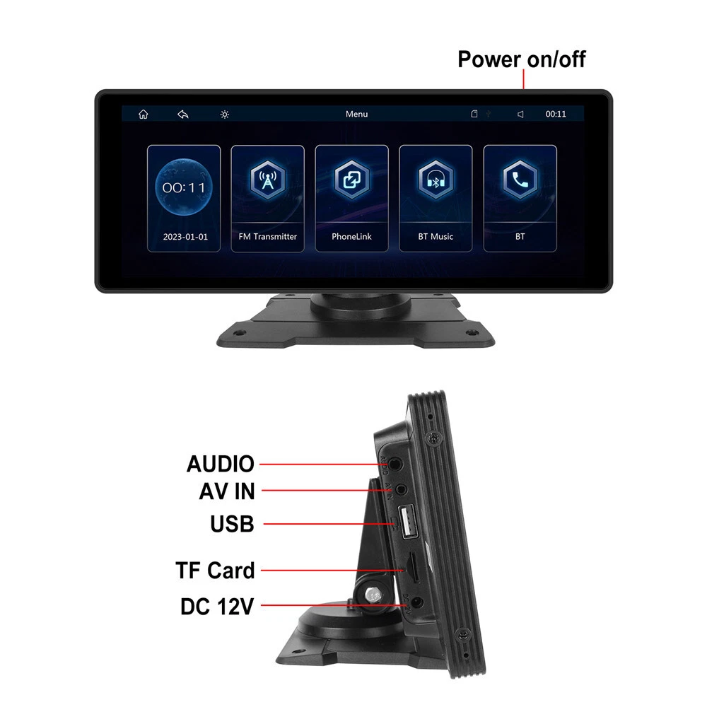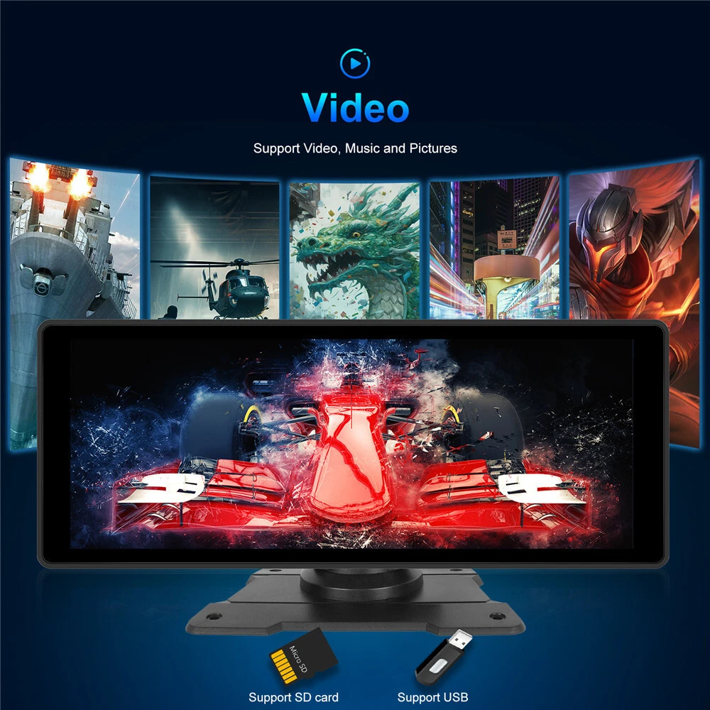Product Description 10.26in Car Multimedia Player Monitor Touch Screen Bluetooth FM Radio Wifi Support For Wireless Carplay Android Auto Add our listing to Watchlist Or Add to Cart , you will get more discount Description: The 10.26-inch high-resolution screen has good display effect, bright colors and delicate picture texture. Support wired/wireless Apple CarPlay function, can connect to the host through mobile phone Bluetooth and WiFi and use iPhone CarPlay function. You can view navigation, listen to songs, etc. through CarPlay Support the wired/wireless Android AUTO function, you can connect to the host through the Bluetooth and WiFi of the mobile phone and use the AUTO function of the Android mobile phone. FM transmitter function, through this function, you can transmit the music or other sound of the host to the original car audio system. AUX cable connection is also supported With card reading function, insert the memory card into the host to watch the videos stored in the card. With Airplay, Phonelink and other screen projection software, support for iPhone and Android phone screen projection. A camera can be inserted as a back-up or blind zone camera to increase driving safety. (Camera not include) connect mobile phone Bluetooth can use Bluetooth music and Bluetooth phone 10.26 Inches Smart Player Screen: HD 1600*600 Language:Chinese/English/French/German/Italian/Japanese/Portuguese/Russian/Spanish/Polish/Turkish/Korean, etc Voltage: 7-32V Installation method: Vertical stand/Sucker support Operating temperature: :-4~149 ℉ Intelligent interconnection: support IOS CarPlay/Android Auto/Bluetooth music/FM transmission/Airplay/Phonelink/FM transmitter Cooling method: Passive cooling Reset: Support Firmware version: Support CarPlay:wired/wireless Android Auto:wired/wireless iPhone/Android phone cast:support wired connection SD card: Supports local audio playback USB port: Supports local audio playback Wallpaper Replacement: Supported FM emission: Support (FM 87.5-108) Bluetooth: Support Bluetooth music, Bluetooth call, address book EQ: Support Reversing sound mute: Switch Mirror: Flip left and right, flip up and down Driving video: Switch Touch calibration: Support Display Settings: Supported Time setting: Supported BT for CarPlay:Supported Screen save: off/10s/30s/1 min/5 min/10 min/30 min Package included: 10.26 Inches Smart Screen Player Universal Mount*2 User Manual Cigarette lighter (1M) AUX cable Camera adapter Accessories Payment Returns Contact Us Shipping We accept payment by PayPal only ! Payment should be completed within 5 days after buyer places the order,or else an unpaid case will be opened in order to cancel the transaction. If you can not pay in time, please contact us. e-check from PayPal will only be processed once the payment clears. All of the items will be shipped to buyer's EBAY address,please confirm your address on Ebay before you buy.Your order will be usually shipped out the same or next business days once the payment is made and cleared. 30-day Warranty with Exchange for defective, malfunctioned, incorrect or parts-missing items. Please notify us and return the item with all parts and accessories packed and marked "FOR EXCHANGE" within 14 days of receipt. If defective, malfunctioned or parts-missing items are no longer available, a refund may be issued. All returning postage costs will be the responsibility of the buyers under all circumstances. If you encounter any problems about anything, please feel free to contact us and we will do our best to assist you solve the issue. If you are not satisfied in anyway, please feel free to let us know and give us a second chance to correct it before you decide to leave any neutral or negative feedback. Please contact us through eBay link if you have any questions. We will reply you within 24- 48 hours. Please check you spam mail if no response for 48 hours. All items will be checked before packing. All items are new and of high quality. Item will be shipped within 1 business days upon receipt of payment, excluding weekends and public holidays. If to USA,we will ship your order by USPS,it will take about 8-12 working days to you,and you can track it on line. If to other country,we will ship your order by China Post or Singapore Registered Air Mail,it will take about 14-21 working days to you,you aslo can track it on line. Delivery time is about 14-28 business days and it may take up to 8 weeks . Payment We accept payment by PayPal only ! Payment should be completed within 7 days after buyer places the order,or else an unpaid case will be opened in order to cancel the transaction. If you can not pay in time, please contact us. eCHECK from PayPal will only be processed once the payment clears. All of the items will be shipped to buyer's EBAY address,please confirm your address on Ebay before you buy.Your order will be usually shipped out the same or next business days once the payment is made and cleared. Returns 30-day Warranty with Exchange for defective, malfunctioned, incorrect or parts-missing items. Please notify us and return the item with all parts and accessories packed and marked "FOR EXCHANGE" within 14 days of receipt. If defective, malfunctioned or parts-missing items are no longer available, a refund may be issued. All returning postage costs will be the responsibility of the buyers under all circumstances. Contact Us If you encounter any problems about anything, please feel free to contact us and we will do our best to assist you solve the issue. If you are not satisfied in anyway, please feel free to let us know and give us a second chance to correct it before you decide to leave any neutral or negative feedback. Please contact us through eBay link if you have any questions. We will reply you within 24- 48 hours. Please check you spam mail if no response for 48 hours. Shipping All items will be checked before packing. All items are new and of high quality. Item will be shipped within 1 business days up