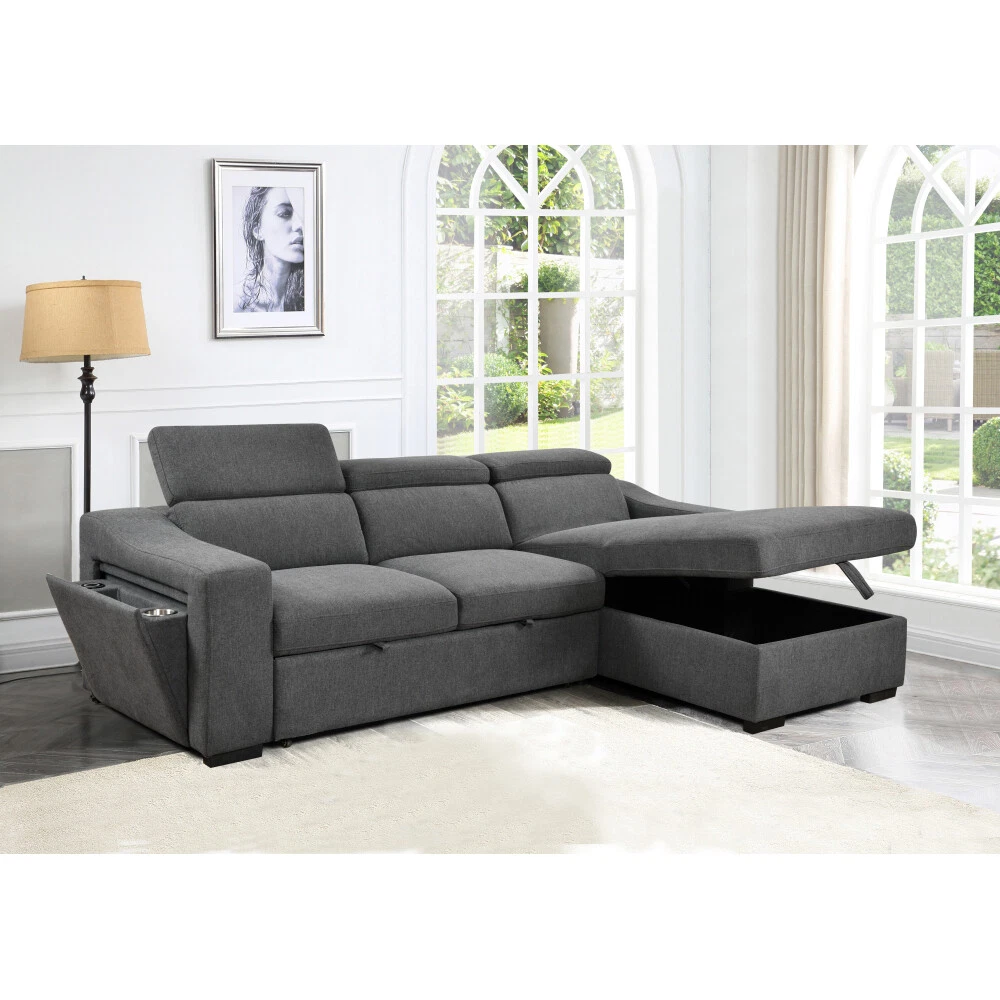 【Convertible L-shaped design】When you nap or watch TV, your feet can also enjoy ultimate relaxation due to this L-shaped design.You won't need any other ottoman! perfectly matching various scenes and usage needs. 【Durable and Comfortable Materials】Equipped with soft fabric,solid wooden frame, high density sponge and springs,this sectional sofa can easily support 2100 lbs, providing a soft and comfortable experience and fast rebound, can be used for a long time without deformation, and you will not feel tired even after sitting for extended periods of time. 【Multifunction Sofabed】Sofa bed with Wirelessly Charged & cup holder & storage Sofa Chaise, give you extra storage space,storage chaise offer convenient space for putting small items like your blankets, magazines, pillows,well save your space and keep the living room clean. 【Adjustable Headrest】Functional headrests 6 Clicks Headrests bring you all kinds of comfort and support, comfortable waist pillow Just to give you a better feeling; Sleeper bed mechanism ; Strong ,safe and easily pull out ; As a couch, it fits in home office/guest room perfectly. Pull out sofa bed There is hidden bed under the sofa, it can be easily changed the sofa into a sleeper bed, easy to pull out and push in by the straps.It provides additional space for guests or sleepovers to sit or sleep, very comfortable to sleep on everyday as a bed On Mar 7, 2025 at 02:47:49 PST, seller added the following information: