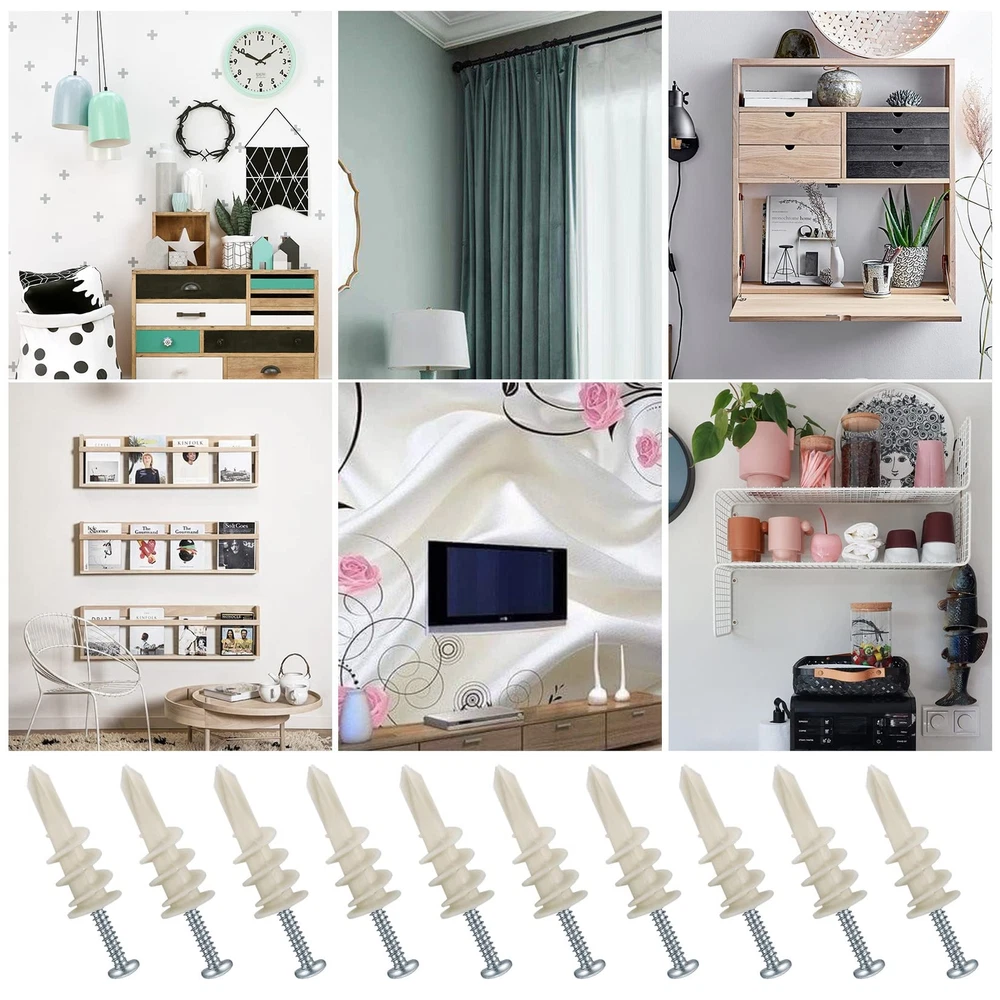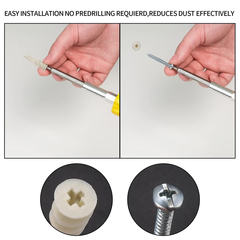 Product Information: - Product Name: Wall Anchors and Screws for Drywall - Material: Nylon, Stainless Steel - Quantity: 104 Pcs Package includes: 52 Pcs 1.6"×0.5" Self-Drilling Threaded Drywall Anchors 52 Pcs #8×1-1/4" Cross Head Screws 1 - Plastic Storage Organizer Box Features: - The wall anchors are made of high quality plastic nylon material, which are wear resistant, and durable for long time use. - The cross head self tapping screws are made of outstanding stainless steel mateial, which are sturdy, and not easy to break. - Deep thread design can provide a secure hold and pull-out resistant grip of the wall anchor and screw kit. - Once the wall anchor is in the wall, the screw is inserted, the drywall anchors will wedge tightly against the drywall. - Great for hanging light fixtures, mirrors, clocks, picture frames in drywall, etc. Warm tips: - Please wear gloves to protect your hands. - If you have any questions about using the drywall anchors and screws, please feel free to contact us. We will solve your questions as soon as possible. Premium Material: The wall anchors and screws for drywall are made of outstanding nylon and metal material with high strength, which are corrosion resistance and rust resistance, not easy to crack or break, sturdy, and durable for long time use, plastic anchors can easily be removed can be reuse. Easy to Install: Mark your hanging point; With a hammer lightly tap the anchor into the wall until you get to the threads; Use a screwdriver to screw the anchor into the wall until the head of the anchor is flush with the drywall; Insert the provided screw into the center of the anchor and attach your object. Practical Design: The finely threaded design provides a secure hold and pull-out-proof grip for wall anchors and screw sets. Once the screw anchor is in the drywall, the anchor will wedge tightly without damaging the wall. The wall anchor will not split easily. Wide Applications: Screw and anchor kits are ideal for hanging bathroom and kitchen accessories, shelves, lamps, mirrors, TVs, curtain rods, small decorations, picture frames, etc. on various walls such as drywall, plasterboard, and many more. Package Includes: You will receive 52 pcs 1.6"×0.5" self-drilling drywall anchors, 52 pcs #8×1-1/4" cross head screws, and 1 xplastic storage organizer box, which is easy and enough for daily use, and easy to use, find, and carry.