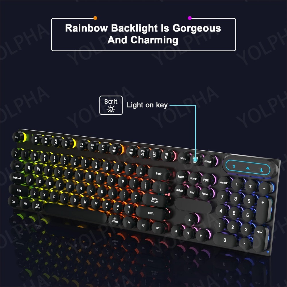 The YOLPHA 104Keys Wired Keyboard is perfect for gaming enthusiasts looking for a high-performance keyboard with RGB backlit breathing lights. This gaming keyboard offers a comfortable and ergonomic design, allowing for hours of gameplay without discomfort. The wired connectivity ensures a stable and reliable connection for uninterrupted gaming sessions. The multi-color backlighting adds a stylish touch to your gaming setup, making it stand out from the rest. Ideal for those who are serious about their gaming experience, this keyboard is a must-have for any gamer seeking top-notch performance.