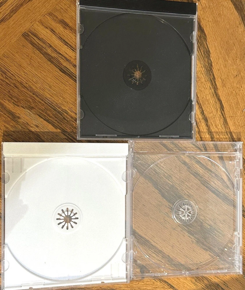 EXCELLENT LIKE NEW CONDITION NO SCRATCHES OR CRACKS SEALED with CDS and ART We now offer these same cases but sealed with CDs, since that saves us labor (we dont have to open the cases) . So if you order you will get Brand New Sealed CDs various titles (NO CHOICE ON TITLES) then when you receive them you can open them and re-use the empty cases, this saves up the labor because we dont have to open the cases. In this listing we dont specify the color, you will receive CD cases with assorted White, clear and Black color If you require one specific color please message me before ordering and we will create a listing for your specific needs