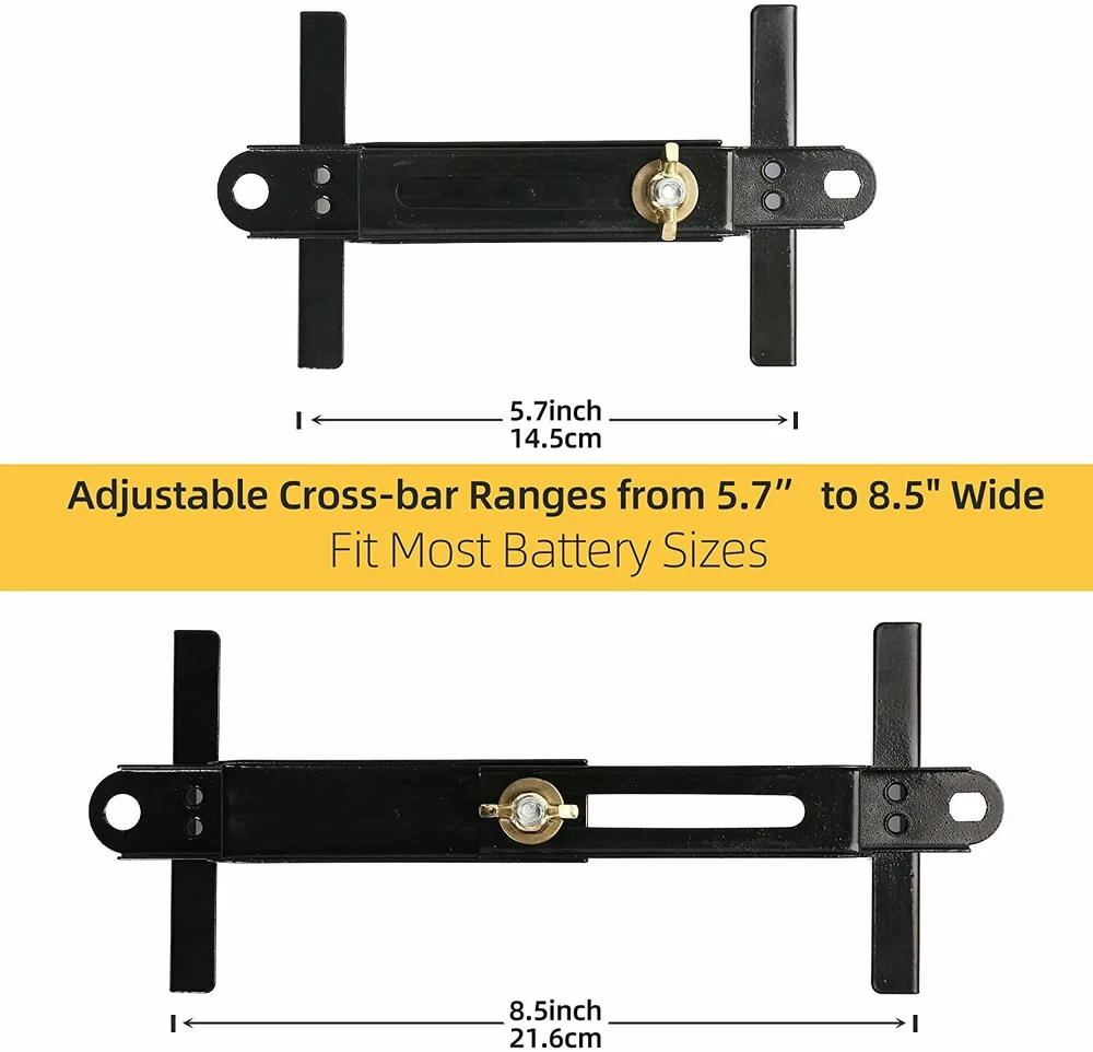 10.6'' 27 CM Adjustable Car Crossbar Battery Hold Down Bracket Holder Storage Product Description Specifications Material Adjustable holder: Steel / Black Bolt & Nut: Stainless Steel / Silver L-Bolt Size: L 10.6 in x 5/16 in ( 27cm x 8mm ) Weight: Approx.: 0.75 lb / 340g Adjustable width:6in/15cm to 9in/23cm Adjustable length:8in/20cm to 10.6in/27cm About Us Returns Policy Payment Contact Us About Us 1.Thanks for purchasing in our store,if you have any questions, please contact us immediately. We will provide you with the high quality service. 2.If you are satisfied with our products and service, please give us a positive feedback,thanks. 3.We do our best to resolve any issue. Leaving negative feedbacks and low ratings doesn't get things solved. So please talk with us and we will not let you down. Returns Policy 1. All of our items come with a return policy . In the event that you receive the item that is not to the standards above, please contact us via e-Bay messages. All returns must be in new original condition as received and should be shipped with delivery confirmation. 2. If you need to return, please check twice to confirm the item not work and contact our customer service representative, let us know the detailed problem and send us some pictures for confirmation. 3.If you don't return goods within 60 days from date of purchase, your right to cancel will be revoked. Any items damaged because of incorrect installation will not be refunded. Please contact us for return or troubleshooting help prior to returning any products. Payment 1.We accept all payment methods supported by eBay, including major credit cards, PayPal, and Google Pay. You can choose the payment method that is most convenient for you during checkout. Please pay attention that import duties, taxes and charges are not included in the item price or shipping charges. 2.We appreciate a positive feedback as much as you do. If for some reason there is any issue with the purchase, please contact us prior to leaving feedback, and we will be glad to work with you to have it resolved. 3. Please check your address information carefully before payment. If you need to change it, please leave me a message. Contact Us We will reply every message and solve the problem within 24 hours (except holiday). If you have any problem or concerns whatever with your order or products, please mail us and give us a chance to assist you before leaving any feedback. We maintain high standards of excellence POSTIVE FEEDBACK and strive for 100% customer satisfaction! Feedback is very important to us. We request that you contact us immediately BEFORE you give us neutral or negative feedback, so that we can satisfactorily address your concern. Copyright © 2021 Dianxiaomi
