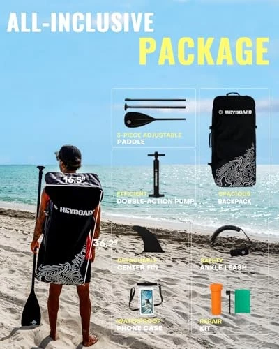 This inflatable SUP is a game-changer! The military-grade material makes it super durable yet lightweight, and the double-layer rails add extra strength. The non-slip deck keeps me steady, while the included premium accessories (paddle, pump, backpack) make it a complete package. Super stable and easy to maneuver—perfect for beginners and pros alike. Fast shipping and a trusted seller seal the deal. Highly recommend for anyone who loves hassle-free water adventures!