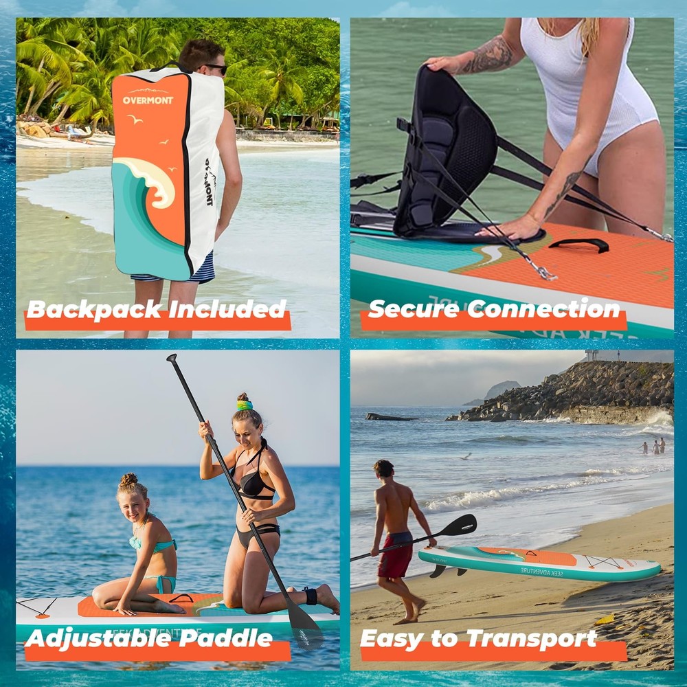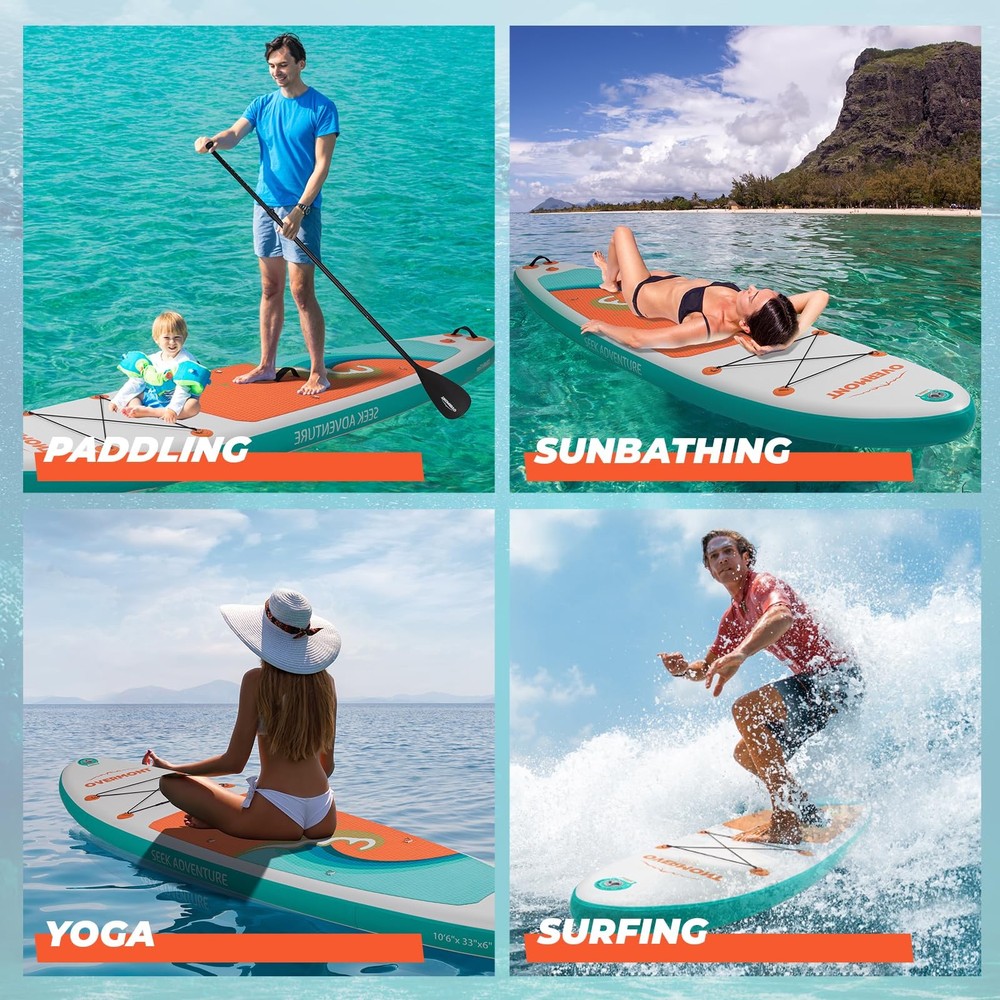 Introducing our latest innovation: Inflatable Paddle Board! Get ready to embark on your next aquatic adventure with ease and style. Crafted with premium materials and cutting-edge technology, our inflatable paddle board offers unparalleled convenience and performance on the water. Designed for adventurers of all levels, from youth beginners to experienced paddlers adults, our paddle board is lightweight, portable, and easy to inflate and deflate. Whether you're exploring tranquil lakes, riding waves in the ocean, or navigating winding rivers, our inflatable paddle board is your ultimate companion. Featuring a non-slip deck for added stability and comfort, along with a durable construction that can withstand the rigors of your outdoor excursions, our paddle board ensures a smooth and enjoyable ride every time. Plus, with its compact design, you can easily transport and store it wherever your adventures take you. Join the paddle boarding revolution and experience the freedom of exploring the water like never before. 【Enjoy the Water with Confidence】Crafted with premium PVC materials and cutting-edge technology that is absolutely stronger and durable than other sup boards, inflatable paddle board ensures lasting durability&reliability, and offers unparalleled convenience and performance on the water,making it the ideal choice for both novice and experienced paddlers seeking a board they can trust. 【Unmatched Stability】Backed by rigorous testing and quality assurance, our inflatable SUP meets industry standards for performance and safety. With a weight limit of 320 pounds, you can trust that our paddleboard offers the stability and resilience needed to navigate different water conditions with ease. 【Fun for Everyone】Whether you're a seasoned paddler or a beginner discovering the joys of stand-up paddleboarding, our inflatable SUP is your perfect companion. Its generous weight limit means it can adapt to various body types and skill levels, making it an excellent choice for individuals and families alike. 【Easy Portability】Inflate, deflate, and hit the water in minutes with our convenient inflatable design. Compact and lightweight when deflated, our SUP is easy to transport, allowing you to explore new waterways effortlessly. 【Order with Confidence】Join countless satisfied customers who have experienced the thrill of paddleboarding with our reliable and versatile inflatable SUP. Our paddle boards come with a 30-day return policy and a complimentary 3-year warranty, guaranteeing your satisfaction. Any concerns with SUP, please reach out to us without hesitation. 【Ready to Dive In】- Get ready to hit the water with 's inflatable paddle board, featuring all essential accessories for instant enjoyment. The package comprises 1 adjustable paddle, 3 detachable fins, 1 safety leash, 1 pump, 1 sup backpack, 1 waterproof phone bag, 1 repair kit, and comprehensive product instruction.
