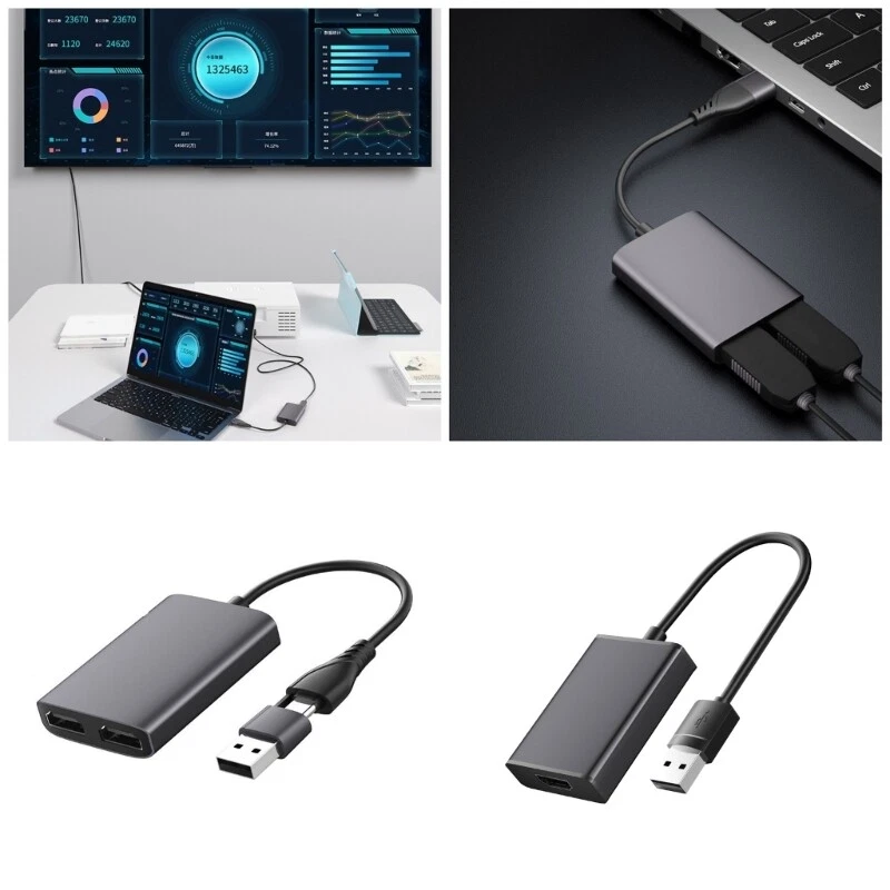 1080P Double Monitors Dispay USB to Double 1080P Adapter Highly Resolution Features: Synchronization of video and auditory, more colorful big screen, new upgraded technology. Support 1080P highly resolution support auditory and video synchronization transmission, watching movies / office more enjoyable. Highly second cast plug and play devices can be to realize the casting of the screen easy to operate. The first connection needs to install the driver. Easy to to the big screen office more convenient planning/meeting fast screen casting, more convenient speech Stable and smooth,easy and comfortable big screen experience. Stable and smooth transmission Specifications: Size:As Pictures Support Single /Double 1080P Port Connection:USB+TypeC Package Includes: 1PC USB Adapter note: Due to the different monitors and light effect, the actual color the item might be slightly different from the color showed on the pictures. Thank you! Please allow 1-2cm measuring difference due to manual measurement.