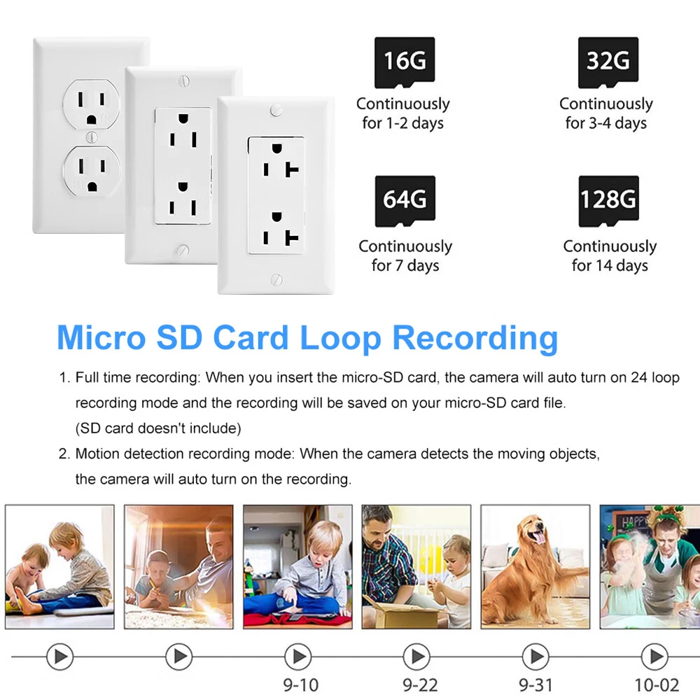 1080P HD WiFi IP Wall AC Outlet Home Security Nanny Camera Audio Video Recorder