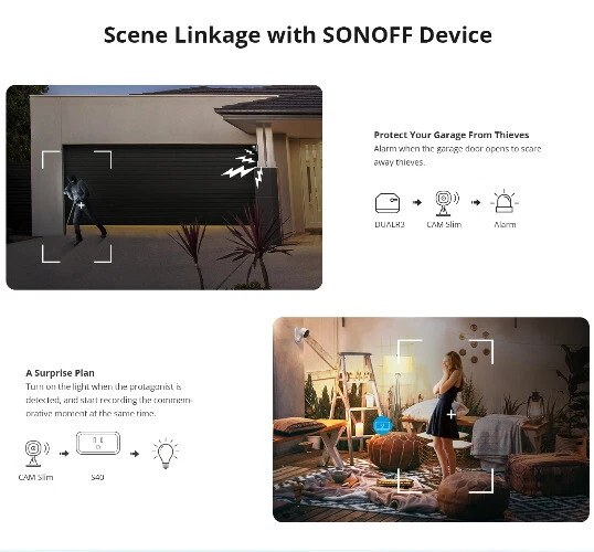 1080P HD Wi-Fi IOT Camera CAM Slim Smart Home Security Motion Detection Alarm Scene Linkage via eWeLink Alexa Google Want to monitor your home through your phone when away home? Wanna see your family, or pets and talk to them directly from your room? SONOFF CAM Slim smart home security camera is what you needed. SONOFF CAM Slim smart home security camera offers 1080P HD resolution, night vision, motion detection & alarm to keep your home in a secure environment, day and night. Start recording as an executive action, CAM Slim starts recording as soon as the door opens to supervise your bedroom. RTSP protocol allows you to view the monitoring screen on your PC. Two-way audio always lets you communicate with pets, and family anywhere, anytime. CAM Slim supports max. 256G Micro SD card storage and mass cloud storage. Flexible and Easy Design provides you with many installation method choices, like magnetic mount, stick, and screw mount, you can also mount on tripods that screw 1/4 inch. NOTE: CAM Slim does not contain an adaptor. If you need the adaptor, please choose the set with adaptor. There are 4 type USB Adaptors to be chosen. Please confirm before purchase! Never Miss a Moment Respond to Anyone, Anywhere Higher call quality lets you chat with pets, family, visitors by the built-in speaker and microphone. Focus on Key Events There’s a video when motion is detected, every event record up to 5 min, capture the key moment for you. Motion Alarm in Specific Periods Set the effective period of the alarm to reduce unnecessary alarms during low peak periods. View Monitoring Screen on PC RTSP protocol allows you to view the monitoring screen on your PC. Scene Linkage with SONOFF Device More Storage Choices Local Storage: Micro SD card storage(maximum support 256G) Combine SONOFF Device For a Safer Home The plug S26 has bound the camera, when receives the notification such as S26 is turned on, click on the S26 to see what happened. Capture All Action Start recording as an executive action, start recording as soon as the door opens to supervise your storage room. Work Seamlessly With Alexa and Google Assistant View any room on Alexa or Google Assistant device with a screen. Flexible and Easy Design Payment Delivery details Returns Contact Us Feedback Payment 1.We accept PayPal only. 2.Payment must be received within 7 business days of auction closing. 3.We ship to your eBay or Paypal address. Please make sure your eBay and Paypal address is correct before you pay. Delivery details We try our best to ship out same day for payment cleared before 5.00 PM (Pacific Time) , Order placed on weekend or holiday will be shipped on Monday or next working day. Below is the approximate delivery time to different countries (just estimated, not guaranteed): 7-25 working days to buyer in USA. Returns 1.We offer 30 days return policy. Please contact us within 30 days from the date you receive your order if you have any issues with the product and want to return. 2.All items must be returned in the original packaging and you must provide us with the tracking shipping number, specific reason for the return, and your eBay ID. 3.We will refund you FULL WINNING BID AMOUNT, upon receipt of the item in its original condition and packaging with all components and accessories included, AFTER BOTH Buyer and Seller cancel the eBay transaction. Or, you can choose to get a replacement. Contact Us All communication is done through EBAY MESSAGES ONLY. If any question, please feel free to contact us via "Ask seller a question" or "Contact Seller",We try our best to reply to your emails as soon as possible, due to high volume of daily incoming emails and time zone difference, we may not be able to reply your emails immediately. Please allow 1-2 business days for us to response. Feedback Feedbacks: When you receive the item and satisfied with the product, please leave us positive feedback. If for any reason you are not satisfied with your purchase from us, please contact so we can get to work and resolve this issue for you. Please don't leave neutral or negative feedback without giving us an opportunity to try and make it right. Our goal is to ensure a happy shopping experience with us. Your Positive feedback is very much appreciated!