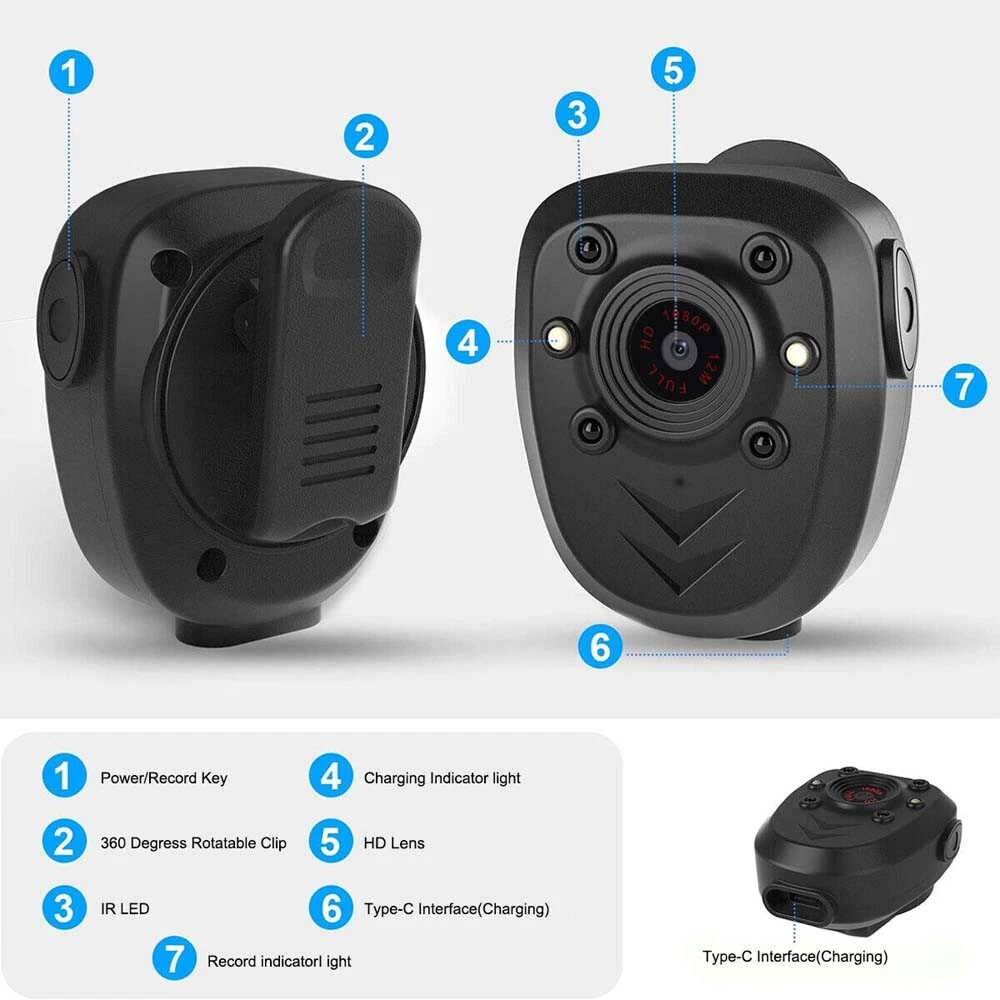 Top Quality Bright Fire electric torch flame Lighter Brightfire Rechargeable 16.99 USD 130000 RPM Super Power Violent Turbo Fan Brushless High Speed Motor Turbo Blower 34.26 USD Electric Lighter Waterproof Windproof Double Arc Plasma Lighter Adjustable Flame 9.99 USD Red/Green Compact Laser Sight for Pistols Handgun USB Rechargeable Upgraded 13.47 USD Classic Rimless Compact Reading Glasses Readers Travel Slim Design with Case 6.39 USD 50ML Savagery Pheromone Men Perfume, Pheromone Cologne for Men Attract Women 10.99 USD USB Rechargeable Waterproof Electric Lighter Dual Arc Plasma Flameless Windproof 11.99 USD Rifle Scope Cover Medium Neoprene Protect Bag Sight Guards Telescope Protector 6.97 USD Lighter Rechargeable Torch Windproof Straight Torch Blue Flame Turbine Fire 9.99 USD 4 Pcs 433MHz Universal Cloning Remote Control Key Fob Electric Gate Garage Door 11.99 USD MP4/MP3 Player Support 128GB Bluetooth Lossless Music FM Radio Recorder Sport 20.9 USD Type C Wired Headphones In-ear Headset Earphones w/Mic For Samsung& IPhone LOT 7.49 USD Refillable Perfume Atomiser 5 ml Spray Pump Portable Bottles Ideal for Travel 8.29 USD Men Natural Penis Enlarger & Penis Growth Faster Enhancement Enlargement Oil 8.99 USD Penis Pump Power Vacuum For Men Man Big Dick Growth Male Enlarger Enlargement 4.99 USD Sexy Women Lingerie Babydoll Sleepwear Underwear Lace Dress G-String Nightwear 7.15 USD Product Description HD1080P Mini Body Camera Video Wearable Police Body Cam with Night Vision NEW ✔️Features: 1.Loop Recording & 16GB Large Memory: Built-in 16GB storage allows for hours of footage without worrying about running out of space. 2.Easy To Use: Easy to operate, one-click=record, double-click=night vision on/off . The pocket body camera has only one button for video/night vision. When the capacity of the memory card is less than 400MB, the oldest video will be deleted to make room for saving new video, so you do not need to worry that the SD card is full to stop recording. 3.Long Battery Life Powerful: Mi body camera comes with a built-in high-quality 800mAh rechargeable battery, which can provide 4-6 hours of video recording. It supports charging while recording, you can plug the body camera into the portable power bank 4.Mini Camera Size: This full-HD mini body-worn camera offers great security throughout your upcoming shifts as a security guard, police officer, or Bouncer. It is designed with an awesome 360 degrees rotatable bracket, which is easy to use almost anywhere, no matter at home, in the office, in the warehouse, in the classroom, in the corner of the backyard, in the store, or even a mini car camera or a mini aerial camera. 5.1080P HD, Night Vision: 1080P HD Recording, This body camera equipped with High-Intensity infrared LEDs, also captures clear footage up to 20 feet away in pitch-black darkness. ✔️Specification: Video Recording Lens: 90-degree Viewing Bulit-in 800mah Battery , 4-6 hours recording Built-in 32GB Memory Card 4pcs IR LEDs, for Night Vision (it also needs some light to use ) Type-C interface 360° Rotatable Clip Video Format: AVI Video Coding M-JPEG Standby Time: About 6 hours Working Duration: About 4 hours ✔️Night Vision: 360 Degrees Rotatable Clip Mini size Long Battery Life Easy to use BODY CAMERA Payment Returns Contact Us Shipping Feedback 1. We only accept eBay payments. 2. All payments must be made within 3 days after auction won. Item may be returned for refund or replacement within 30 days of the purchase date. Returned merchandise must be unused, in original packaging and include all accessories. Shipping costs are non-refundable. Please do not hesitate to leave us your 5 Star ★★★★★ of DSR positive feedback if you are satisfaction with our products ,delivery or services . If you have Any Questions Or Unsatisfied with your purchase, please Email us firstly to get a better solution before you leave a neutral or negative feedback, we work hard to make sure every customer 100% satisfied and resolve anyproblem for you. Please email us first in the following situations: 1.The item can't work properly. 2.The item broken on the post. 3.You bought or received the wrong items. 4.You have not received your shipment within the period. 5.Before you give us Negative feedback. 6.Before you open a case/return on eBay. All questions will be replied within 24 hours (Except Saturday and Sunday or holidays). Thank you for your kindness! 1. eBay Payments Confirmed Addresses Only. 2. No Delivery to Alaska and Hawaii or PR. 3. No P.O. Box and APO/FPO Delivery. 4. Tracking Number will be provided. 5. Domestic shipping is within the 48 Contiguous States of United States, the delivery time is between 2 and 8 days. Items will be shipped by UPS, USPS or Fedex within 3 business day after receiving full payment. 6. International shipping is from China, the delivery time is between 10 and 30 working days. As a seller , Positive Feedback is very important to us. We try our best to let our customers to be happy. If you have any question about your order, please contact us ,please let us know before you Leave the Negative feedback ,We are willing to do our best to make up for it, Thank you very much ! Payment 1. We only accept eBay payments. 2. All payments must be made within 3 days after auction won. Returns Item may be returned for refund or replacement within 30 days of the purchase date. Returned merchandise must be unused, in original packaging and include all accessories. Shipping costs are non-refundable. Please do not hesitate to leave us your 5 Star ★★★★★ of DSR positive feedback if you are satisfaction with our products ,delivery or services . Contact Us If you have Any Questions Or Unsatisfied with your purchase, please Email us firstly to get a better solution before you leave a neutral or negative feedback, we work hard to make sure every customer 100% satisfied and resolve anyproblem for you. Please email us first in the following situations: 1.Th