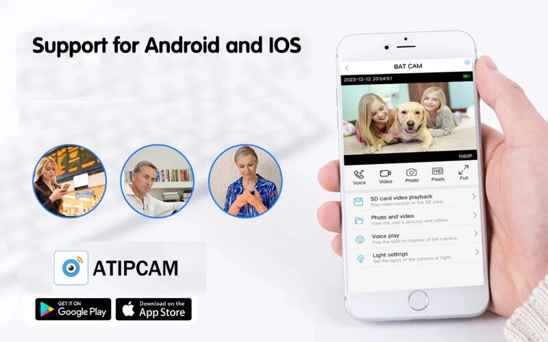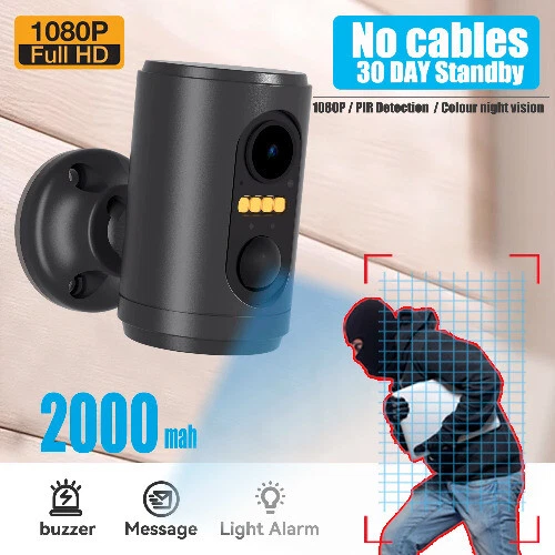 Main Features: *【WIFI version】WIFI version of the camera only needs a WIFI router and connect the camera to the router to connect to the Internet, use your cell phone to view live images remotely anytime, anywhere. *【Battery】Built-in 2000mah battery for long time standby,And it can be repeatedly charged and used. *【Long standby time】Under normal working conditions, calculated based on 50 starts and recordings per day, it can last for approximately 7-9 days of standby operation. *【Color night vision】Built-in 2600-2800K illumination for full color at night.The lights can be set to permanently off mode. *【PIR motion detection】When someone enters the monitoring area, the camera starts and starts recording; when the person leaves, the camera enters sleep mode. *【Alarm sound】Support alarm sound. When someone enters the monitoring area, the camera buzzer will sound to act as a deterrent. It can be set on and off via APP. *【Wide lens】Wide-angle lens is 135°, with a wide irradiation area. *【Audio】Two-way audio, built-in MIC and speaker, can realize remote intercom. *【SD card storage】SD card storage video, when someone passes by, the camera quickly start and record. *【With APP】Support for Android and IOS. FAQ: Q: What app? A: ATIPCAM (Supports Android and IOS) Q: Is the battery included? A: Includes 2000mah battery. Q:What is the best distance from the router? A:Within 10M Q: Use environment temperature A:-10°-50° Q:What can be irradiated at night? A:5M List: 1.Camera 1PCS 2.Fixed bracket 1PCS 3.Quick Guide 1PCS 4.Cable 1PCS 5.Screw accessories 1Bag 1080 Resolution 1080P FHD resolution for clearer images. Support Android and iphone The camera supports Android and iPhone, you can download the application "ATIPCAM" through Google play or App store. Two-way audio Two ways of audio voice at the same time, intercom anytime and anywhere. Built-in battery, throw away the cable Built-in 2000mah battery, throw away the cable for long standby time. PIR Motion Detection *When someone enters the surveillance area, the camera starts and records. *When a person leaves the monitoring area, the camera enters the sleep mode, and the power consumption is lowest at this time. TF card storage video The camera includes a TF card slot that can support memory cards up to 128GB with loop coverage for video recording. Working mode When someone is there, the camera works; When no one is present, the camera enters sleep mode. Full color night vision Built-in flood light, color temperature 2600-2800K, no harm to eyes.APP setting on and off, full color night vision. Mobile Push Message When an alarm event occurs on the camera, the camera pushes a message to your phone. Standby time 1. PIR is turned off, with the longest standby time, up to 20 days. 2. PIR enabled, default setting, starts 50 calculations per day, can stand by for 7-9 days. 3. Enable PIR alarm interval, start 50 calculations per day, and can stand by for 12 days. Note: The more startup times, the more power consumption, and the shorter standby time. The actual standby time is subject to the actual situation. Extendable battery You can connect the camera to your cell phone's charging power source to increase standby time. Wide-angle lens 130° wide angle for a wider viewing angle. Share your camera You can share the device with your friends. Two connection methods 1. AP mode, hot spot connection between phone and camera, allowing for direct video viewing. 2. The camera is connected to the router, and the phone can remotely watch videos anytime, anywhere. 2,4G Wi-Fi The camera can only support 2.4G Wi-Fi, not 5G Wi-Fi, please check your router's signal. Bluetooth Quick Configuration Network The camera has a built-in Bluetooth system that allows you to quickly configure the camera to your router's network via your phone's Bluetooth. Product Details Product details and packaging physical picture. Payment Delivery details Returns Contact Us Feedback Payment 1.We accept PayPal only. 2.Payment must be received within 7 business days of auction closing. 3.We ship to your eBay or Paypal address. Please make sure your eBay and Paypal address is correct before you pay. Delivery details We try our best to ship out same day for payment cleared before 5.00 PM (Pacific Time) , Order placed on weekend or holiday will be shipped on Monday or next working day. Below is the approximate delivery time to different countries (just estimated, not guaranteed): 7-25 working days to buyer in USA. Returns 1.We offer 30 days return policy. Please contact us within 30 days from the date you receive your order if you have any issues with the product and want to return. 2.All items must be returned in the original packaging and you must provide us with the tracking shipping number, specific reason for the return, and your eBay ID. 3.We will refund you FULL WINNING BID AMOUNT, upon receipt of the item in its original condition and packaging with all components and accessories included, AFTER BOTH Buyer and Seller cancel the eBay transaction. Or, you can choose to get a replacement. Contact Us All communication is done through EBAY MESSAGES ONLY. If any question, please feel free to contact us via "Ask seller a question" or "Contact Seller",We try our best to reply to your emails as soon as possible, due to high volume of daily incoming emails and time zone difference, we may not be able to reply your emails immediately. Please allow 1-2 business days for us to response. Feedback Feedbacks: When you receive the item and satisfied with the product, please leave us positive feedback. If for any reason you are not satisfied with your purchase from us, please contact so we can get to work and resolve this issue for you. Please don't leave neutral or negative feedback without giving us an opportunity to try and make it right. Our goal is to ensure a happy shopping experience with us. Your Positive feedback is very much appreciated!