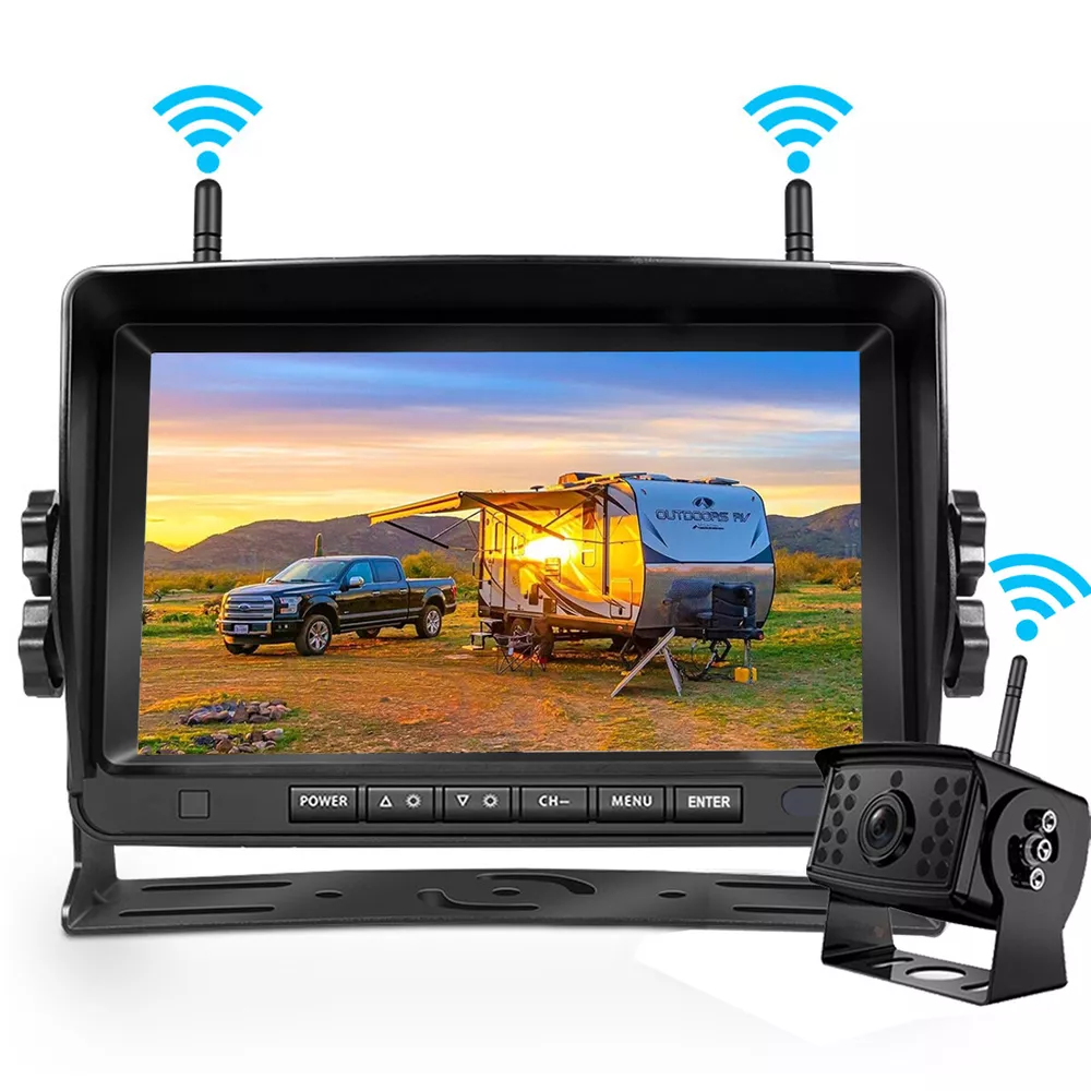 1080P Wireless RV Backup Camera Side Rear View 7" DVR Monitor for Truck Trailer