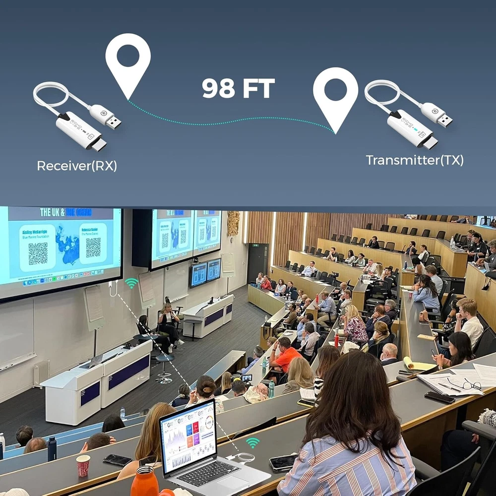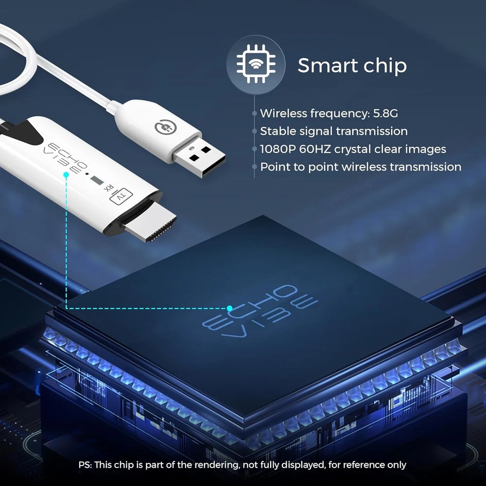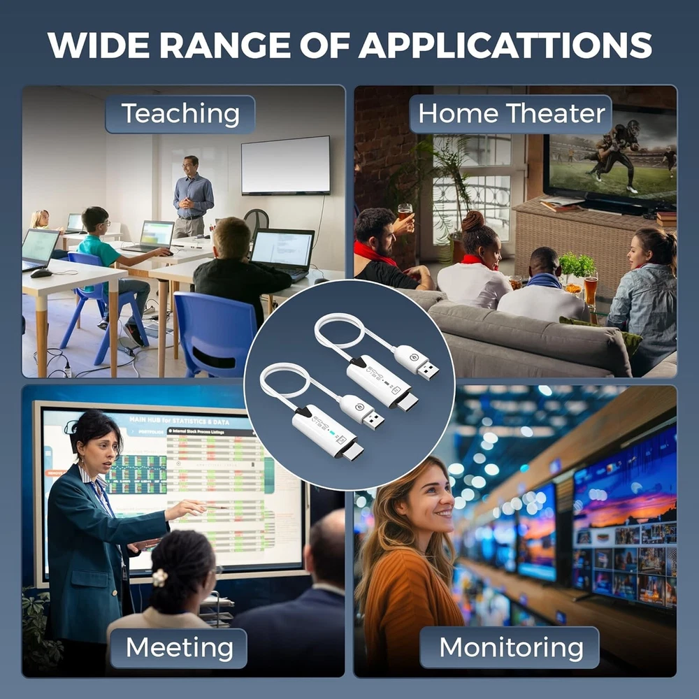 Sleek Pocket-Sized Design: The Echo Vibe HDMI wifi extender kit features an elegant, modern design with pocket-sized dimensions, making a wonderful on the go companion. Hassle-Free Installation: Unlike similar products on the market, this laptop monitor extender comes with a user-friendly plug & play design, requiring no complicated installation or Bluetooth connections. Simply connect the interface and USB power supply, and you’re ready to go! Enhanced Compatibility: This HDMI wireless transmitter and receiver works with all operating systems, provide wide compatibility with most HDMI devices. Suitable for PC, laptop, monitor, gaming consoles, TVs. Mirrors and Extends: The Echo Vibe laptop monitor extender has a dual function, doubling as a transmitter and receiver, providing superior 1080P @ 60HZ crystal clear images on large screen devices. Use the mirror mode and the extend mode depending on your custom needs. Superior Signal Range: This wireless video transmitter and receiver has a powerful wireless chip which amplifies signal to a range of up to 98 feet, ensuring an uninterrupted connection and smooth streaming. Buyer pays actual USPS shipping cost.