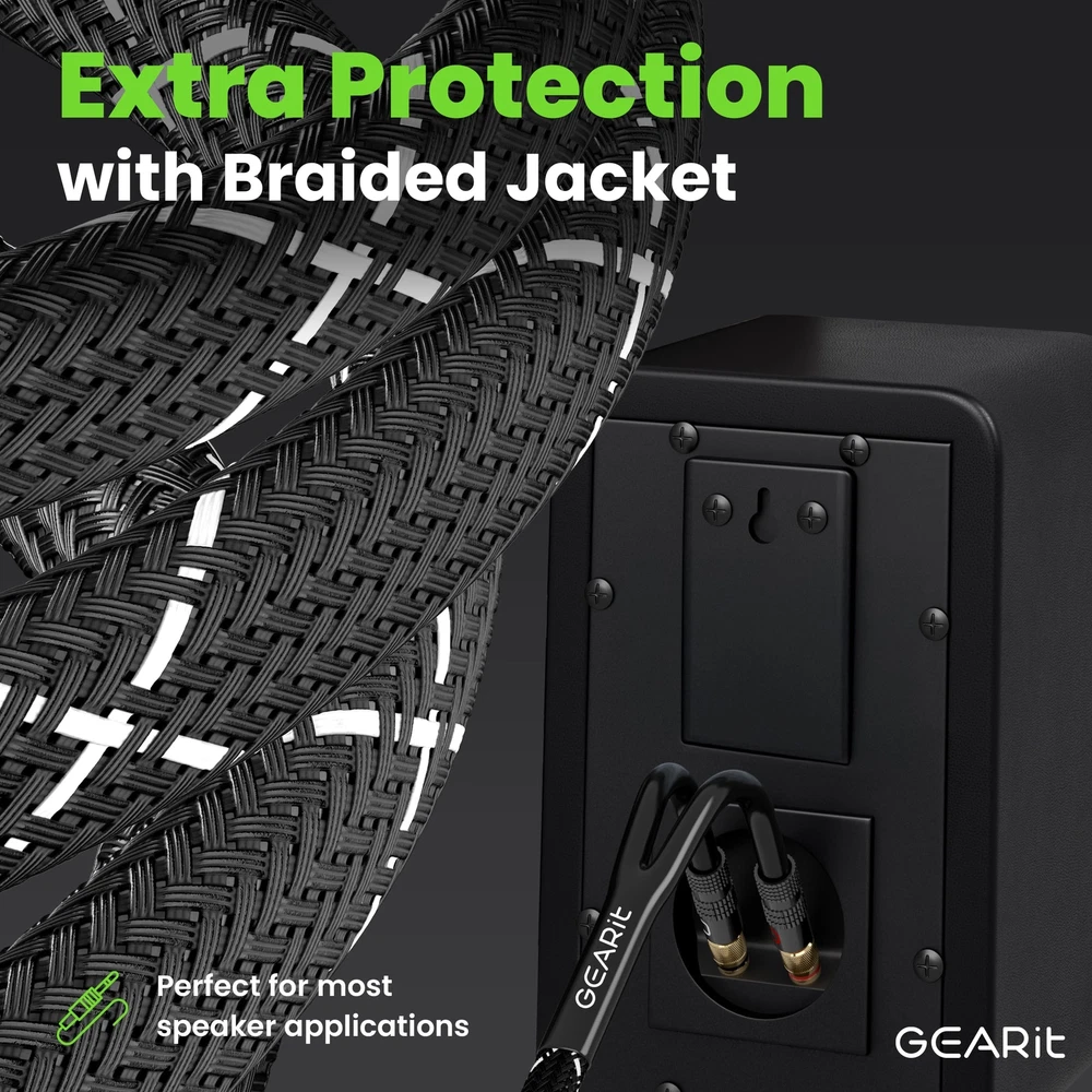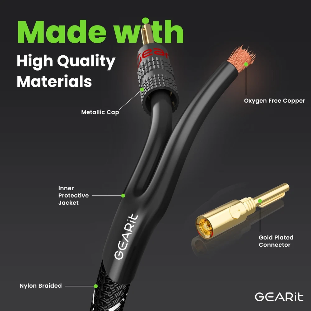 If you're looking to add some flavor to your speaker setup, our banana plug wires are just what you need! Our brand offers high quality cables and plugs that are perfect for audiophiles and home audio enthusiasts. We've got all the wires you need to get the perfect home theater setup, or a killer studio! SPEAKER WIRE WITH BANANA PLUGS - Our 10AWG banana plug speaker wire is made from pure copper oxygen free speaker cable with speaker plugs. High quality and in wall CL2 rated premium banana plug wire designed for home stereo, center channel speakers, subwoofer, and sound systems. BRAIDED SPEAKER CABLE BANANA TIP - Our 10g high end terminated speaker wire with banana tips come with braided nylon jacket and color coding to distinguish polarity. Typically, a red banana tip is positive and white banana tip is negative DUAL BANANA WIRE SPEAKER PLUGS - The double banana plug tips for speaker wire are gold plated, corrosion resistant with premium high strand count for highest clarity, sound accuracy, and low signal distortion. HIFI BANANA PLUG WIRE FOR SOUND SYSTEM - Best banana plug wire for bi-wire or bi-amp without the hassle, customization, and cutting your own banana plug speaker wire. Package Contents: Each package includes 1 x speaker cable with dual banana plugs for your hi fi home stereo speaker system. FOR HOME STEREO, SPEAKER, SUBWOOFER - Our speaker wire banana tip cable comes in 3ft, 6ft, 10ft, 15ft, 25ft, 35ft lengths and black or white colored banana speaker wire for bi-wiring or bi-amping. Search for 10 Gauge Banana Speaker Cable'' to find all our 10 ga speaker wires with banana plugs. All stereo speaker copper wires come with a limited lifetime warranty.