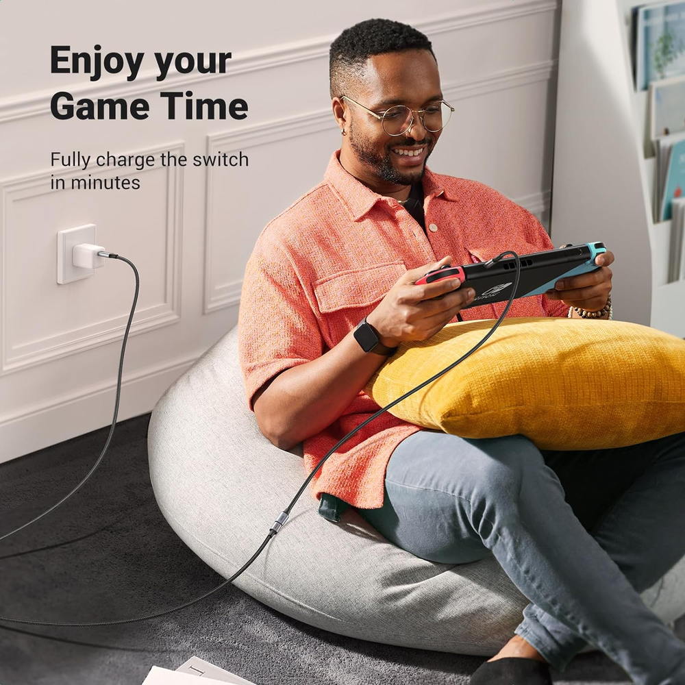 Perfect Connection: USB C extension cable is designed for solving the long distance connection and desktop in a mess between devices with USB-C port, protecting the usb-c ports from damaging by frequently ejecting. It also helps to efficiently use the type c/thunderbolt 3 port of your laptop to achieve more functions for more convenient life. 100W/5A Fast Charging: UGREEN USB C extender offers charging speed up to 100W(20V/5A), which can charge your MacBook/iPhone/laptop/iPad at full speed and let you move free. Also it charge type c phones from 0% to 100% in 30 minutes, like iPhone 15, iPhone 15 Pro, Samsung S22 Ultra/S21/S20/Note 20/Note 10, and wireless charger. 10 Gbps Data Transfer: The USB C male to USB C female cable supports 10Gbps(USB3.2 Gen2) superspeed+ data transfer, 20X faster than USB 2.0(480Mbps), which means that it only takes 10-20 seconds to transmit a 10G file by using this USB 3.2 extension cable, helping you save a lot of time. 4K Video & Audio Output: With the type C extension cable, you could extend the connection between your laptop to a larger/portable monitor for e-learning, working, gaming or watching movies, via this USB 3.1 Gen2 extender. The output resolutions can be up to 4K@60Hz as long as your input device and output monitor are USB-C/thunderbolt 3 port and support video in and out function. Wide Compatibility: This USB extension cord is compatible with Steam Deck, USB C hub, Mag-safe Wireless Charger, iPhone 15, iPhone 15 pro, iPhone 15 pro max, MacBook Pro/Air, iPad Pro/Air, iMac Pro, Surface Go, Oculus link cable, Switch, Google Chromebook Pixel, Dell XPS 13/ 15 and more. NOTE: This USB c extender does not work with any active Thunderbolt 3 docking stations/ hubs/ cables. Product Description Durable Nylon Braided Cable With a braided shield and aluminum alloy connector, the UGREEN USB C extension cable is extremely durable and sturdy; Also constructed with multiple layers of shielding to minimize interference, and is corrosion-resistant for optimal signal clarity, effectively prolonging the cable service life. Easy access to protect your USB C port With this USB C extension cord, you will no longer need to worry about long-distance connection because of your short cables; No need to bend down under the desk or behind the TV/table to plug some USB peripherals anymore! 1 Fastest Data Transfer 2 4K Video Transfer 3 Fully Charge Switch