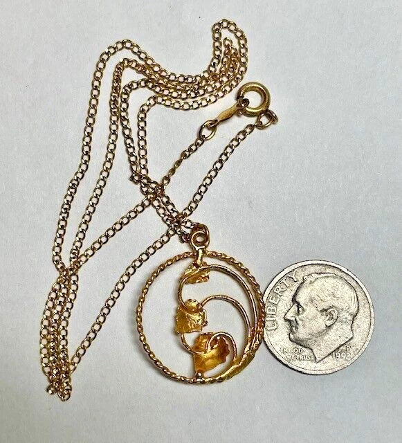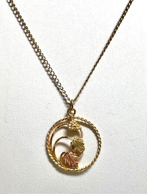 10K Black Hills Gold Round Pendant with a leaf design. The pendant is 3/4" in diameter and is Stamped 10K. This pendant comes with a 16" curb chain which is probably not original to this pendant. It is marked 1/20 12K which means it is gold filled. Preowned, used, in very good vintage condition as described. Age and origin are unknown to me. Description details: Please use the pictures as your main source of reference but contact me prior to bidding if you have questions. These are u sed and vintage items that may show appropriate age, wear and imperfections which I will describe in words and pictures: p lease inspect the pictures carefully prior to placing a bid. Items are sold "as is" with no warranty of any kind. Any coin showed in a picture is for scale only and is not included in the sale. Shipping: I ship to the US only via USPS Ground Advantage which includes Delivery Confirmation. Shipping will only be made to the buyer's confirmed US address. I do not ship internationally or to third parties. I will do my best to ship items within 2 business days after payment is received Monday through Friday. I cannot control the delivery time of the US Postal Service. Payment: I require payment through PayPal. Payment is due within 3 days unless prior arrangements are made. No returns unless the item is accidently misrepresented. Thanks for looking and happy holiday shopping!