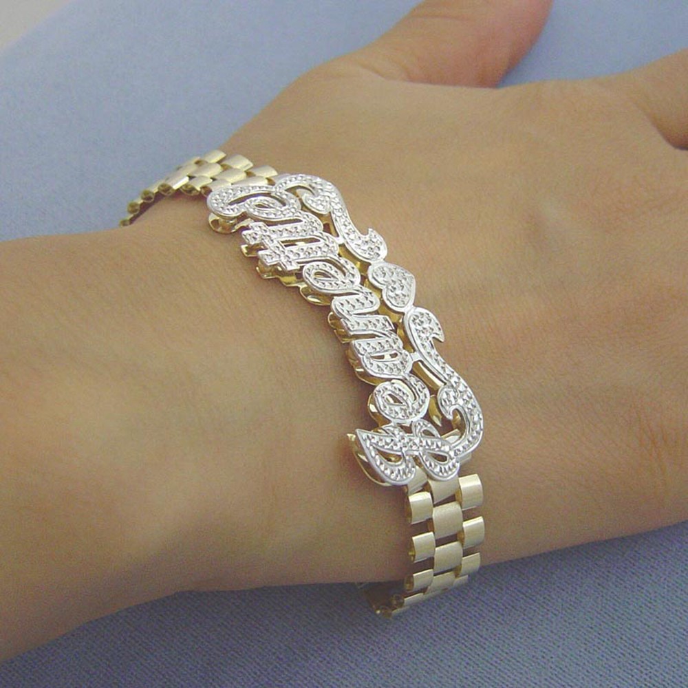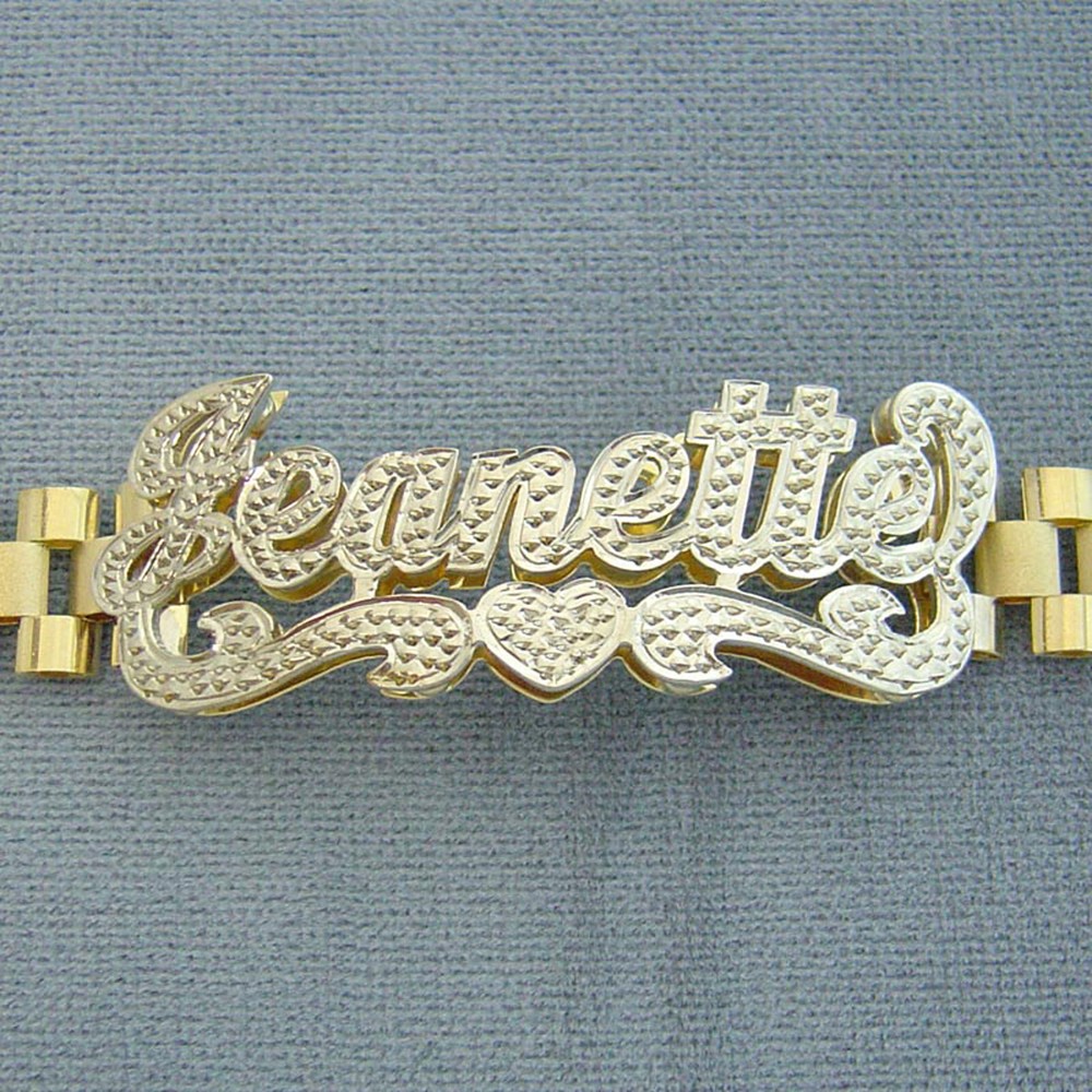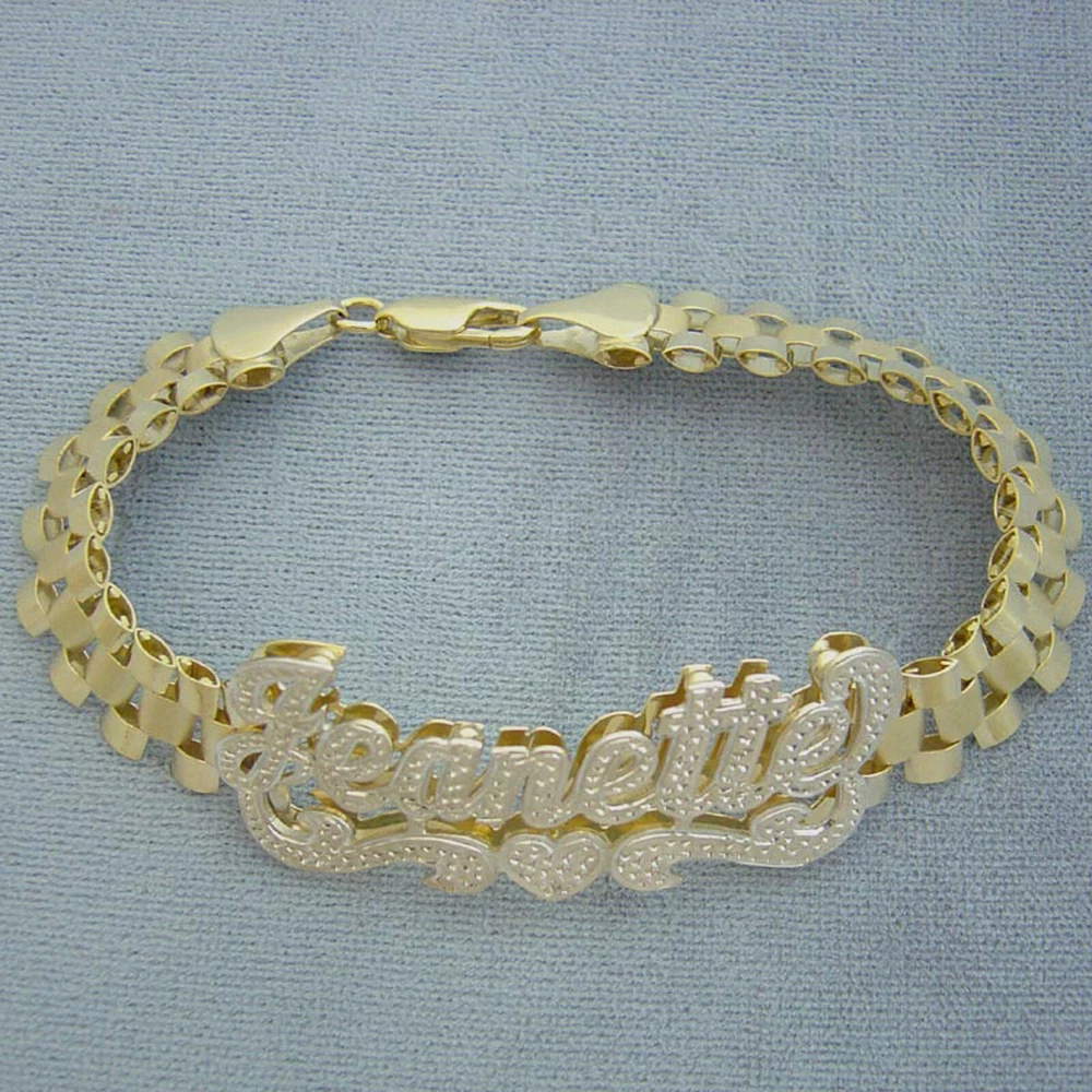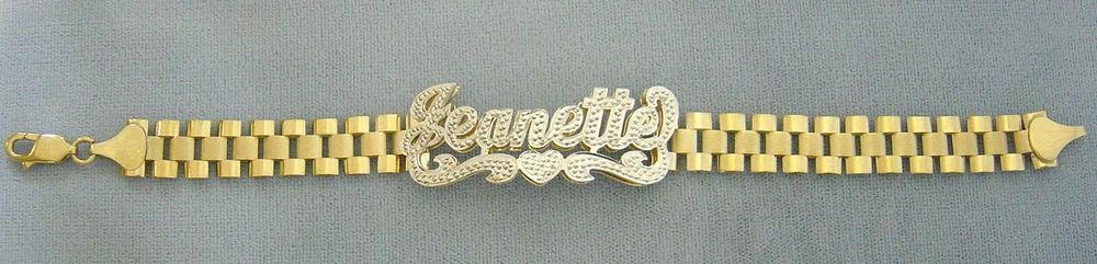 BLING BLING!!! 10kt Yellow Solid Gold. Name Thickness: Top .65mm - Bottom .4mm Approx. Name ID Size: 1 3/4 Inch X 5/8 Inch Approx. Bracelet Width: 10 mm Available from 6 inches to 11 inches for the bracelet and the ankle bracelet length. 100% Handmade and Hand Engraved Iced Out Finished 3D Name. Please leave name you desire up to 9 letters on Note to seller section at checkout.