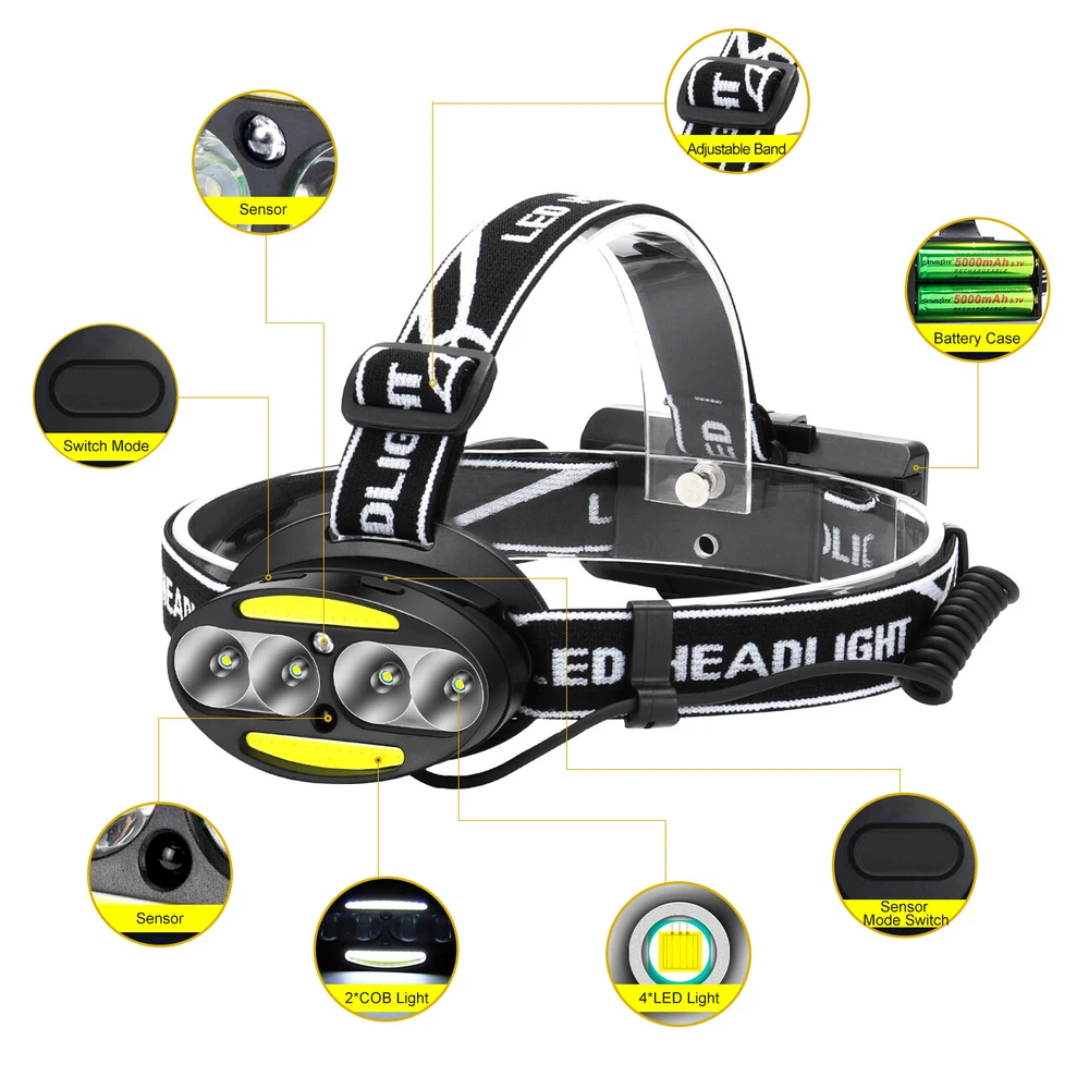 This headlamp is a game-changer! Super bright with the 4 LEDs + 2 COB chips, and the motion sensor is so convenient. Love that it’s USB rechargeable and the angle adjusts for any task—perfect for work, camping, or emergencies. No more fumbling with switches since it turns on/off automatically. Super lightweight and comfy for long wear. A must-have for hands-free lighting!