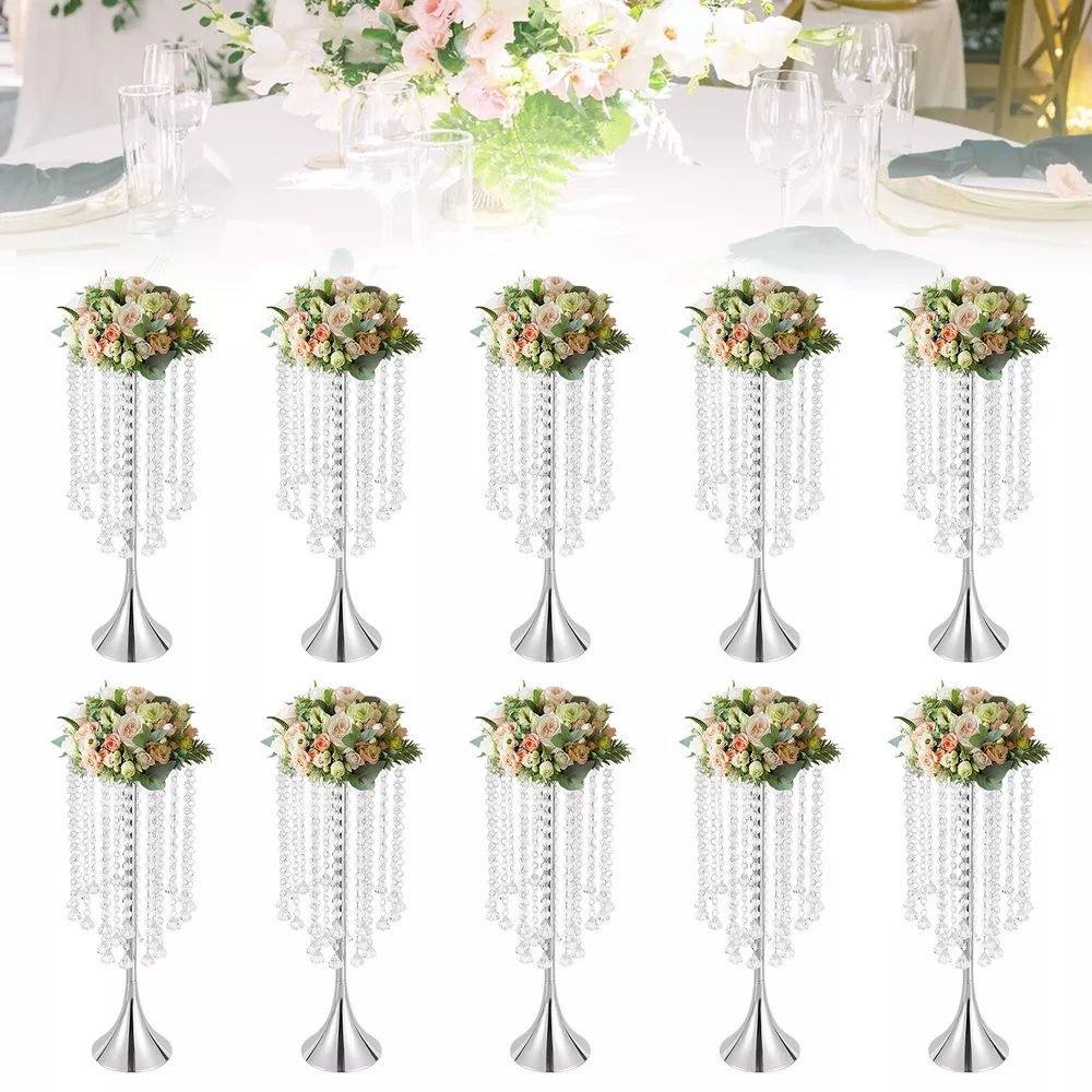 10PC Gold Flower Vase Centerpieces Table Decor Display 55.6cm for Wedding Party Description If you need some great flower vases to build a romantic wedding, a creative party, or a fantastic celebration, our product will be your best choice. Equipped with acrylic pendants with hand-strung beads, this flower vase can spice up the dull decor and create an eye-catching and dreamy atmosphere. And it uses high-quality iron and acrylic material with various processes such as electroplating, making it durable and reusable. Key Features Durable and Reusable: Each flower vase is made of high-quality iron with various exquisite processes such as electroplating, polishing, drilling, and welding, making it hard, durable, and reusable. Hand-strung Beads: The natural dangling of these hand-strung, elaborate beads adds so much beauty and elegance to the vase, showing your guests your elegant taste. Elegant Appearance: Its trumpet shape design, simple and smooth streamlines, and charming acrylic crystal beads present its uniqueness, novelty, creativity, and delicacy, adding an extra aestheticism to the scenes you need to decorate. Fascinating Backdrop: The acrylic crystal beads design can present a shimmering effect and spice up the dull decoration, especially under the sunshine or light, making it ideal for displaying as a fabulous backdrop for weddings, birthday parties, and other occasions. Easy to Assemble: For its simple structure and all accessories we provide, you can assemble this product easily and quickly. Easy to Clean: Due to its iron material with polishing and electroplating process, you can use a soft cloth to clean and dry, which is very simple. Easy to Store: Due to the segmented design and 24.25 lbs of total weight, these flower vases are easy to carry and store. Buy with Confidence: We aim to provide high-quality products and services. If you have any problems, please feel free to contact us. We will reply and solve the problem for you as soon as possible. Detail Top Flower Plate: The top flower plate is designed with two circles and three bars, together with drilling and welding processes, making it stable and unique. Stable Base: Its enlarged trumpet-shaped base has a diameter of 5.6 inches with good stability so that the entire vase firmly on the ground even if there are many flowers on it. Application These flower vases are suitable for wedding aisle decors, wedding receptions, event centerpieces, lower road leads, and daily home decoration. You can use them for housewarming, anniversaries, birthdays, weddings, engagements, etc. Specification Color: Silver Shape: Trumpet Treatment: Electroplating, Polishing, Hand-strung, Drilling, Welding Material: Iron, Acrylic Beads Style: Romantic, European Number of Pieces: 10 Assembly Required: Yes Installation Type: Centerpieces, Tabletop Number of acrylic Pendants: 24 Number of Octagonal Beads: 16 (Inner Ring), 12 (Outer Ring) Top Diameter: 20cm/7.9inch (Each) Base Diameter: 14.2cm/5.6inch (Each) Flower Vase Height: 55.6cm/21.9inch (Each) Package Size: 35*35*25cm/13.78*13.78*9.84inch Net Weight: 11kg/24.25lbs Gross Weight: 12.5kg/27.55lbs Package Included 10Pcs* acrylic crystal Flower Vases All Accessories for Assembly Notes 1.Please note that flower balls are not included. 2.To extend its service life, do not use abrasives for cleanup. You can use a soft cloth to clean and dry. 3.Please allow the slight color difference caused by the shooting light and the 1-3cm error due to manual measurement. Please make sure you do not mind before you order. Payment Delivery details Terms of sales About us Contact us Payment We accept ebay payment 。 Fees such as import duties, taxes are not included in the item price or shipping costs. These charges are the buyer's responsibility. Delivery details Shipping: 2-9 working days to: USA Terms of sales We maintain high standards of excellence and strive for hundred percent customer satisfaction. Feedback is very important to us. We hope that you contact us immediately before you give neutral or negative feedback, so that we can address your concerns. It is impossible to address issues if we do not know about them! About us Your satis faction is our ultimate goal. We work hard to earn your trust and future business. Our certified technicians have tested each item before shipping. The unit comes with 1 year limited warranty on all manufacturing defects. a) If you receive a defective item, you may return it or ask for a discount. Please contact us within 14 days after you receive the package. b) What you returned must be intact and in its original packaging as re? u. Customer is responsible for shipping costs of the returned item. c) We will cover the cost of shipping back t with the shipping rate indicated in the registration page. We will send you a new unit or refund the full payment you paid. Thank you. Contact us Business Hour Business Hour: Monday To Friday: 8:30 AM to 5:00 PM (Beijing China time) Due to time zones, our reply to your questions may not be immediately. But within above working time, we will reply your email within 24 hours. If it's non-workdays, please kindly be patient and wait till Monday. Please contact us with ebay message. Please feel free to contact us if you have any questions. Monday To Friday: 8:30 AM to 5:00 PM (Beijing China time) Due to time zones, our reply to your questions may not be immediately. But within above working time, we will reply your email within 24 hours. If it's non-workdays, please kindly be patient and wait till Monday. Please contact us with ebay message. Please feel free to contact us if you have any questions.