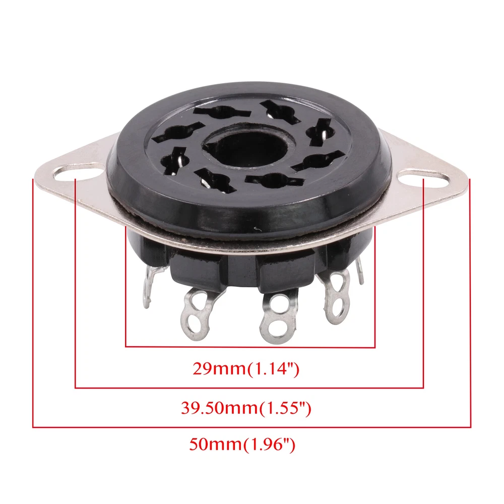Product Detail: Note:If you have any questions, please contact us before open any case, we promise will solve the problem for you. Thanks! The Price is for 10PCS/lot Brand New 8PIN K8A Tube Socket Material:Bakelite,Tin Plated Panel Cut Out Diameter: 29mm Mounting screw Hole Distance: 39.5mm (center to center) Length of fix ring: 50mm (from left to right) Width of fix ring: 35.50mm Height with pins: 19mm chassis mount It's suitable for EL34, KT88 ,KT66, 6550, KT120 ,274B ,5AR4 ,6SN7, 6V6, 6L6, 6CA7 ,5881 etc. Note: 1. Please allow minor deviation due to manual measurement. 2. Due to the difference between different monitors, the picture may not reflect the actual color of the item. 3. Communication is the best way to solve the problem. If you have any problems after purchasing, please contact us in time, before opening return or case. Payment: We accept PayPal ONLY currently. Payment must be made within 3 business days. Shipping: 1. Item will be shipped within 1-5 business days from CN Stock or US Stock according to the item location. 2. Sometimes the ship date will be delayed due to a shortage. We will inform you via message. 3. Please leave available address and phone # in delivery information. Seller are not responsible for wrong address. 4. Please indicate your personal requirement such as colors, packages, value of declaration etc. at PayPal's message when make payment. 5. We will NOT responsible for any delay during delivery including but not limited to customs postage checking, strike, force measure etc. Customs Declaration: Import duties, taxes and charges are not included in the item price or shipping charges. These charges are the buyer’s responsibility. Please check with your country’s customs office to determine what these additional costs will be prior to biddingying. Return & Refund: Returns are accepted within 30 days. Please read the item description and check the pictures carefully before bidding. Return or refund is available only if item DOA or there's error in item description causing the item not fitting your need. In such cases, seller pays for all related shipping cost if any. Returns are also acceptable if buyer purchased this by mistake and item still in good condition for reselling. Buyer is responsible for all related shipping cost. Feedback: As long as you are happy with your purchase, please kindly leave us for it is very important for our store performance. If there is any problem with your order, please contact us and give us a chance to resolve your problem Before leaving us a negative feedback.