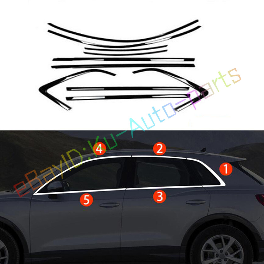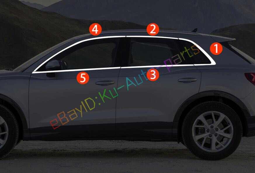10PCS Glossy Black Steel Windows Sill Molding Strip Trim FOR Audi Q3 2019-2023 Attention: Because the same model car may be differently produced in different country. Please ensure the part of your car like our picture shows, or it will not fit, if any differences, please contact with us before purchase, thanks! Item Description: FOR Audi Q3 2019-2023 Condition: 100% Brand new (Sold as seen, please ensure suitability carefully before purchase) Color: black Stainless steel Made in an ISO 9001 facility to ensure good quality Package Include: 10 pcs/SET Easy installed and No modification needed, Adhesive tape is attached at the back Method Of Installation: Step 1 Please clean the area and eliminates the substance before mounting this product. Step 2 To check the installation area according to the vehicle with this product first and then release the back of 3M tape paper (double-sided tape, a label) is removed Step 3 Products are equipped on the vehicle with exactly and use a clean cloth to press evenly is attached. Step 4 Products within 24 hours after installed, please avoid washing your car and touching the water. Tips: If you not familar with DIY, please ask professional for help. Sub-zero weather during the winter, the adhesion 3M tape adhesion is getting weak .You could heat the place of 3M tape with a heat gun