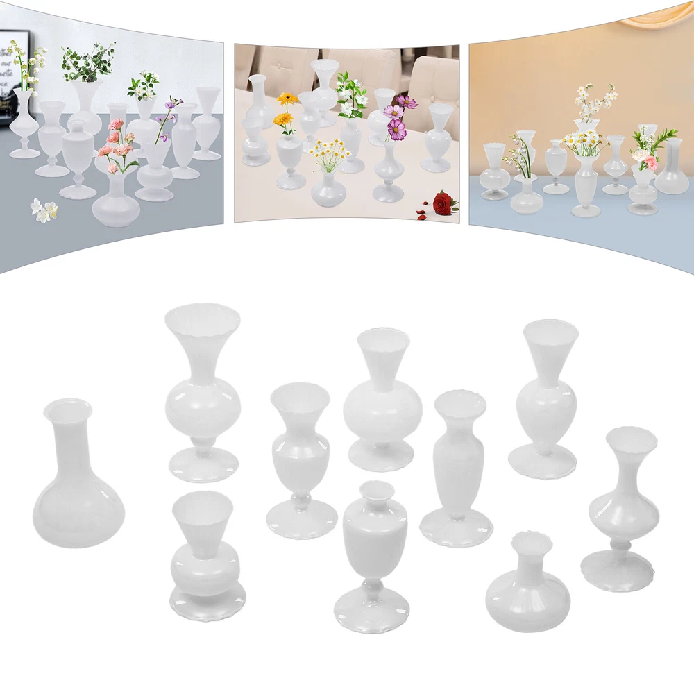 10PCS Glass Vases for Wedding and home Decorations, Small Glass Vases Sets Description Weddings, graduations, birthdays, etc. are all memorable events in our lives that will become our precious treasures. With this glass vases set, your wedding and other important events will be even more wonderful. Our vases are made of premium glass, so they can be used for a long time and accompany you through various stages. 10 different styles in sufficient quantity can meet your home decorating needs, adding a touch of elegance and beauty to your home. Key Features Build to Last: High-quality glass makes the product durable and solid, so it remains beautiful and practical for a longer time. Strong Stability: The solid material, reasonable structure, and stable base provide this item with a strong bearing capacity, so you can use it safely without worrying about the fracture. Diverse Styles: The 10 different shapes, sizes, and styles enrich your visual experience, create a personalized background, add brightness to a dull event, and become good home decoration. Wherever it is placed, it is a beautiful scenery. Nice Decorations: You can place this product at the top of the booth as an excellent decoration for special days, creating an elegant atmosphere, especially for weddings. You can also put it on the table to relax your mood. Even if it hasn’t artificial flowers on it, it is still a very elegant decoration! High Cost-effective: 10 Pcs allow you to use different items, such as flowers, artificial flowers, and vines, on other occasions to decorate them freely and repeatedly, promoting the unity of style and fully meeting your needs. Labor-saving Cleaning: The smooth surface and simple structure make it convenient for you to clean with a wet towel and water. Easy to Carry and Store: Its small size and lightweight(4.41 lbs) make it easy for you to store and carry them anywhere. Ideal Gift: With an attractive appearance, this product is used as a gift for family, friends, and lovers to make their home more atmospheric and festivals more meaningful. Protective Package: To prevent the product from being damaged and bumped during transportation, we packed it with foam and cartons to protect your products to the maximum extent possible. Details Round Corners: Compared with traditional square corners, an arc design can better care for your skin. Flared Mouth: The flared mouth of the vase is not only aesthetically pleasing but also makes it easier for you to insert flowers, artificial flowers, and other decorations. Application Match with artificial flowers and other items, this product can be used in homes, restaurants, terraces, coffee shops, hotels, balconies, bars, clubs, Spa, candlelight dinners, holiday dinners, weddings, the background decoration of the studio, as well as any other special activities you would like to decorate. Specification Color: White Style: Modern Material: Glass Assembly Required: No Mount Type: Free Standing Number of Items: 10 Product Size(D*H): 11*9.5cm/4.33*3.74in, 9*17cm/3.54*6.69in, 9*16.5cm/3.54*6.5in, 9*17.5cm/3.54*6.89in, 9*17.5cm/3.54*6.89in, 9*7cm/3.54*2.76in, 12*18.5cm/4.72*7.28in, 9*19cm/3.54*7.48in, 9.3*20cm/3.66*7.87in, 10*22cm/3.94*8.66in Net Weight: 2kg/4.41lbs Gross Weight: 2.3kg/5.07lbs Package Size: 55*45*15.5cm/21.65*17.72*6.1in Package Included 10* Glass Vases Notes Please note that flowers and other decorations are not included. Please use a soft cloth to clean and dry it. Please do not use harsh chemicals or abrasives. It is better to add some rocks or floral foam to the inside to make the item more stable. For better results, we recommend using a small bouquet. Please pay attention to the size details, it may be smaller than you expect. Please check the size of our vases before purchasing a bouquet to prevent buying a larger or smaller bouquet. Please allow the slight color difference caused by the shooting light and 1-3 cm error due to manual measurement, and make sure you do not mind before ordering. Payment Delivery details Terms of sales About us Contact us Payment We accept ebay payment 。 Fees such as import duties, taxes are not included in the item price or shipping costs. These charges are the buyer's responsibility. Delivery details Shipping: 2-9 working days to: USA Terms of sales We maintain high standards of excellence and strive for hundred percent customer satisfaction. Feedback is very important to us. We hope that you contact us immediately before you give neutral or negative feedback, so that we can address your concerns. It is impossible to address issues if we do not know about them! About us Your satis faction is our ultimate goal. We work hard to earn your trust and future business. Our certified technicians have tested each item before shipping. The unit comes with 1 year limited warranty on all manufacturing defects. a) If you receive a defective item, you may return it or ask for a discount. Please contact us within 14 days after you receive the package. b) What you returned must be intact and in its original packaging as re? u. Customer is responsible for shipping costs of the returned item. c) We will cover the cost of shipping back t with the shipping rate indicated in the registration page. We will send you a new unit or refund the full payment you paid. Thank you. Contact us Business Hour Business Hour: Monday To Friday: 8:30 AM to 5:00 PM (Beijing China time) Due to time zones, our reply to your questions may not be immediately. But within above working time, we will reply your email within 24 hours. If it's non-workdays, please kindly be patient and wait till Monday. Please contact us with ebay message. Please feel free to contact us if you have any questions. Monday To Friday: 8:30 AM to 5:00 PM (Beijing China time) Due to time zones, our reply to your questions may not be immediately. But within above working time, we will reply your email within 24 hours. If it's non-workdays, please kindly be patient and wait till 