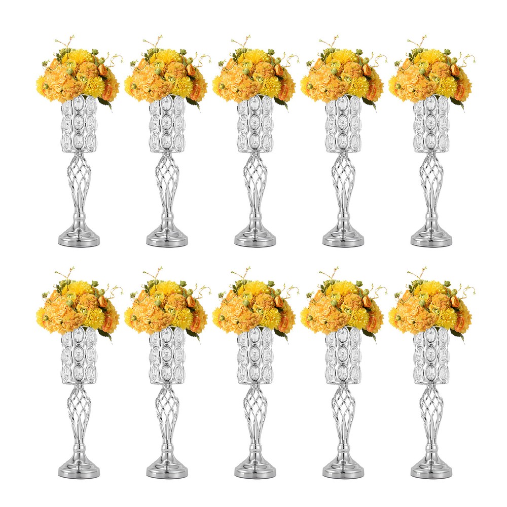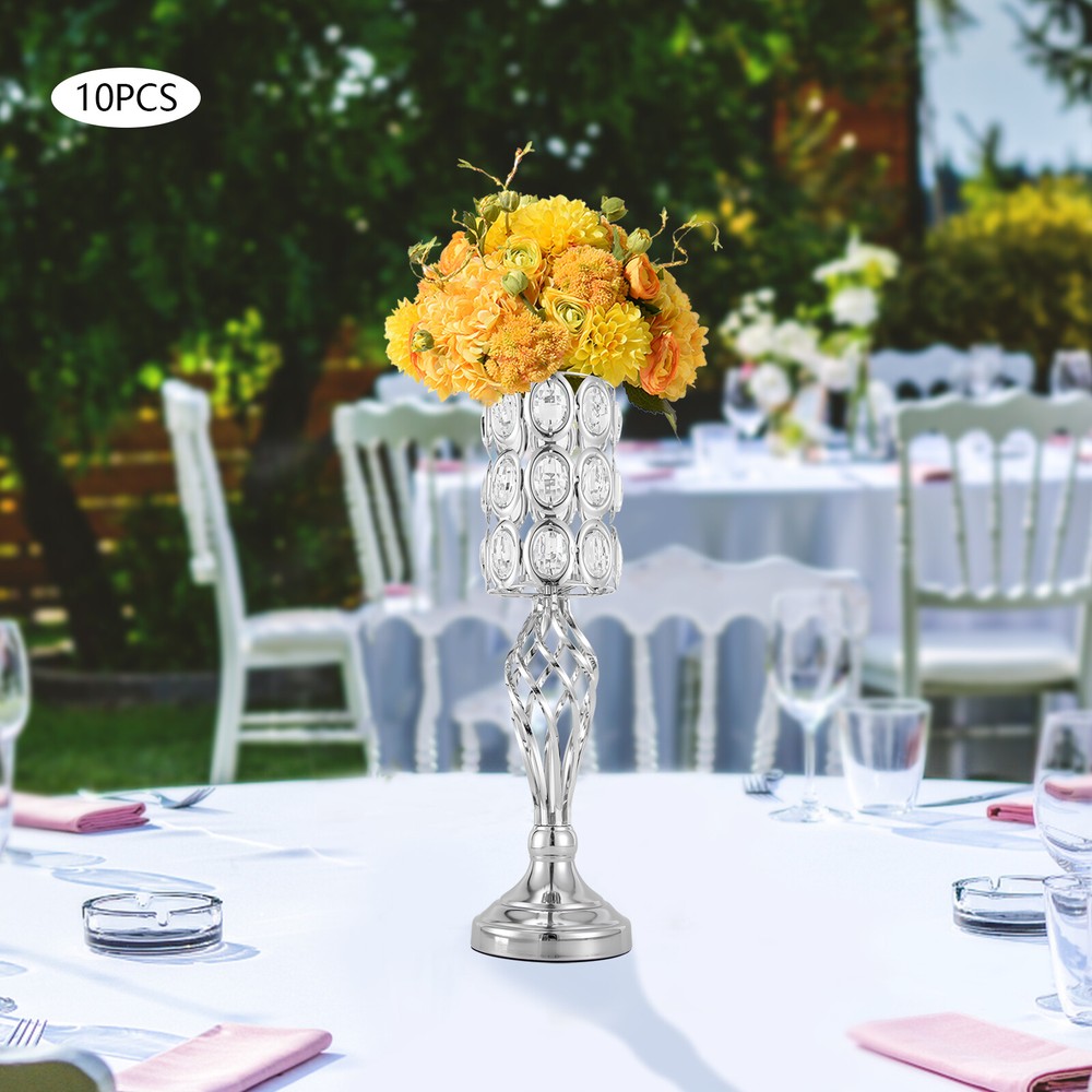 Package Included 10* 19.7"H Silver Wedding Flower Vases Application The wedding flower vase is ideal for weddings, celebrations, party scenes, birthdays, aisle road lead, and event decorations. It is also suitable for home décors, living rooms, dining rooms, parlors, coffee shops, bars, hotels, etc. Specifications Material: Iron Surface Treatment: Electroplating Color: Silver Style: Nordic, Romantic Mounting Type: Free-standing Assembly Required: Yes Number of Vases: 10 Net Weight: 6kg/13.23lbs Gross Weight: 11kg/24.25lbs Base Diameter: 14cm/5.5inch (Each ) Top Diameter: 12cm/4.7inch (Each ) Top Inner Diameter: 5.5cm/2.16inch (Each ) Overall Height: 50cm/19.7inch (Each ) Package Size: 61*31*40cm/24*12.2*15.75inch Notes Please note that candles and flowers are not included. Welcome Description Decorating the wedding site with fresh or artificial flowers to create a romantic atmosphere is essential to an ideal wedding. Our wedding flower vases, which have crystal beads made by exquisite crafts, elegant appearance, and high practicality, can spice up your wedding decor with flowers, wax, or candles. It is also suitable for celebrations, party scenes, birthdays, aisle road leads, event decorations, etc. Key Features Solid and Durable: Our flower vases, adopting premium iron with smooth connection, have solid construction and are durable. You can use them repeatedly. Exquisite Workmanship: This product adopts an exquisite electroplating treatment and a manual fixed knitting process, making it high-quality and delicate. An Eye-catching Backdrop: With the sunlight or lamplight shining on the silver vase, it can add a sparkling glow to dull wedding décor, and impress your guests with the eye-catching backdrop. Various Decoration Methods: You can put fresh flowers, artificial flowers, wax, or flameless pillar candles on the top round plate as a flower centerpiece or a candle holder for tables, especially for weddings, to create a romantic atmosphere. Delicate Gift: Because of its exquisite crafts, elegant appearance, and high practicality, the flower vase is a fantastic gift for housewarming, weddings, and other festivals. Elegant Appearance: The unique hollow design with intersecting lines, together with exquisite surface and casual outlines which is like a romantic lingering, makes the table decoration more attractive. Easy to Assemble : This set pillar flower vase for wedding table centerpieces is made from a few different segments. With its simple structure and equipped accessories, you can assemble it easily and quickly. Easy to Clean: Due to iron crafts and an electroplating treatment, you can use a soft cloth to clean and dry, which is simple and labor-saving. Details Stable Stand Base: Each vase is equipped with anti-slip pads, together with the round structure to make the whole vase more stable, preventing it from toppling and scratching. Top Hollow Holder: The top diameter of the horn holder is 12cm/4.7 inches, which can place more large candles, flowers, and artificial flowers without scratching your hands. Crystal Beads: The top holder is hand-strung with crystal beads, making it appear shimmering, appealing, and unique, and can create a dreamy atmosphere. Application The wedding flower vase is ideal for weddings, celebrations, party scenes, birthdays, aisle road lead, and event decorations. It is also suitable for home décors, living rooms, dining rooms, parlors, coffee shops, bars, hotels, etc. Specifications Material: Iron Surface Treatment: Electroplating Color: Silver Style: Nordic, Romantic Mounting Type: Free-standing Assembly Required: Yes Number of Vases: 10 Net Weight: 6kg/13.23lbs Gross Weight: 11kg/24.25lbs Base Diameter: 14cm/5.5inch (Each ) Top Diameter: 12cm/4.7inch (Each ) Top Inner Diameter: 5.5cm/2.16inch (Each ) Overall Height: 50cm/19.7inch (Each ) Package Size: 61*31*40cm/24*12.2*15.75inch Package Included 10* 19.7"H Silver Wedding Flower Vases Notes Please note that candles and flowers are not included. Please allow the slight color difference caused by the shooting light and 1-3cm error due to manual measurement, and make sure you do not mind before you order. Payment Delivery details Terms of sales About us Contact us Payment We accept ebay payment 。 Fees such as import duties, taxes are not included in the item price or shipping costs. These charges are the buyer's responsibility. Delivery details Shipping: 2-9 working days to: USA Terms of sales We maintain high standards of excellence and strive for hundred percent customer satisfaction. Feedback is very important to us. We hope that you contact us immediately before you give neutral or negative feedback, so that we can address your concerns. It is impossible to address issues if we do not know about them! About us Your satis faction is our ultimate goal. We work hard to earn your trust and future business. Our certified technicians have tested each item before shipping. The unit comes with 1 year limited warranty on all manufacturing defects. a) If you receive a defective item, you may return it or ask for a discount. Please contact us within 14 days after you receive the package. b) What you returned must be intact and in its original packaging as re? u. Customer is responsible for shipping costs of the returned item. c) We will cover the cost of shipping back t with the shipping rate indicated in the registration page. We will send you a new unit or refund the full payment you paid. Thank you. Contact us Business Hour Business Hour: Monday To Friday: 8:30 AM to 5:00 PM (Beijing China time) Due to time zones, our reply to your questions may not be immediately. But within above working time, we will reply your email within 24 hours. If it's non-workdays, please kindly be patient and wait till Monday. Please contact us with ebay message. Please feel free to contact us if you have any questions. Monday To Friday: 8:30 AM to 5:00 PM (Beijing China time) Due to time zones, our reply to your questions may n