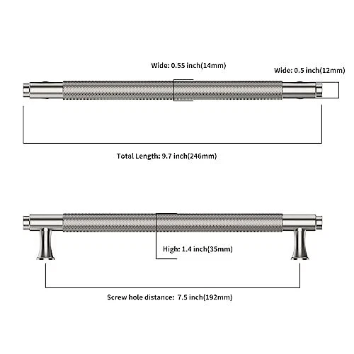 Return Policy Fast Delivery Trusted seller 10Pack Brushed Satin Nickel Cabinet Pull,7.5 Inch(192mm) Hole Centers Kitchen Cabinet Handles Knurled Cabinet Hardware for Cabinets and Drawers Product Description 【Wide Application】 delicate and textured cabinet pulls are the ideal way to beautify an entire room make your decorative space more vibrant. Ideal for use in kitchen cabinets, closets, cupboards, drawers, wardrobes and storage cabinets. A variety of styles and colors for your reference, you can upgrade your warm home through DIY. 【Knurled Design】 handle features a knurled design and is meticulously hand-forged and polished. Even if your hands are stained with water or oil, they can be smoothly pulled out and pushed into the cabinet without slipping. 【Sturdy Material】This kitchen cabinet handle is made of zinc alloy and aluminum, which is not easy to fade and rust, and can be used for a long time. The deep thread design makes the handle not easy to loosen and fall off. Any quality issues, please let us know and we are willing to help you solve them. 【Size of Cabinet Handle】Hole Centers(CC): 7.5 Inch(192M); Overall Length: 8.9 Inch(226MM); Height: 1.4 Inch(35MM); Width: 0.55 Inch(14MM). The measurement data of each handle is accurate, providing data reference for your installation. Please check the size of the handles you need carefully before purchg ensure successful installation. 【Package Description】T are 10 brushed satin nickel handles you will receive, each with 4 screws (2 regular screws and 2 breakaway screws that you can cut to the desired size). Each pull is packaged separately to prevent bumps and scratches. Shipping Returns Payment Shipping Shipping is FREE to all addresses other than APO/PO boxes in the lower 48 states. All our stock ships from US-based warehouses. Shipped via USPS or UPS (depending on location and package weight) Unless stated otherwise, all orders will ship within 24-72 hours of your payment being processed. Check our feedback to see the great reviews of FAST shipping we offer. Returns Seller does not accept returns Payment We currently accept payment via eBay managed payments only. Once payment is cleared, we will dispatch your shipment within 1-3 business days. Please refer to the "Shipping" tab for more information regarding shipping speed to your destination.