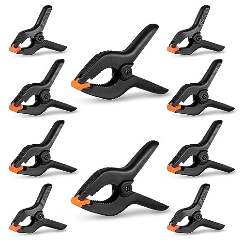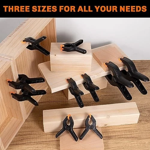 Return Policy Fast Delivery Trusted seller 10 Pack Spring Clamps Heavy Duty - Assorted Sizes Spring Clips Plastic 6.5 Inches, 4.5 Inches, 3.5 Inches Set - Backdrop Clips Small Clamps For Crafts Woodworking Background Product Description THREE BIGGER SIZES: Our 10-pcs spring clamp set comes in three sizes - 6.5 inches ×2pcs, 4.5 inches ×4pcs, 3.5 inches ×4pcs. The plastic clamps ensure that you have ample supply for multiple tasks simultaneously. ADJUSTABLE JAW PADS: The yellow jaw pads of our nylon spring clamps have a 45-degree incline that automatically adjusts to uneven surfaces, and these clamps jaw pads are both removable and reusable. THOUGHTFUL DESIGN: Our heavy duty clips are designed with an ergonomic handle for comfort, a textured surface that prevents slippage while clamping, and a high-density spring for durability and clamping force. VERSATILE USE: These plastic spring clips can be used as wood clamps for DIY woodworking and crafts projects, and as clips for backdrop stands to hold backgrounds in place during photo shoots. They can also serve as plastic clips for hanging photos and clothes around the house! SATISFACTION GUARANTEE: If you are not satisfied with our heavy duty clamps after purchase, please feel free to contact us via our email and we ensure you will get a pleasant solution. Shipping Returns Payment Shipping Shipping is FREE to all addresses other than APO/PO boxes in the lower 48 states. All our stock ships from US-based warehouses. Shipped via USPS or UPS (depending on location and package weight) Unless stated otherwise, all orders will ship within 24-72 hours of your payment being processed. Check our feedback to see the great reviews of FAST shipping we offer. Returns Seller does not accept returns Payment We currently accept payment via eBay managed payments only. Once payment is cleared, we will dispatch your shipment within 1-3 business days. Please refer to the "Shipping" tab for more information regarding shipping speed to your destination.