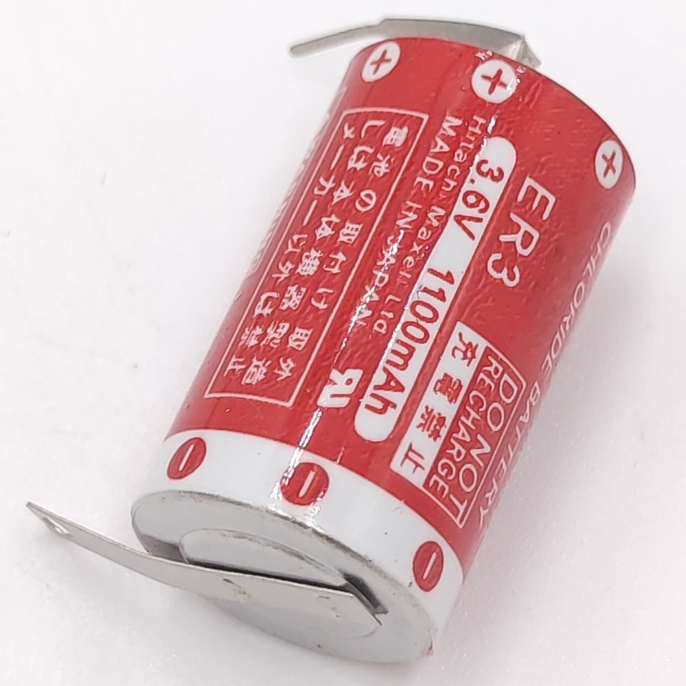 (10-Pcs) 1100mAh ER3 3.6V Non-rechargeable Li-ion PLC Battery with Solder feet Specifications: Type: ER3 Li-ion Battery with solder feet Dimensions: 1.18 x 0.51" (L x Dia) Weight: 8 g Voltage: 3.6V Capacity: 1100mAh Battery Nature: Non-rechargeable lithium battery Maximum sustained current(mA): 400 size(mm): 14.5*29.9 Operating temperature range: -55℃~85℃ Features: ER3 battery, a compact 3.6V Li-SOCl2 powerhouse with high capacity and long shelf life. Perfect for IoT devices, metering, and backup applications, it ensures stable voltage across various temperatures. With multiple terminal options, this reliable battery is designed for optimal performance in diverse settings! Package Includes: 10 x ER3/3.6V Battery