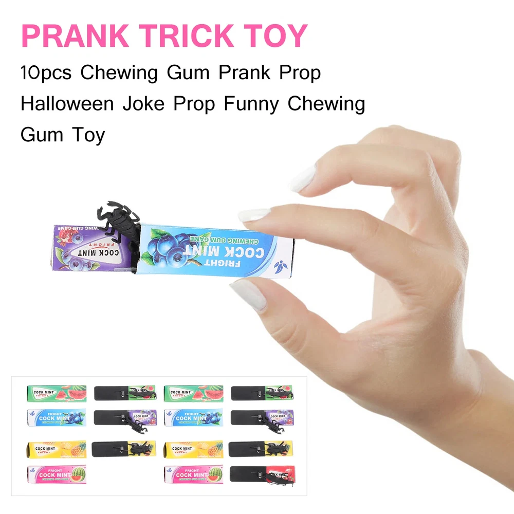 Description Make fun of your friends and deceive them with this funny chewing gum. When the fake gum is pulled apart, it will show up a fake , scaring the person who pulled it. The product itself will not cause any harm to the human body, but the effect of adventurous stimulation may cause discomfort or disgust for some people. Features - Color: Random Color. - Material: Paper, plastic. - Size: 8.50X2.20X1.50cm/ 3.34X0.86X0.59in. - It looks like a pack of real chewing gum, so your friends will not be wary of it and increase the chance of success of the prank. - When your friends reach out for this gum, a will appear to shocking your friends. - When you try to open this gum, you will get an unexpected "little surprise". - Just for fun. Not recommended for children or patients with heart disease. - Note: The product itself will not cause any harm to the human body, but the adventurous and stimulating effect may cause discomfort or disgust for some people. 10 x prank toys